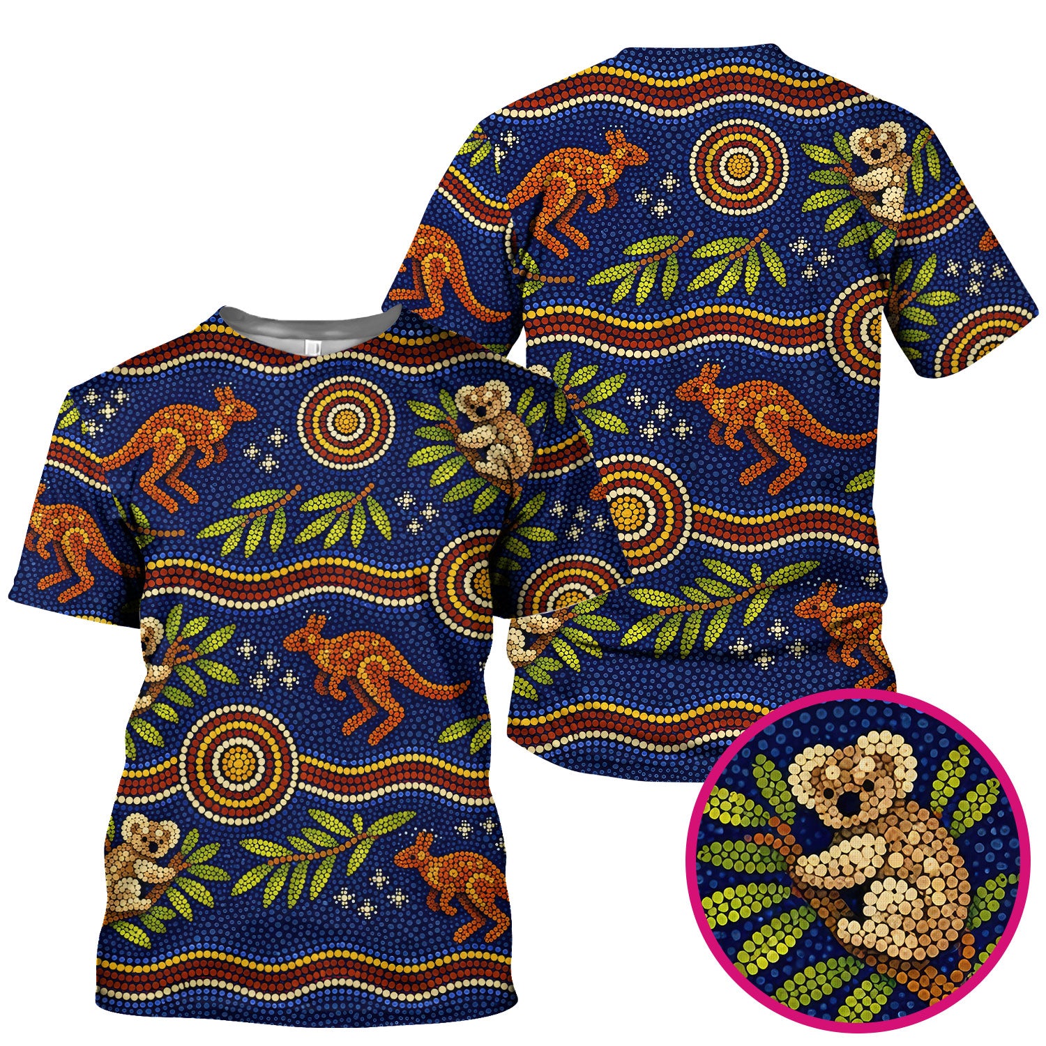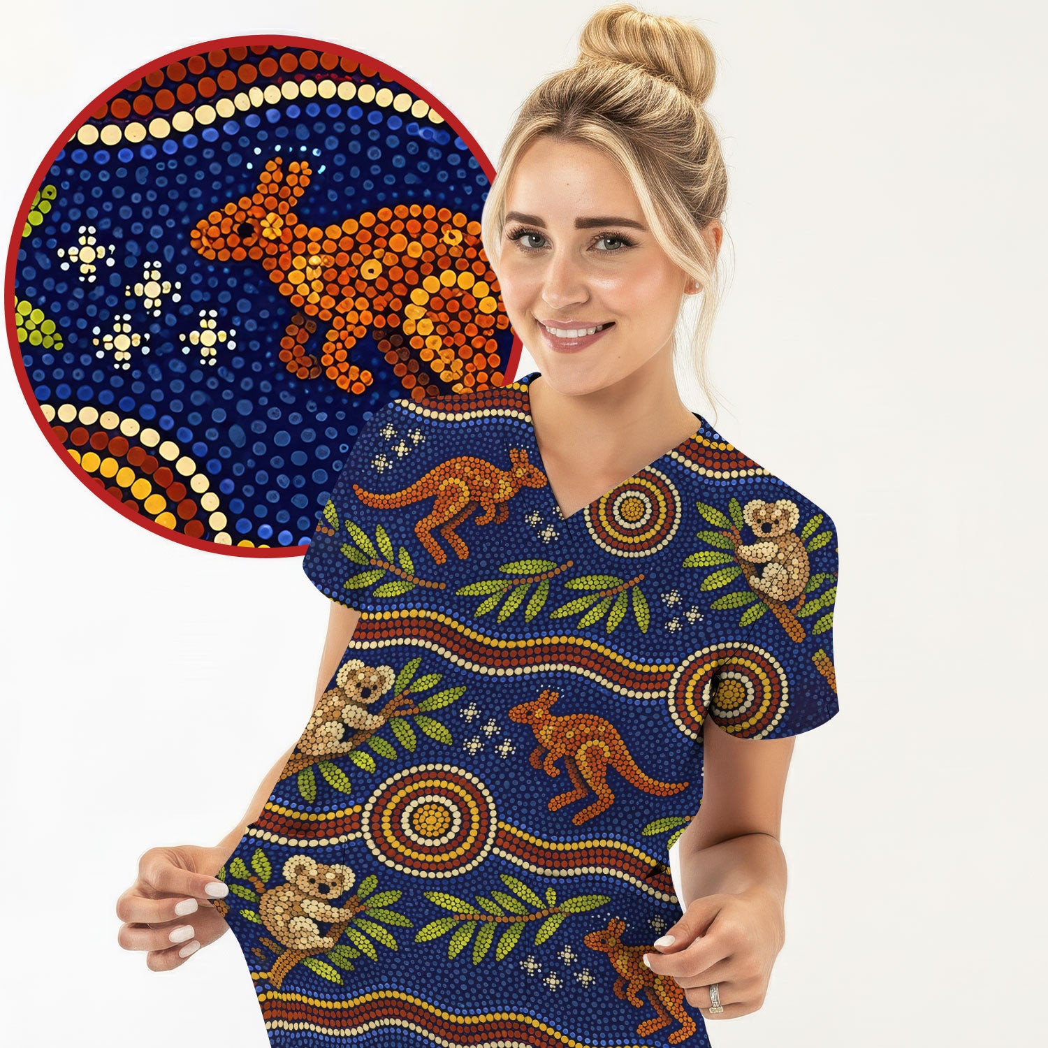 Australian Aboriginal Dot Art Scrub Top, Kangaroo ANd Koala Pattern Nurse Shirt, Breathable Fabrics Nursing Uniform