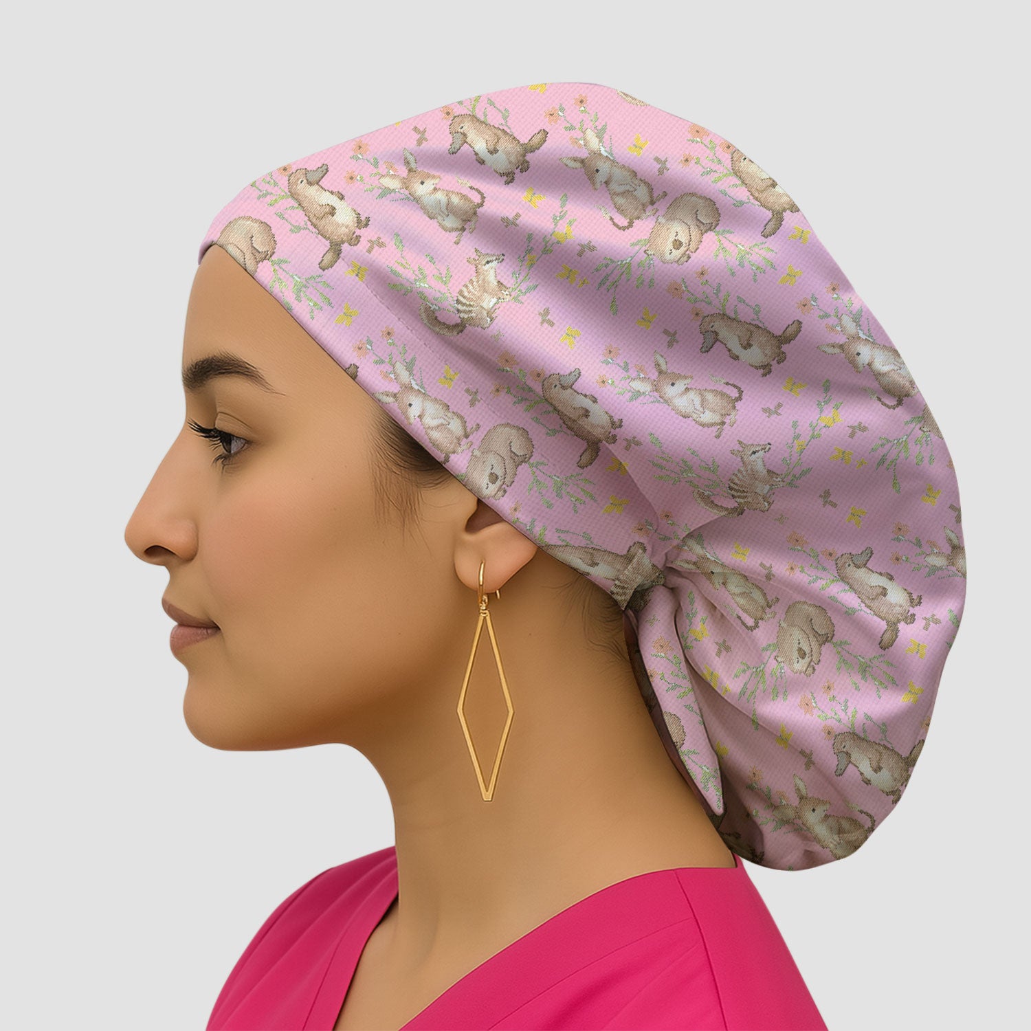 Ponytail Scrub Cap for Women - Cute Nurse Print