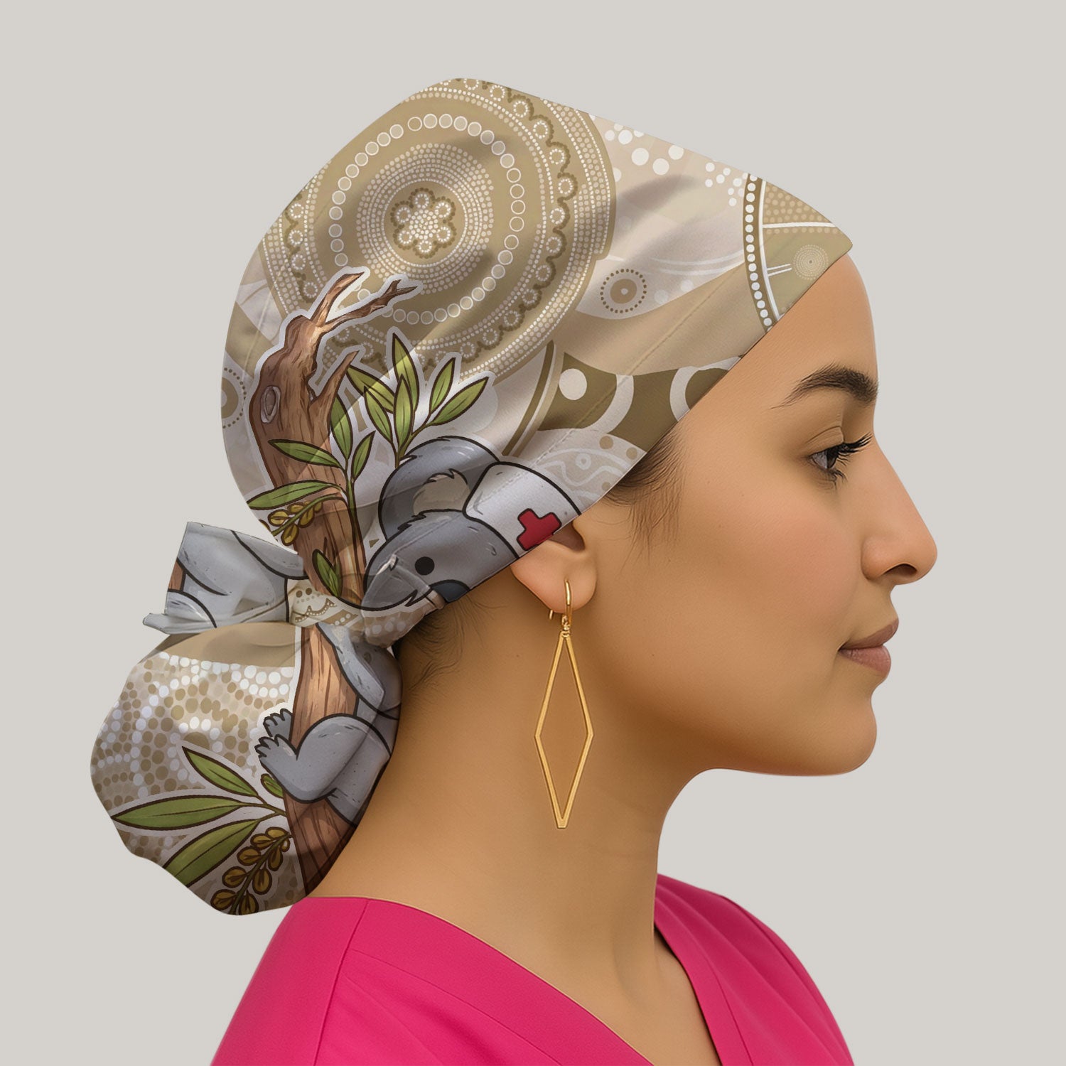 Australian Indigenous Inspired Dot Art Scrub Cap, Cute Koala Pattern Nurse Hat, Comfortable Scrubs For Nursing