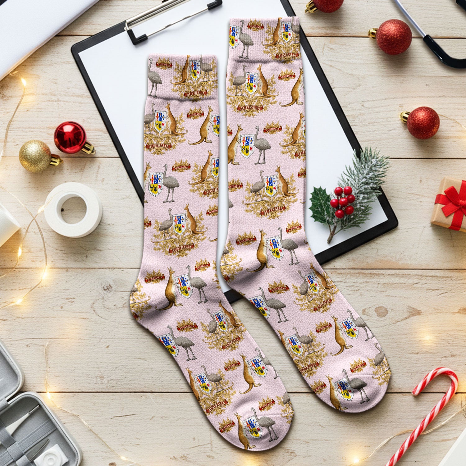 Australian Kangaroo Emu Crest Medical Socks, Breathable Fabrics Medical Uniform