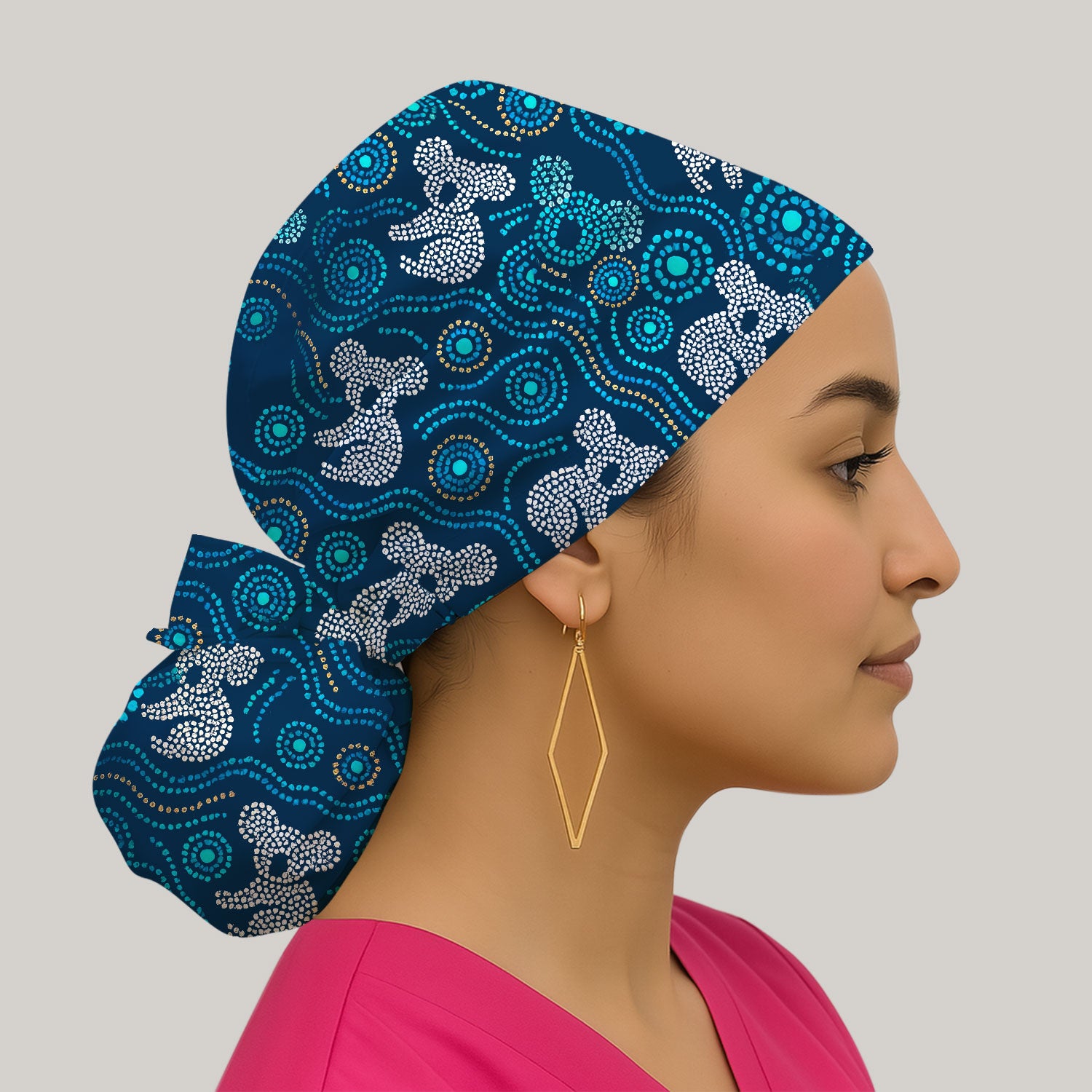 Australian Koala Aboriginal Dot Art Scrub Cap, Aboriginal Pattern Hat, Breathable Nursing Uniform