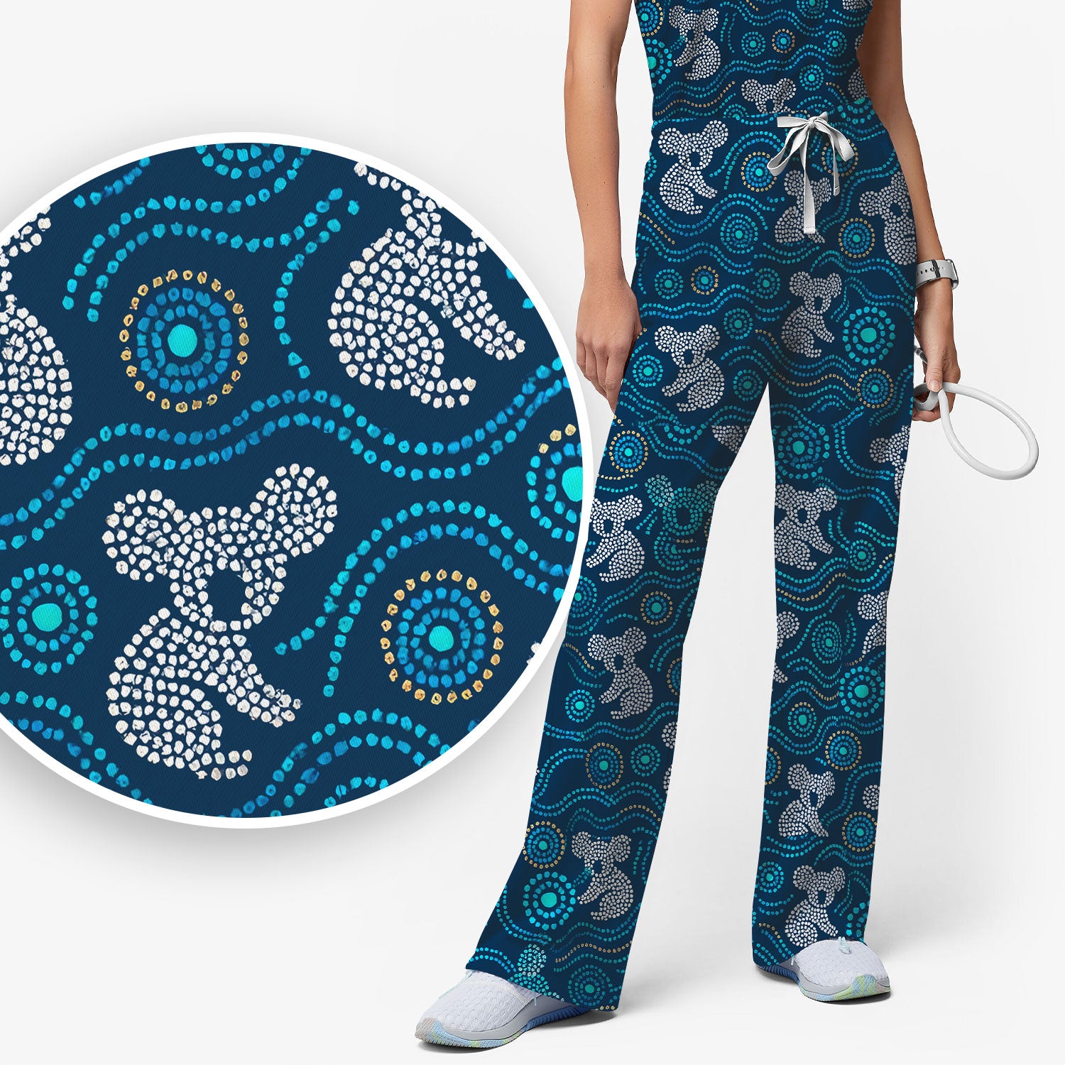 Australian Koala Aboriginal Dot Art Scrub Set, Aboriginal Pattern Shirt, Breathable Nursing Uniform