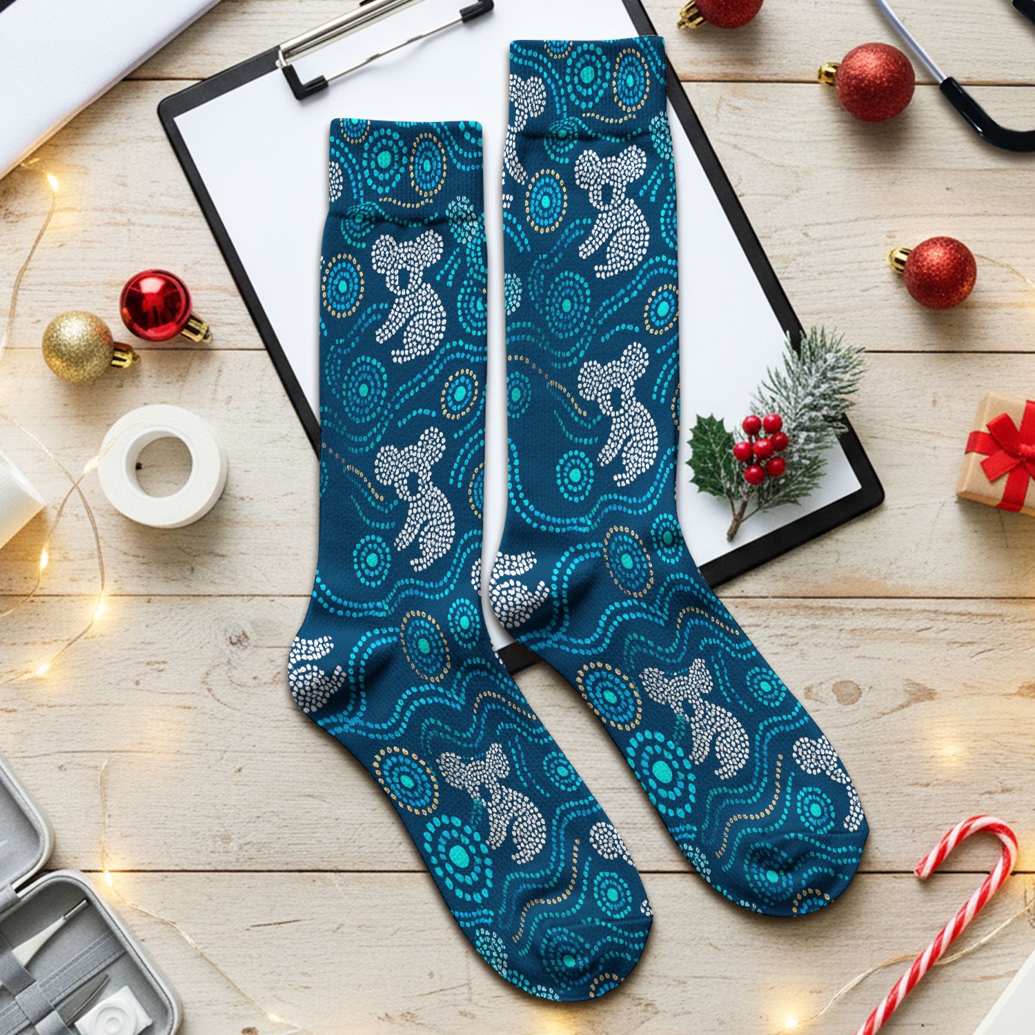 Australian Koala Aboriginal Dot Art Scrub Socks, Aboriginal Pattern Sock, Breathable Nursing Uniform