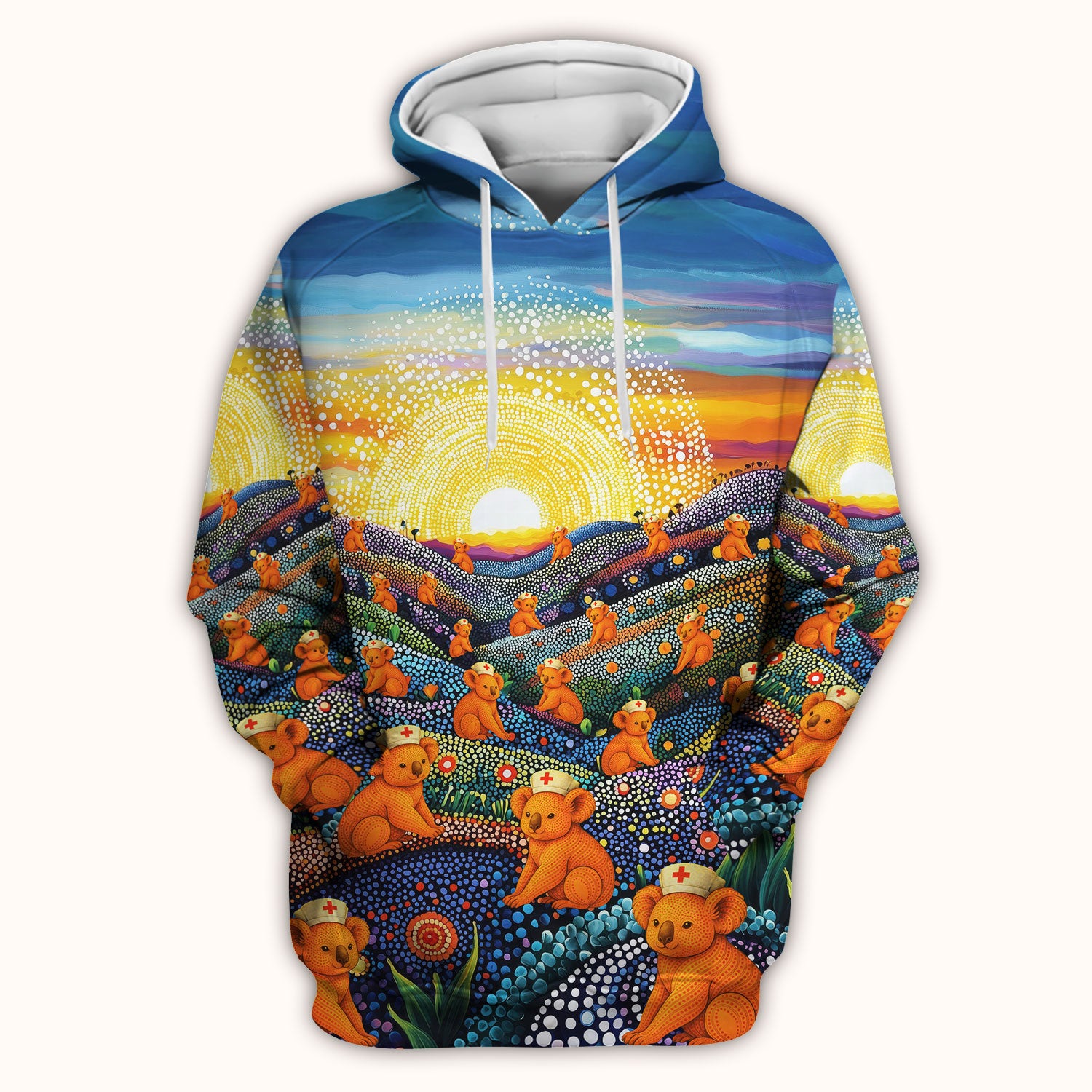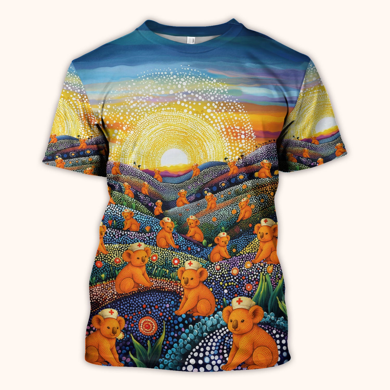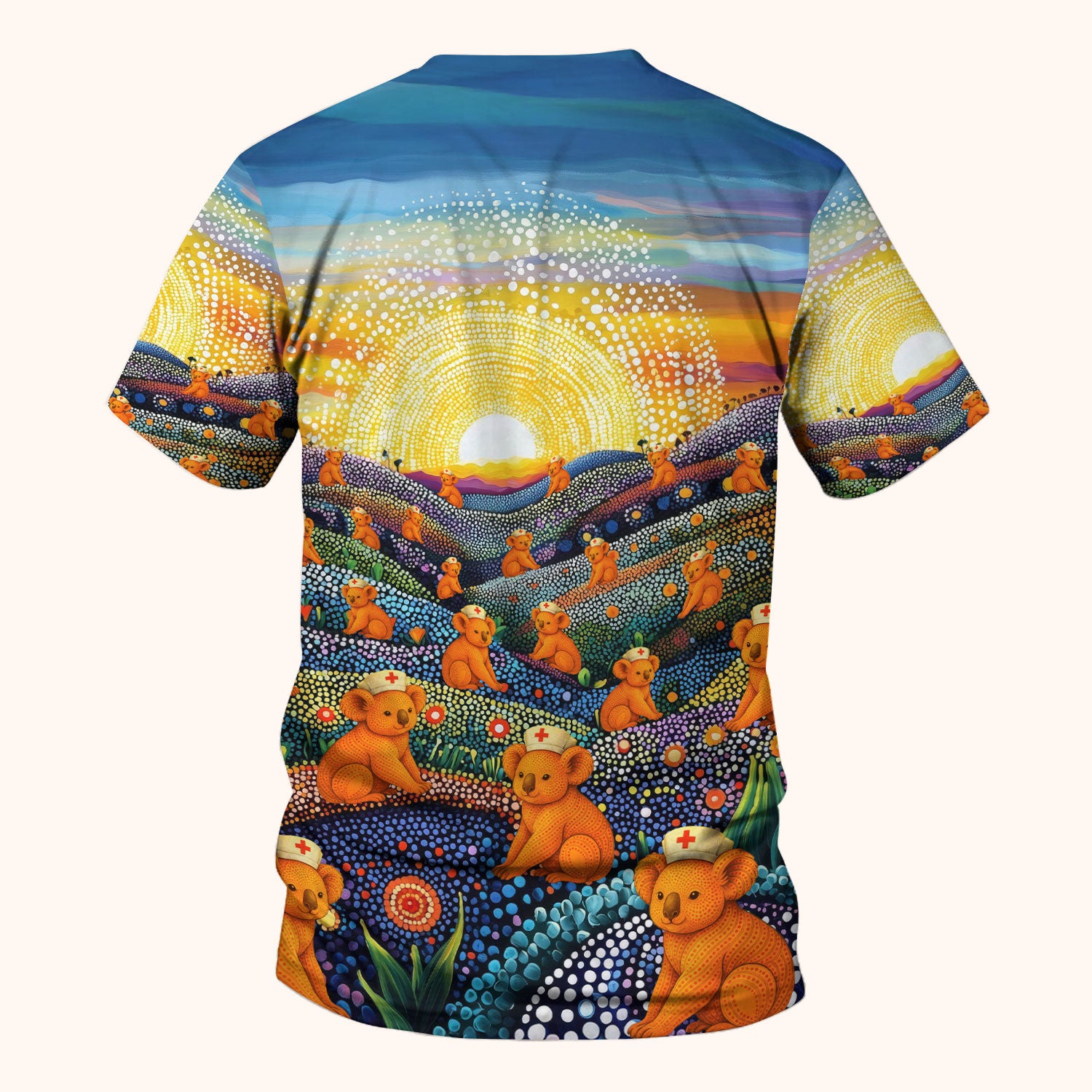 Australian Koala Dot Art Nurse Scrub Top - Women V-Neck Shirt