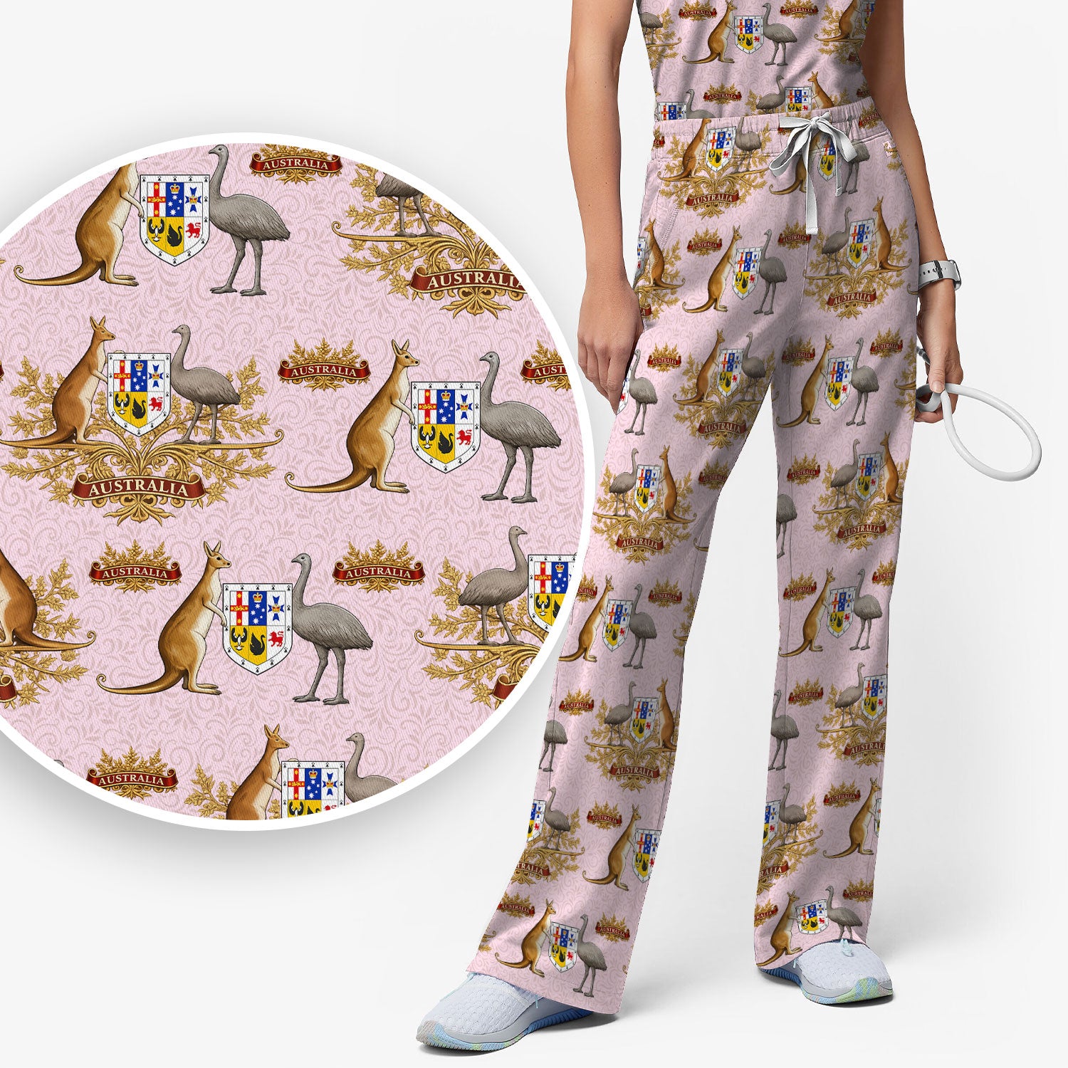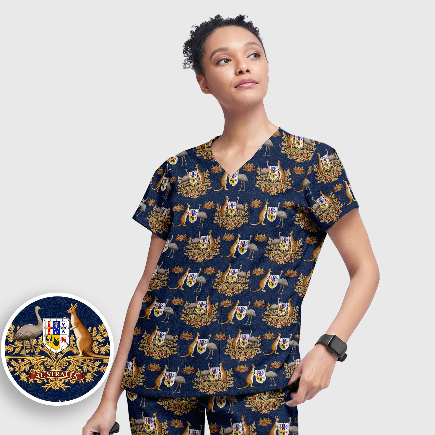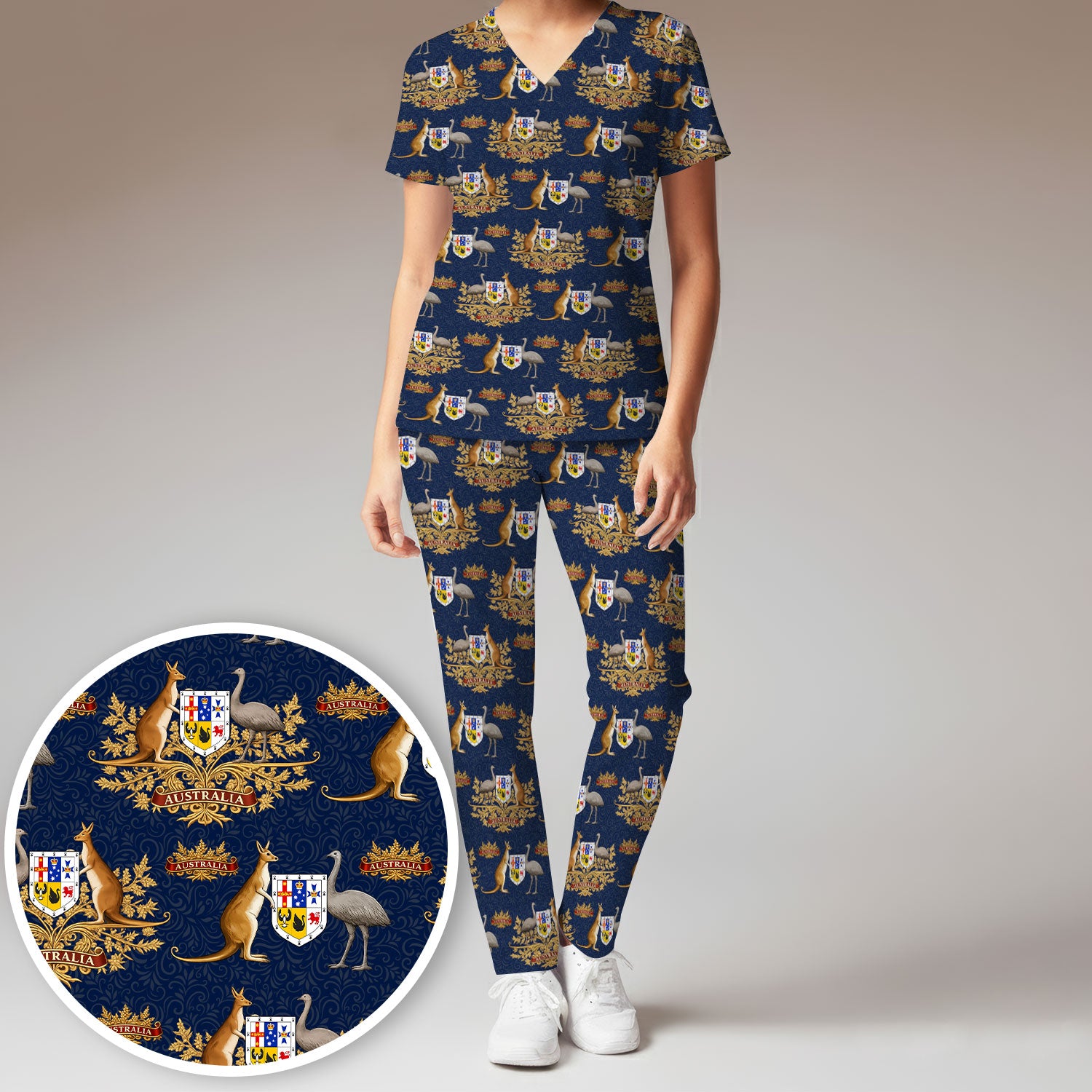 Australian National Crest Kangaroo Emu Scrub Set, Women's Scrub Sets