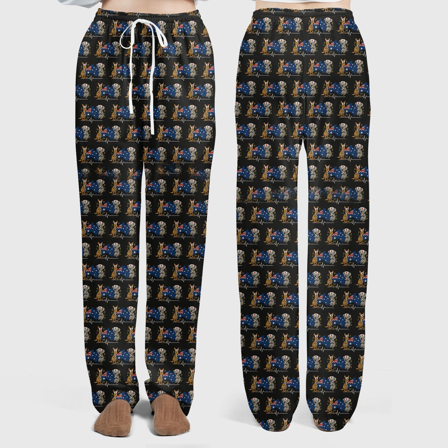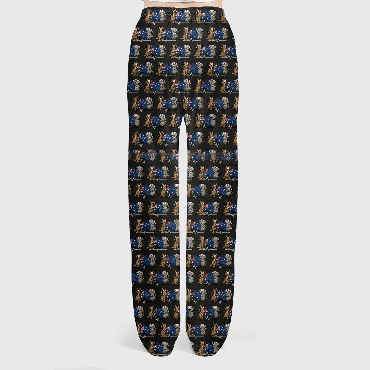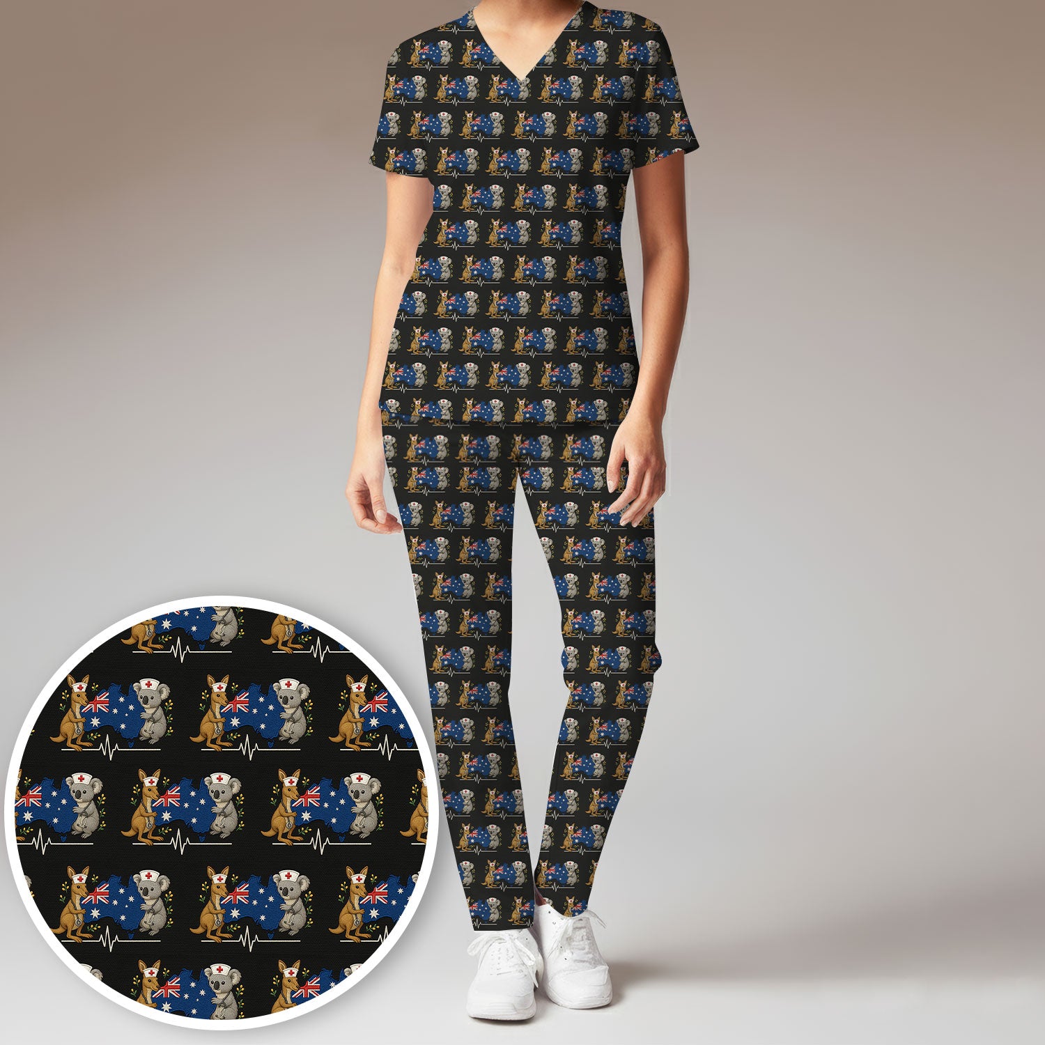 Australian Nurse Scrub Set, Cute Koala Kangaroo Heartbeat Pattern Shirt, Breathable Fabrics Nursing Uniform