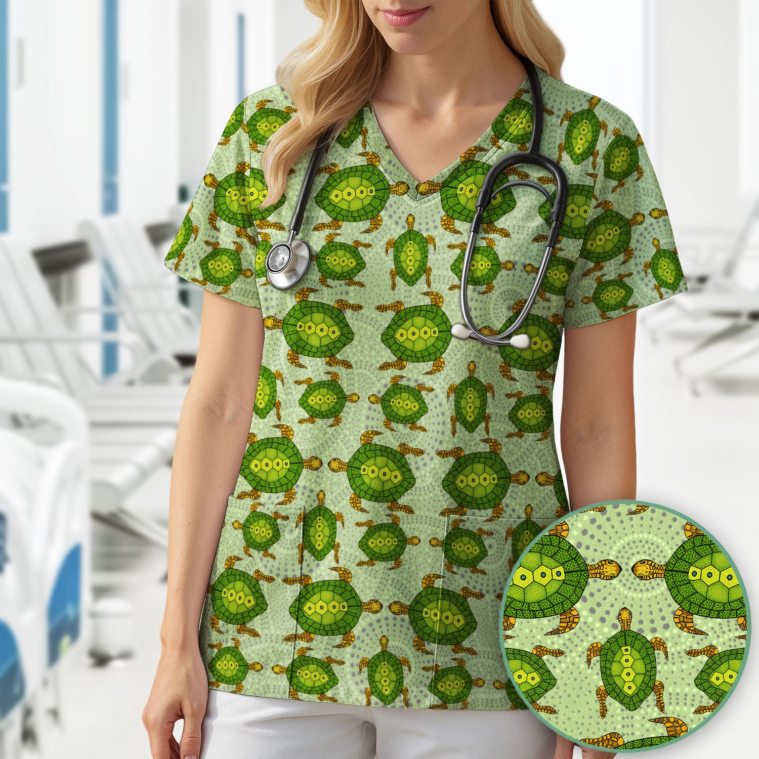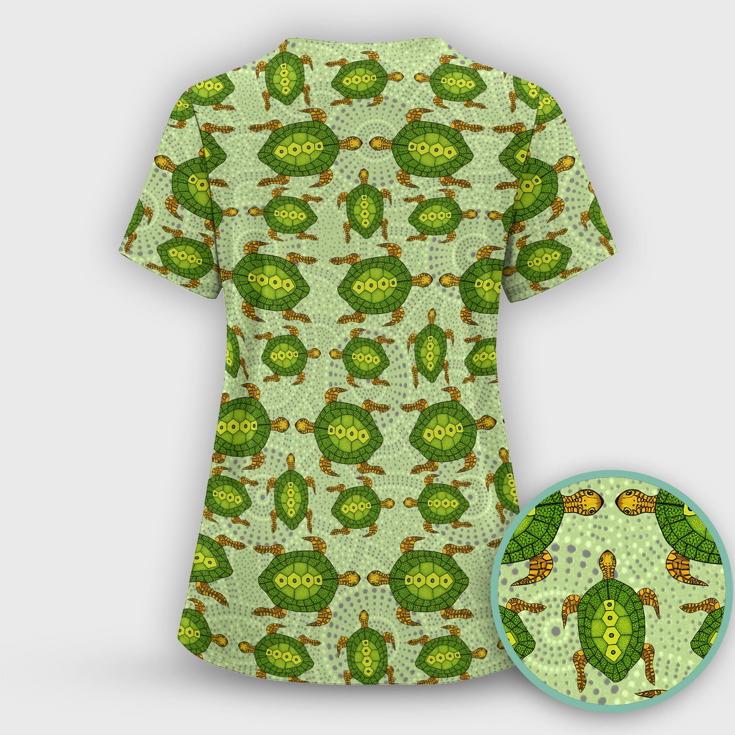 Australian Turtle Dot Art Inspired Nursing Scrub Top - Women V-Neck Shirt