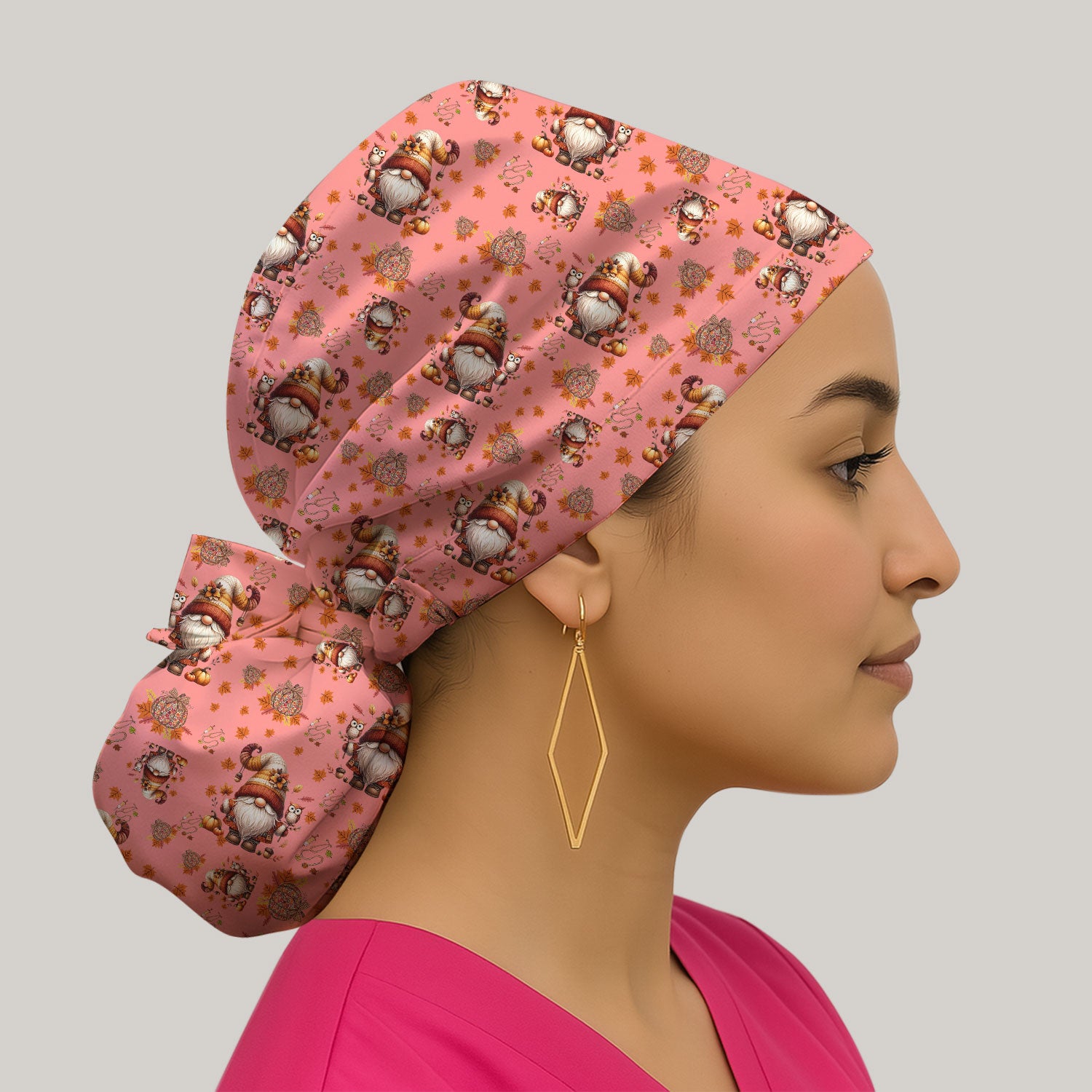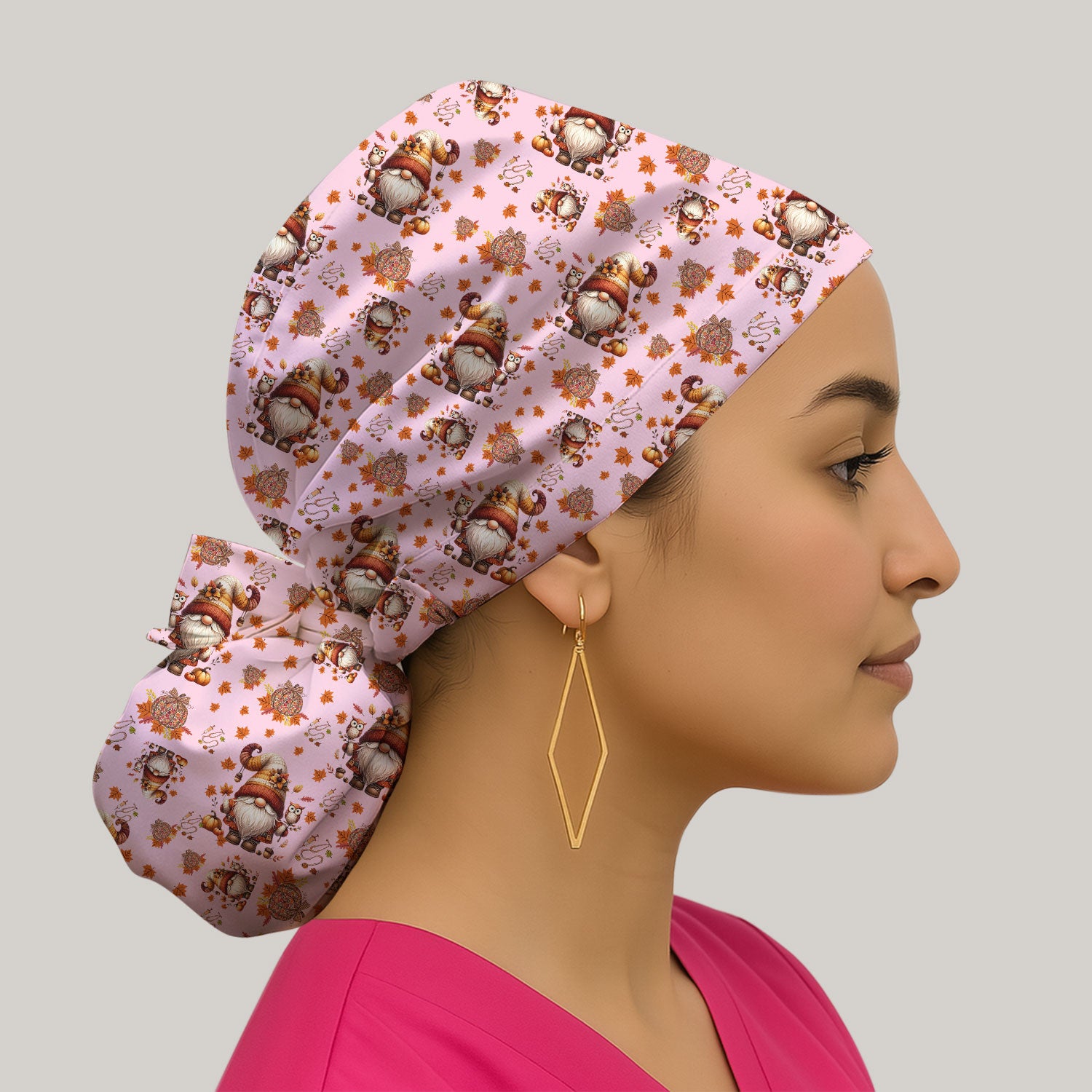 Autumn Leaves Pumpkin Bouffant Scrub Caps for Women - Thanksgiving Surgical Caps for Doctors - Gnome Lover Gift for Her