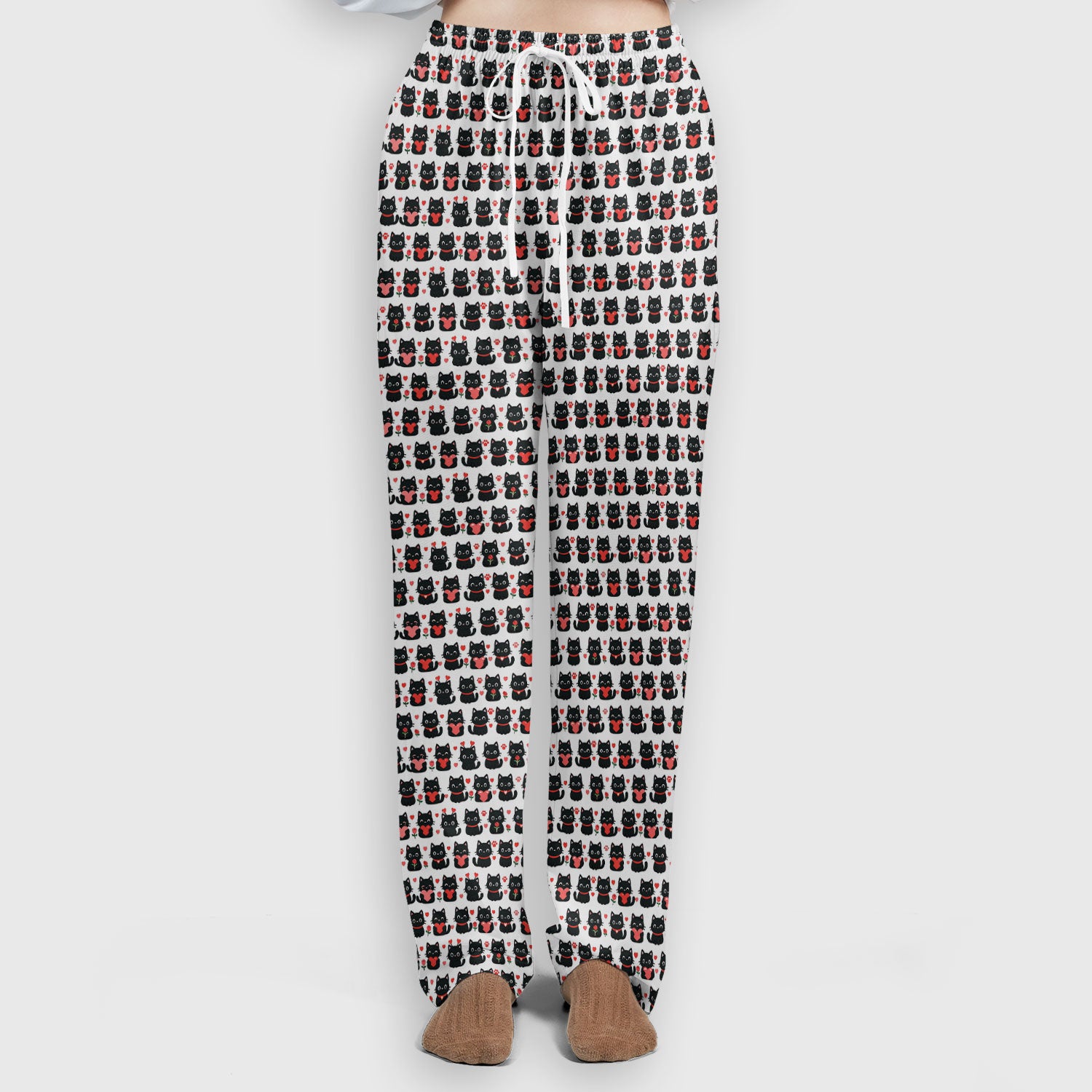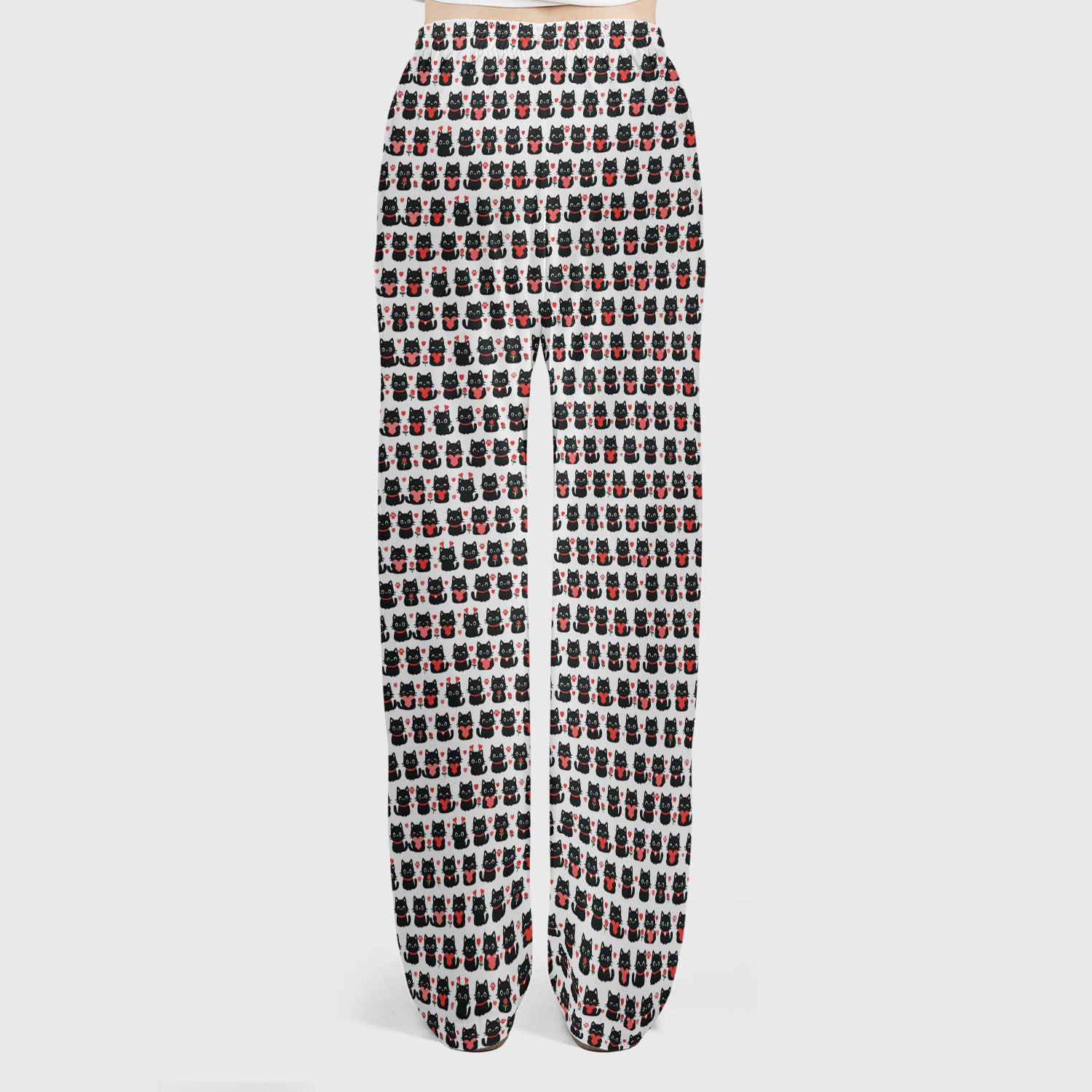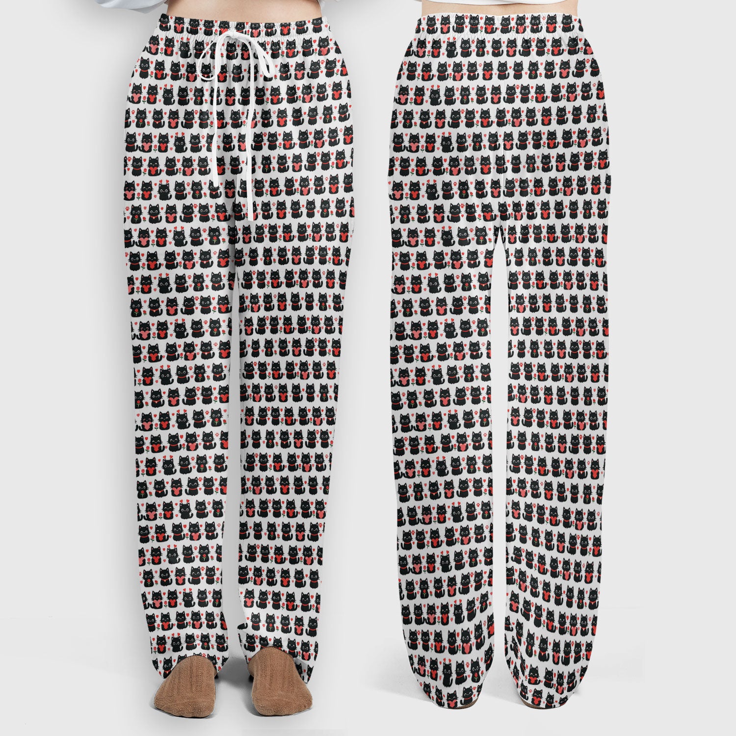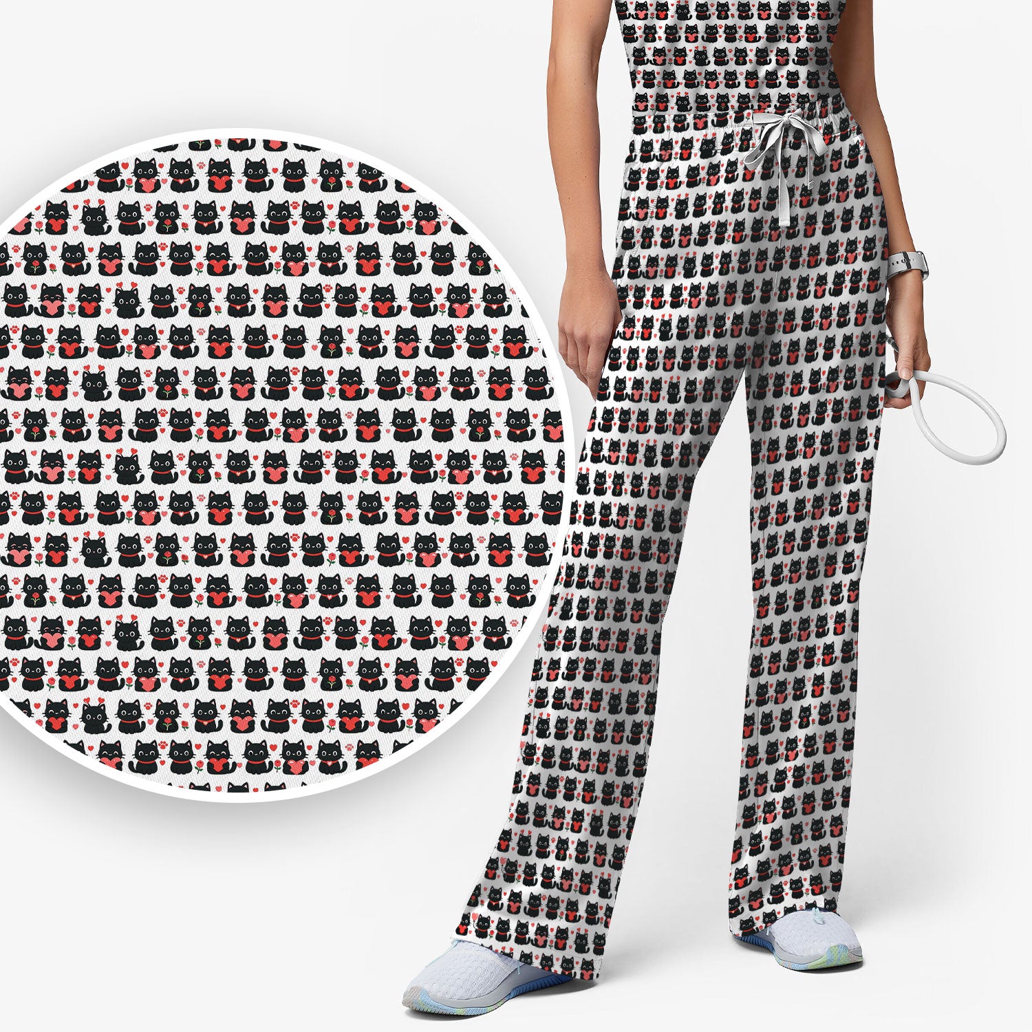 Black Cat Valentine Nurse Scrub Set, Cute Heart Pattern Medical Shirt, Breathable Fabrics Nursing Uniform