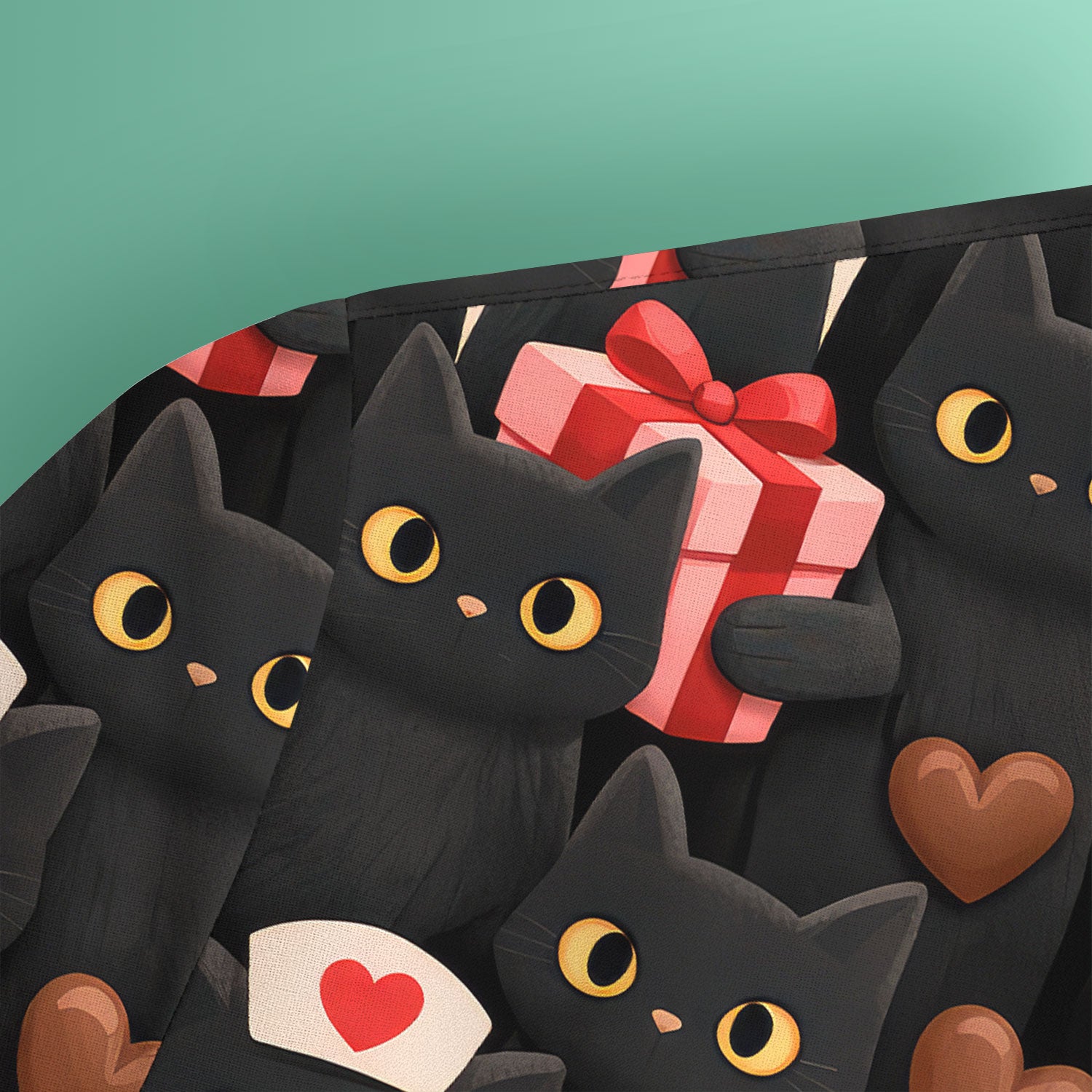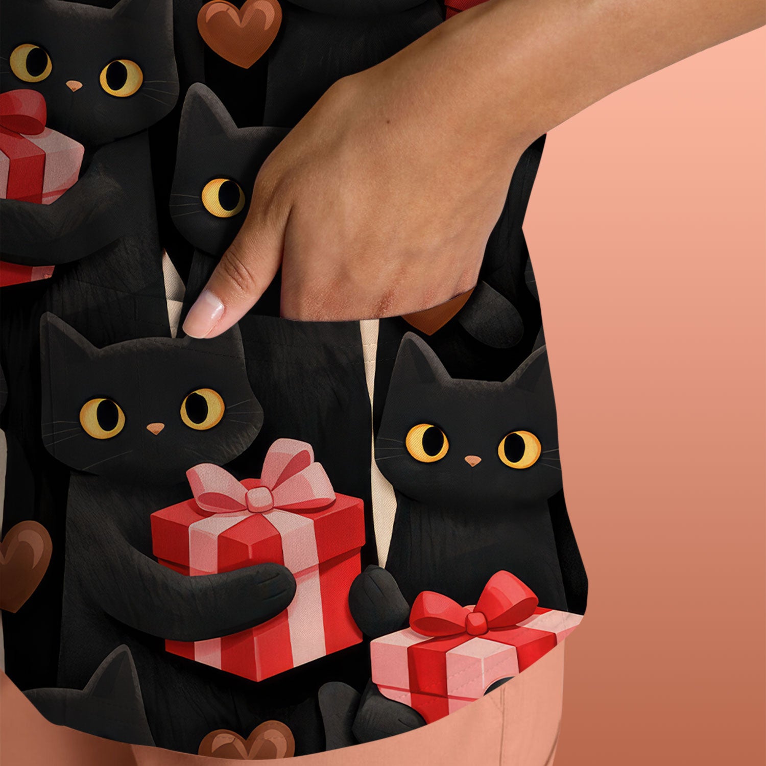 Black Cat Valentine Nurse Scrub Top, Heart Pattern Medical Shirt, Breathable Fabrics Nursing Uniform