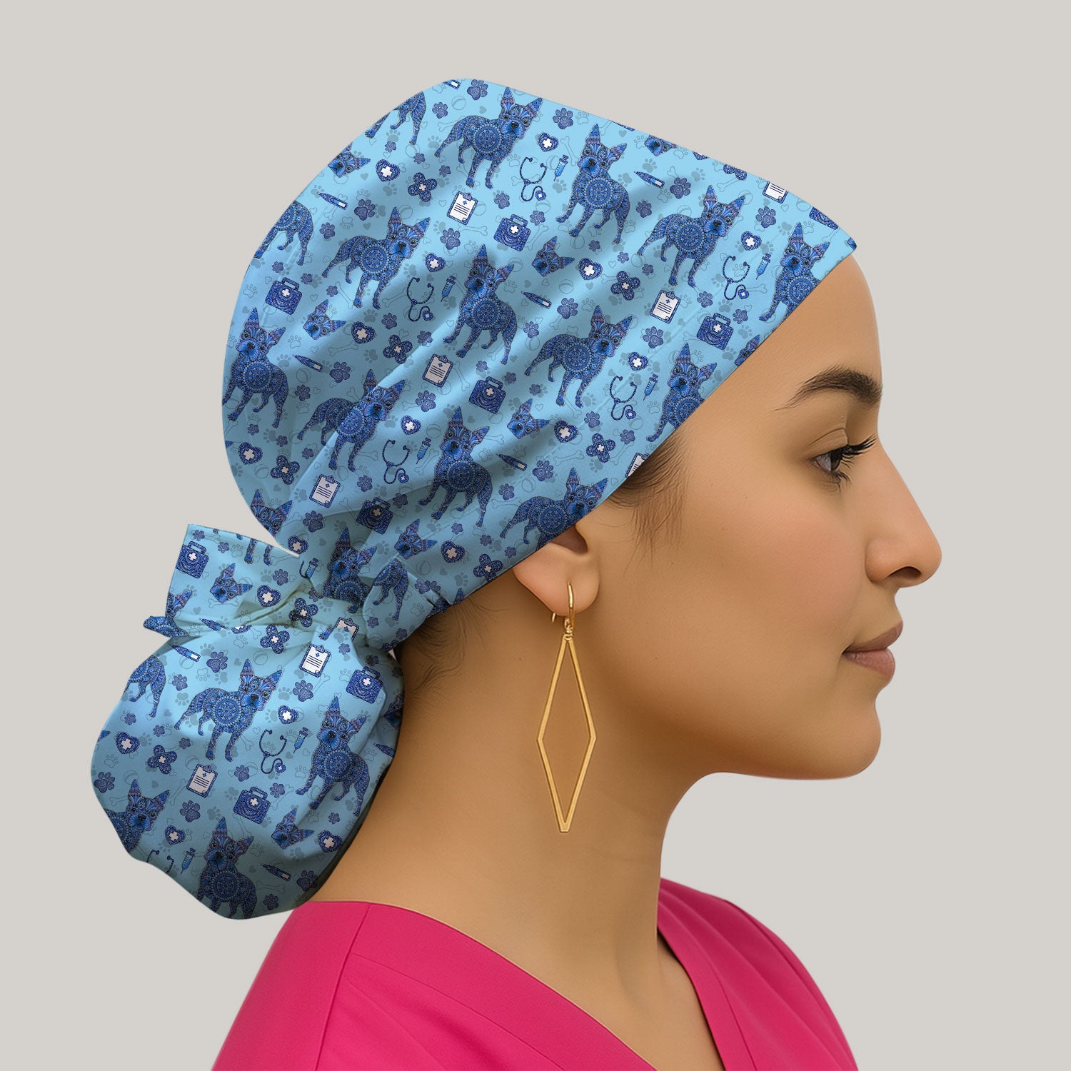 Ponytail Scrub Cap for Women - Cute Nurse Print