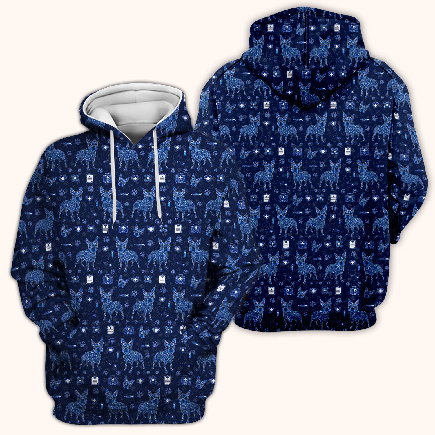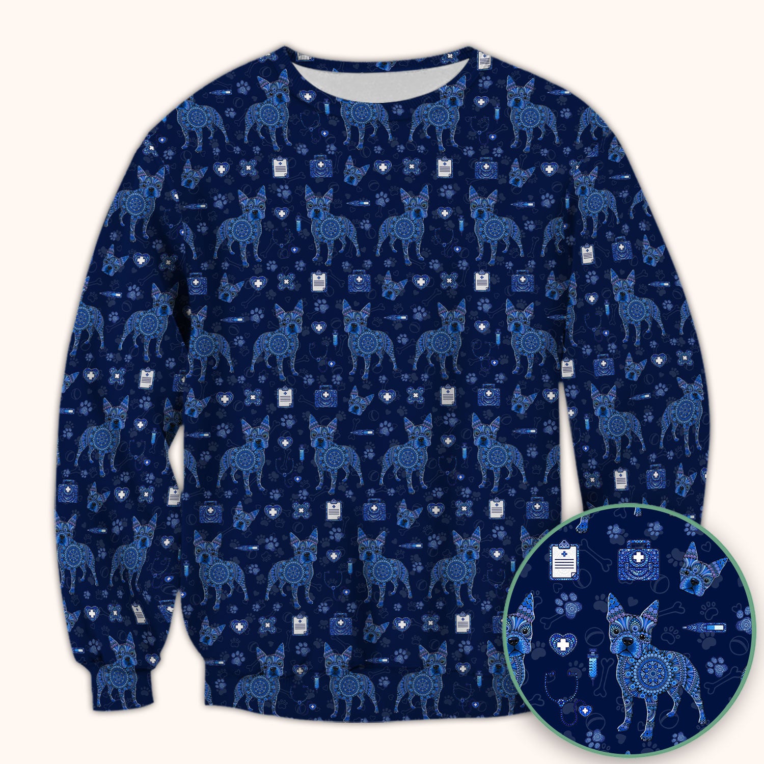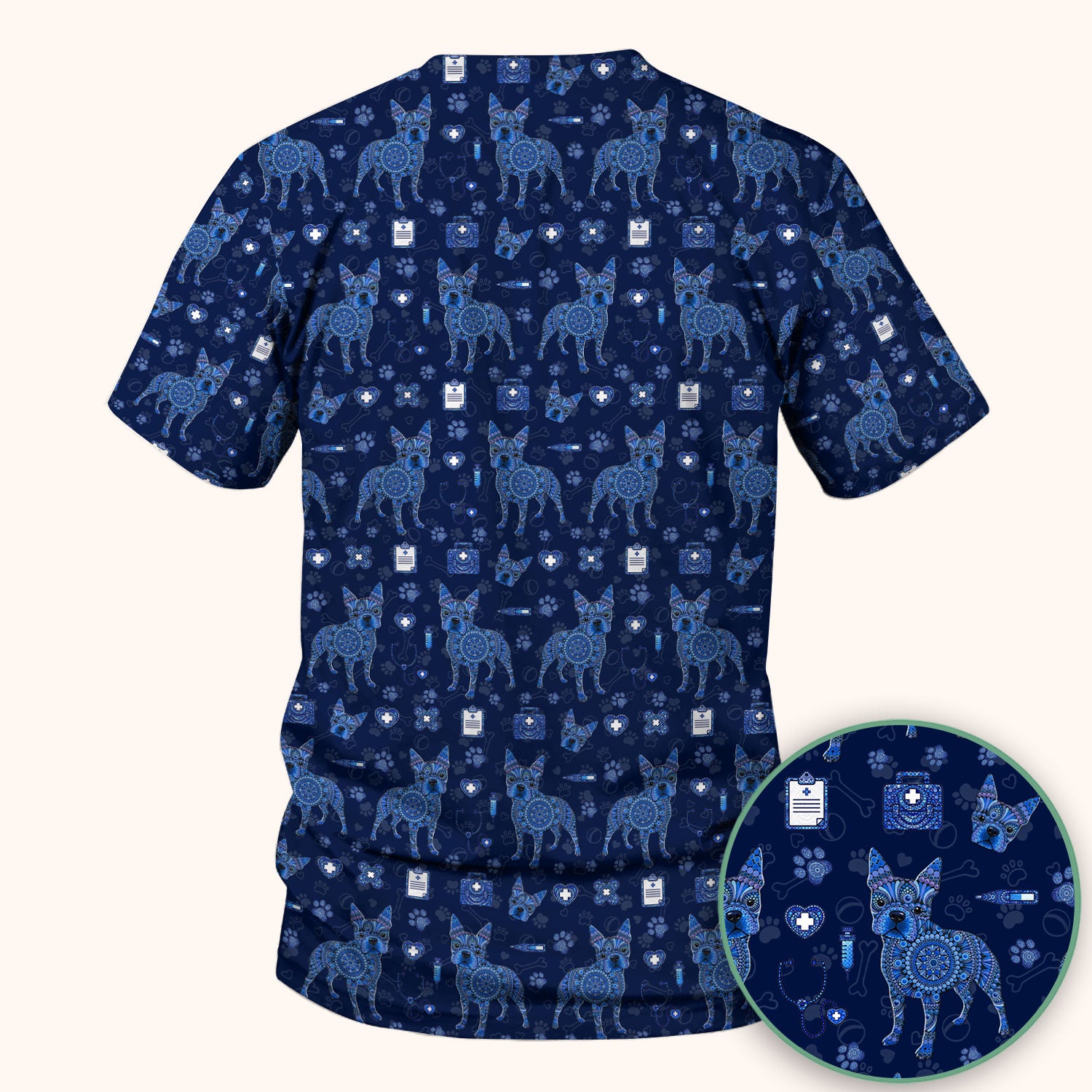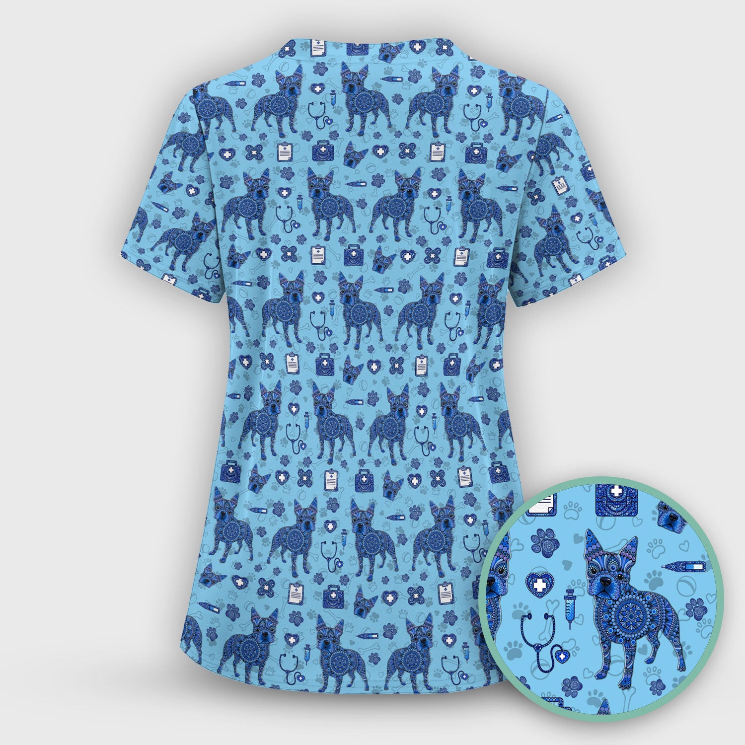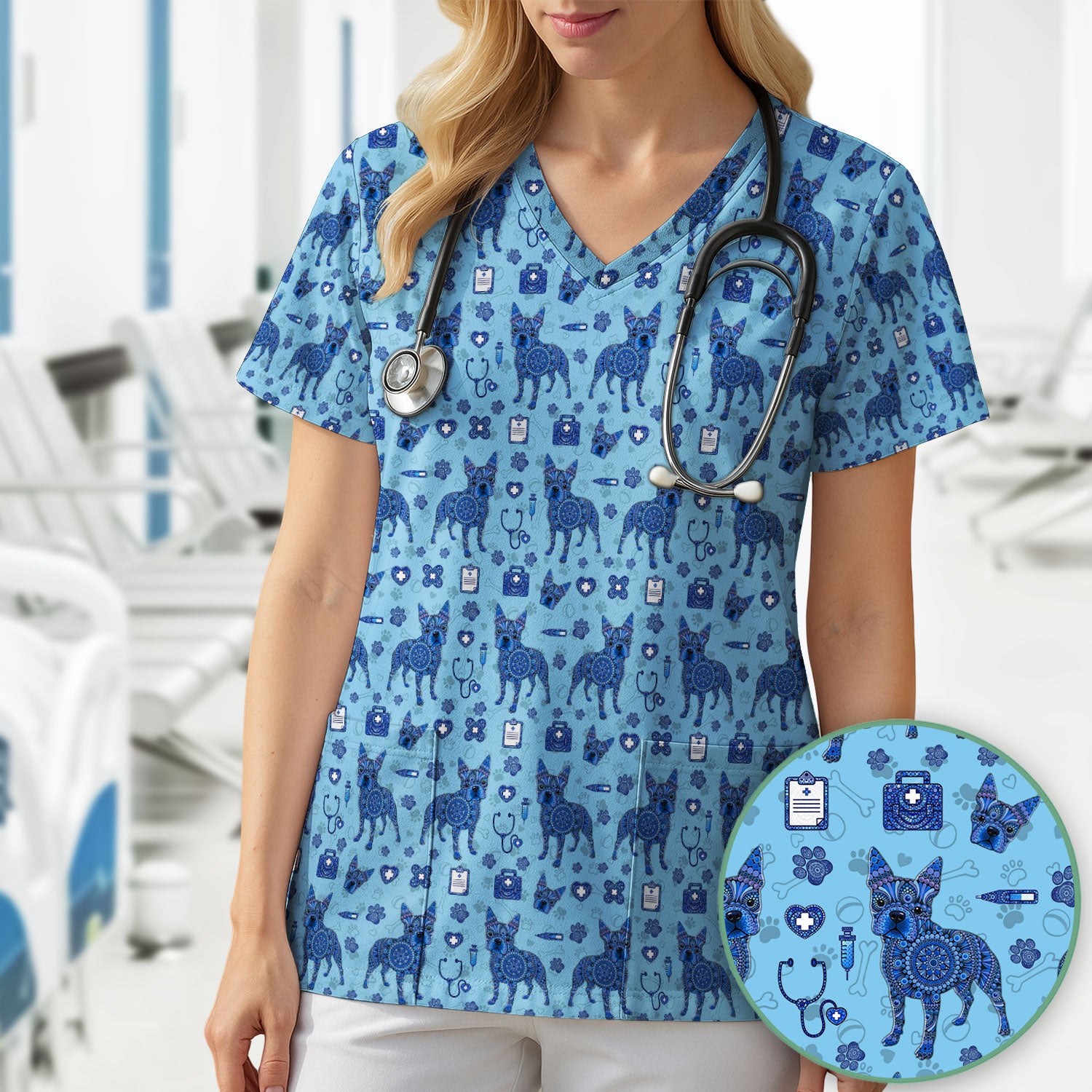 Blue Heeler Australian Cattle Dog Scrub Top, Australia Dot Art Pattern Shirt, Breathable Fabrics Nursing Uniform