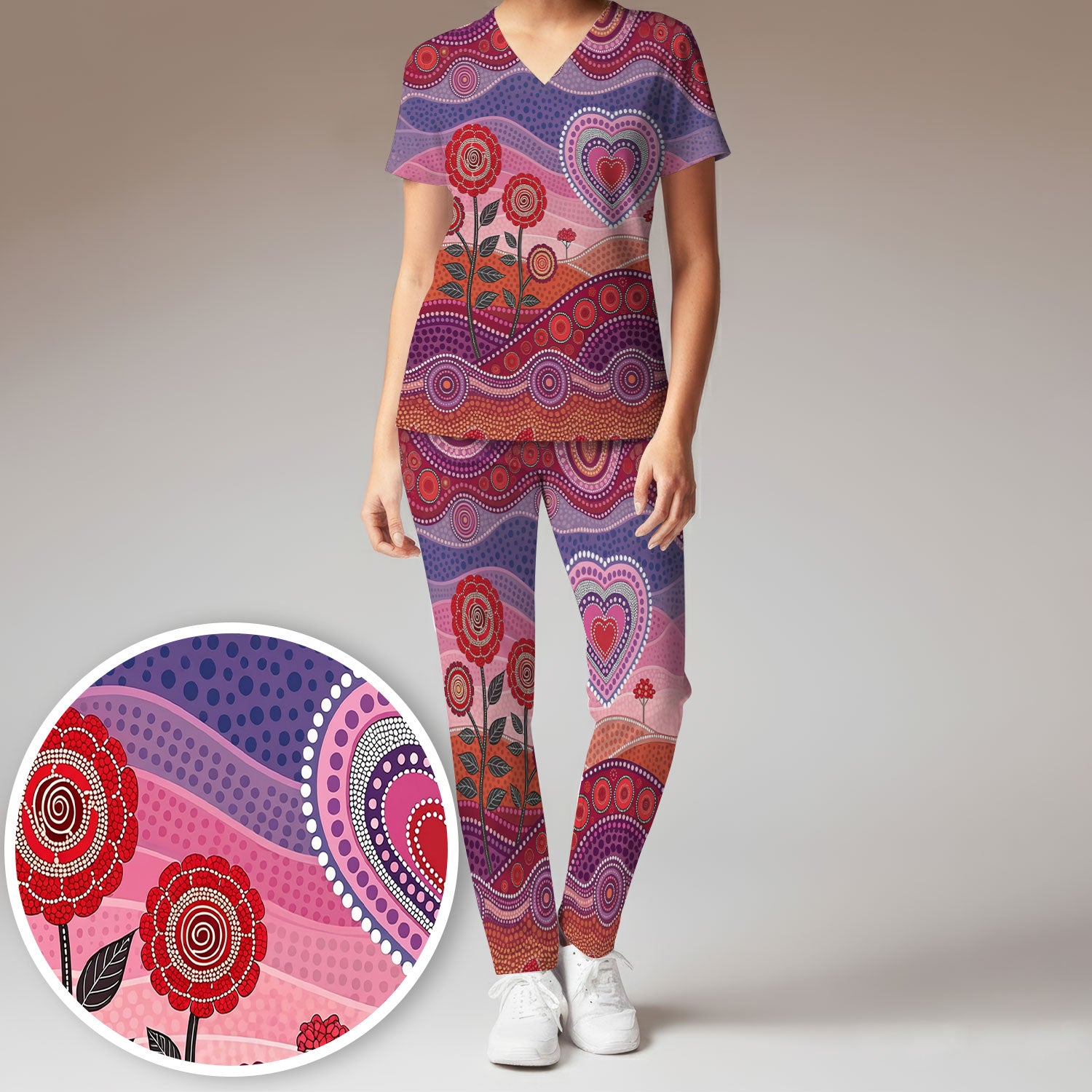 Boho Dot Art Valentine Scrub Set, Artistic Heart Pattern Nurse Shirt, Comfortable Scrubs For Nursing