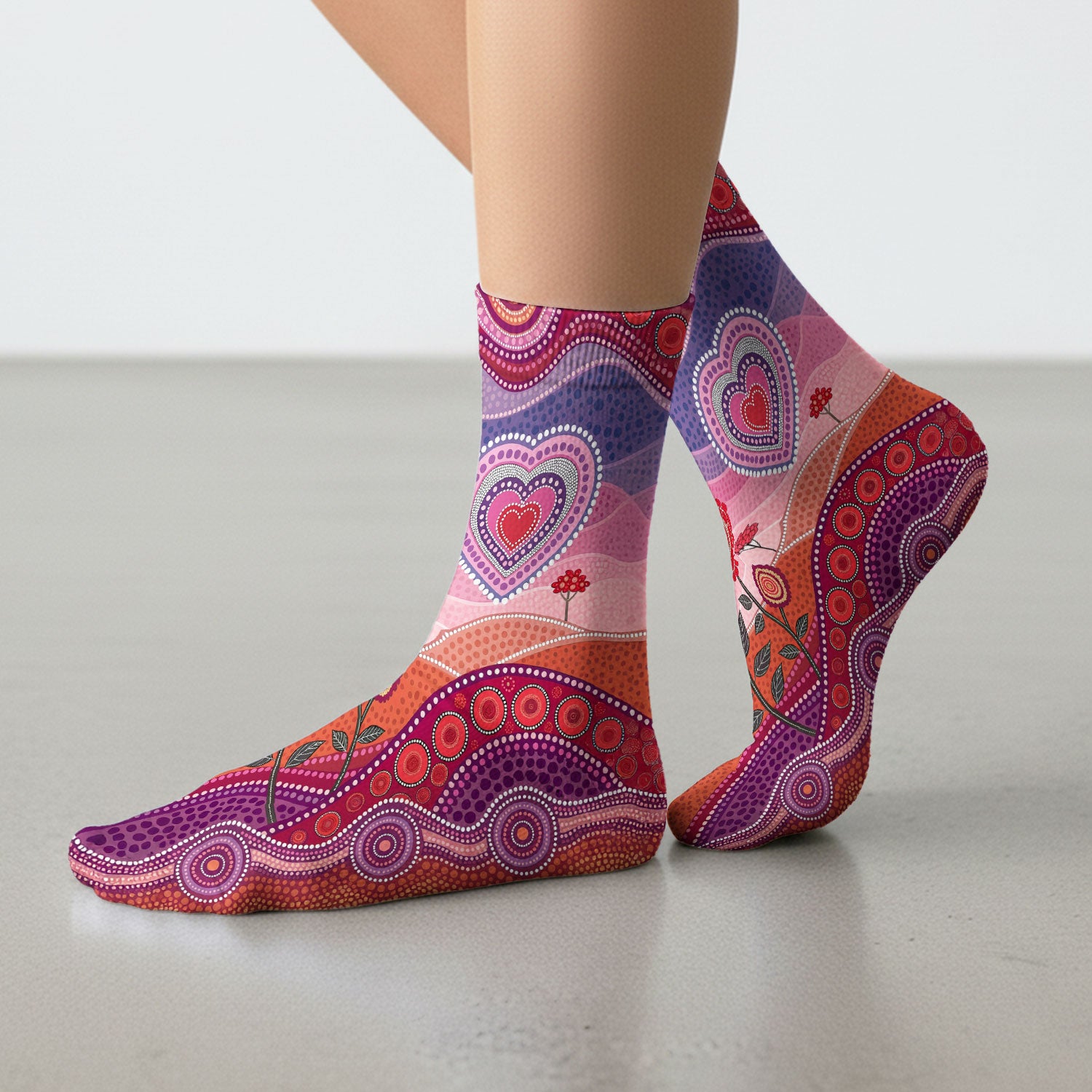 Boho Dot Art Valentine Scrub Socks, Artistic Heart Pattern Nurse Sock, Comfortable Scrubs For Nursing
