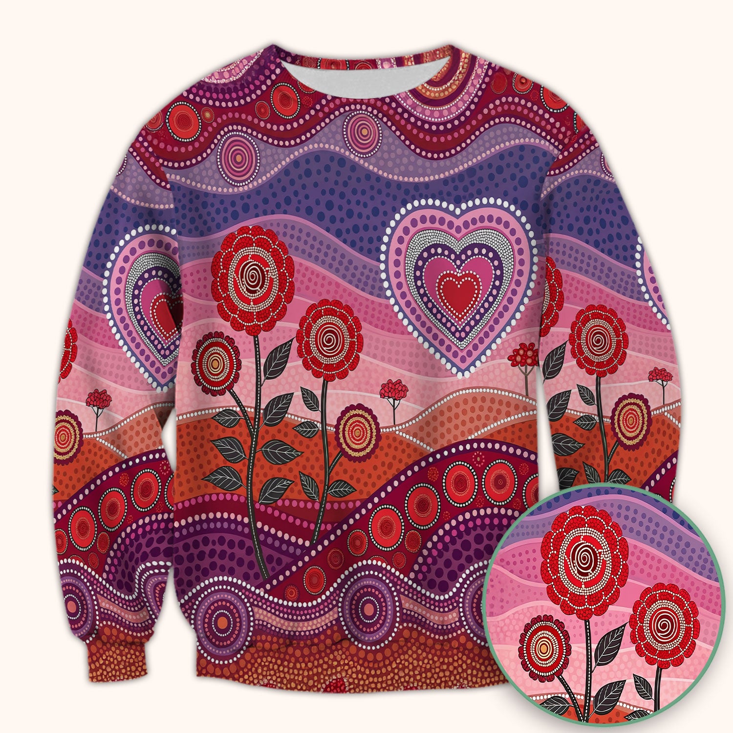 Boho Dot Art Valentine Scrub Top, Artistic Heart Pattern Nurse Shirt, Comfortable Scrubs For Nursing