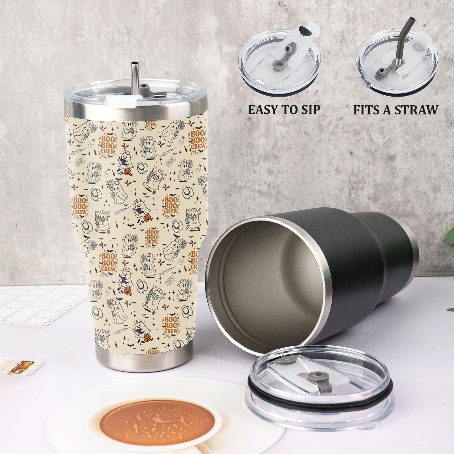 BOO BOO CREW Halloween Nurse Tumbler - Cute Medical Ghost Design Drinkware - Spooky Gift for RN CNA EMT Healthcare Workers