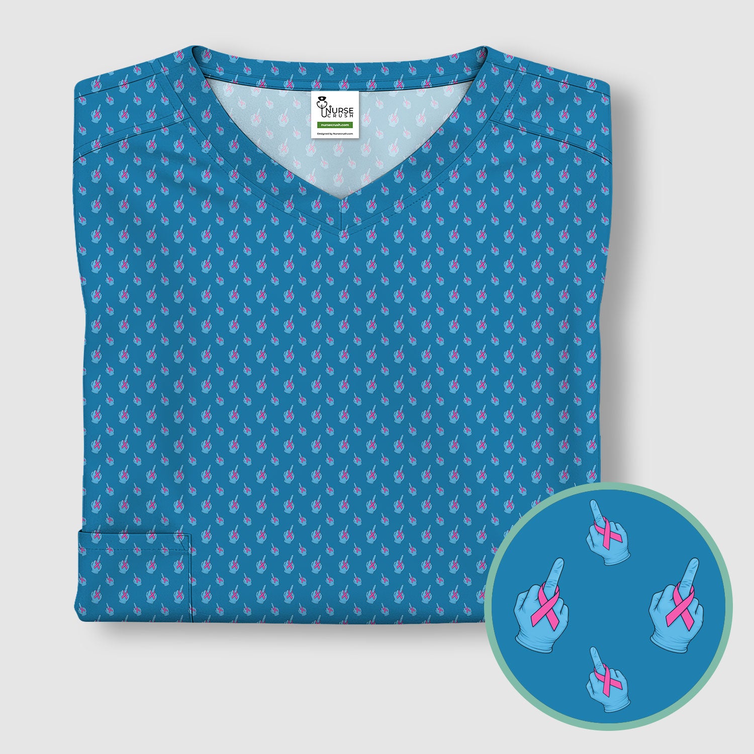 Breast Cancer Awareness Scrub Top - Pink Ribbon Medical Uniform for Women - October Gift for RN LPN CNA