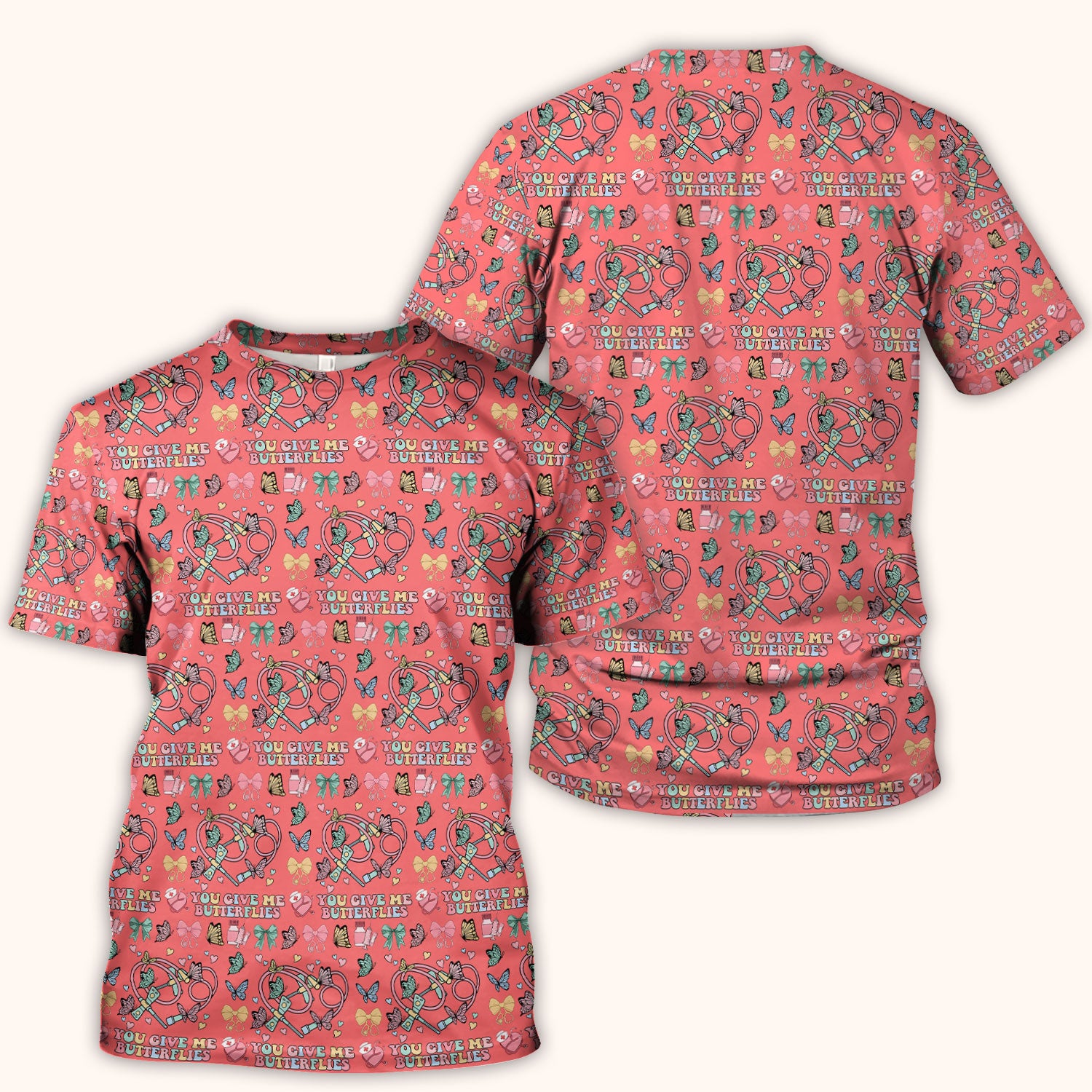 Butterfly Heart Valentine Medical Pattern Scrub Top, Comfortable Scrubs for Nurses