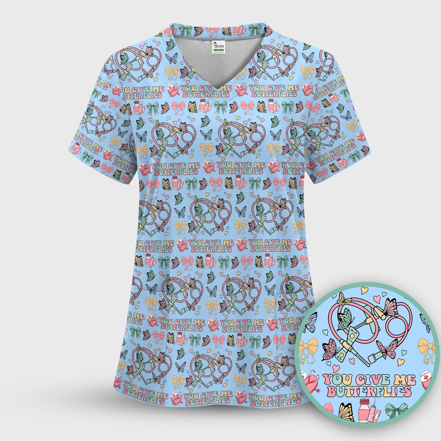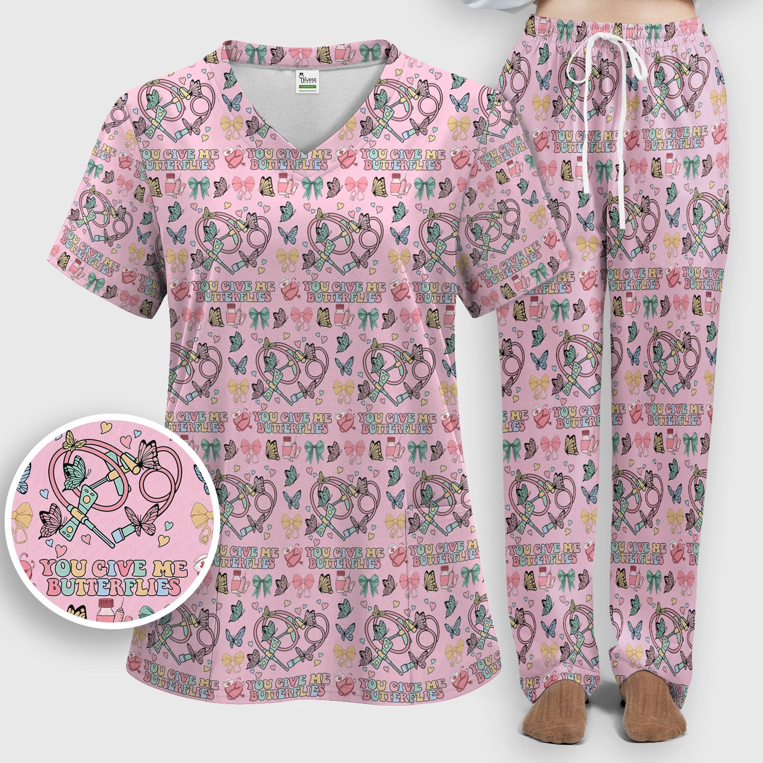 Butterfly Heart Valentine Medical Pattern Scrub, Women's Scrub Sets