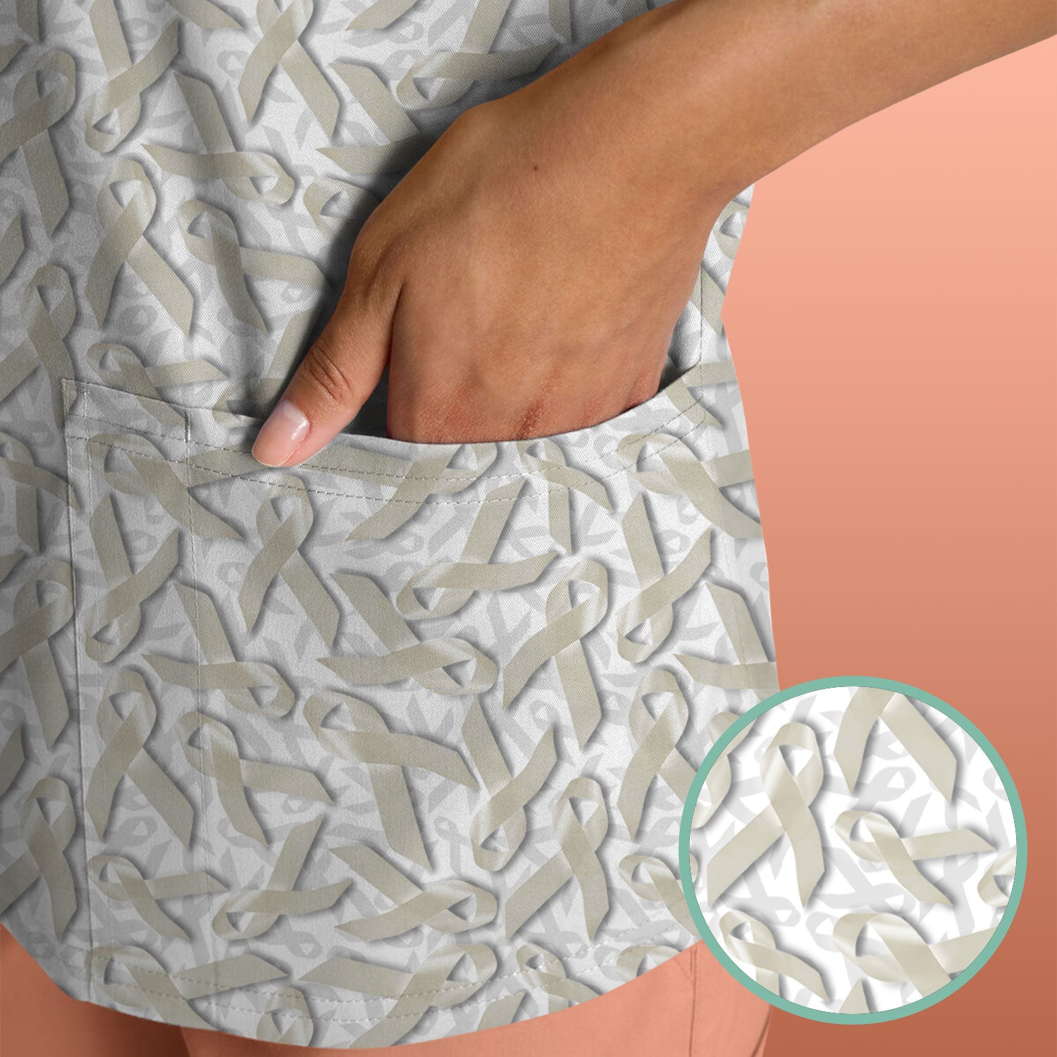 Cancer Awareness Scrub Top with White Ribbon - Lung Cancer Support Nurse Shirt - Inspirational Gift for Fighters Survivors & Families