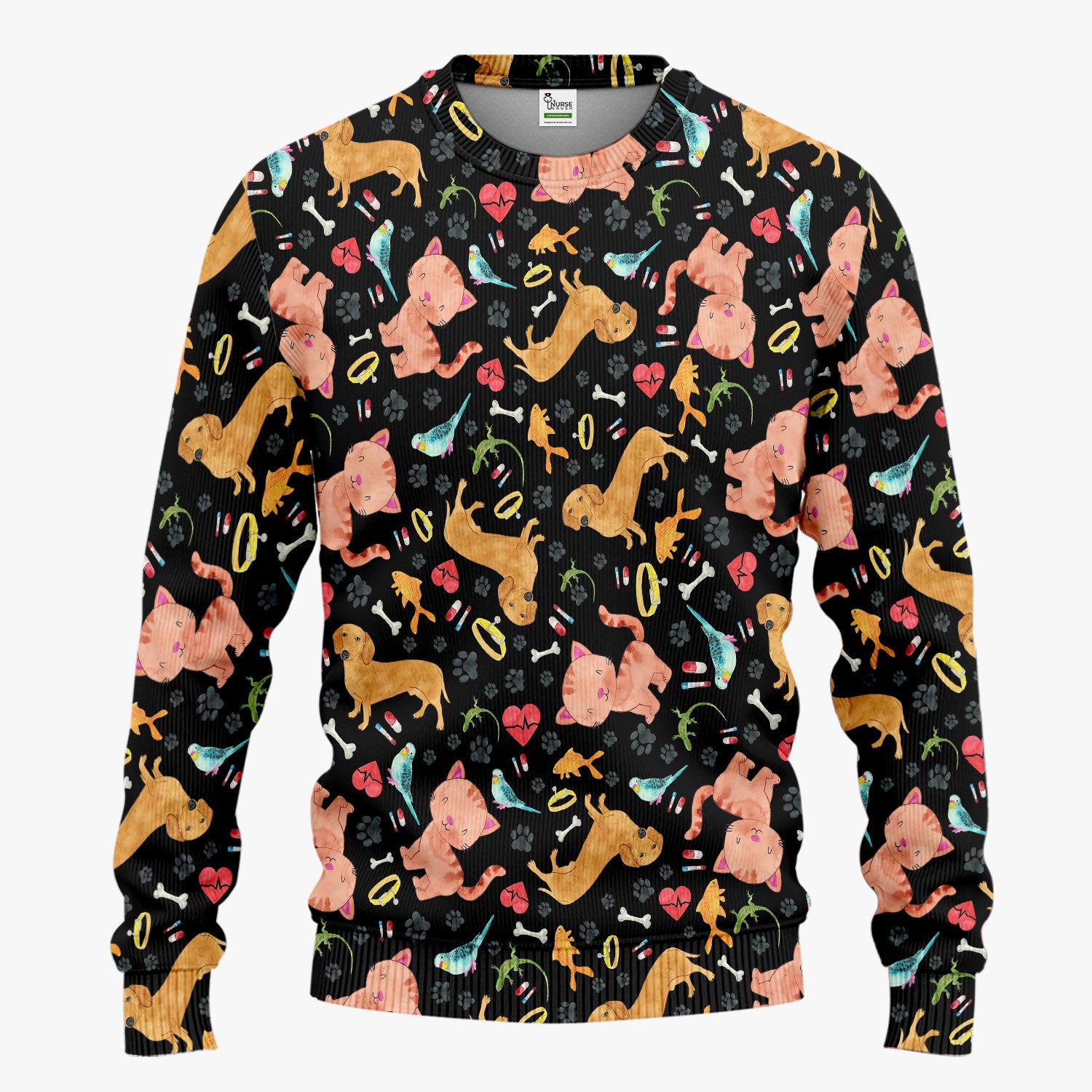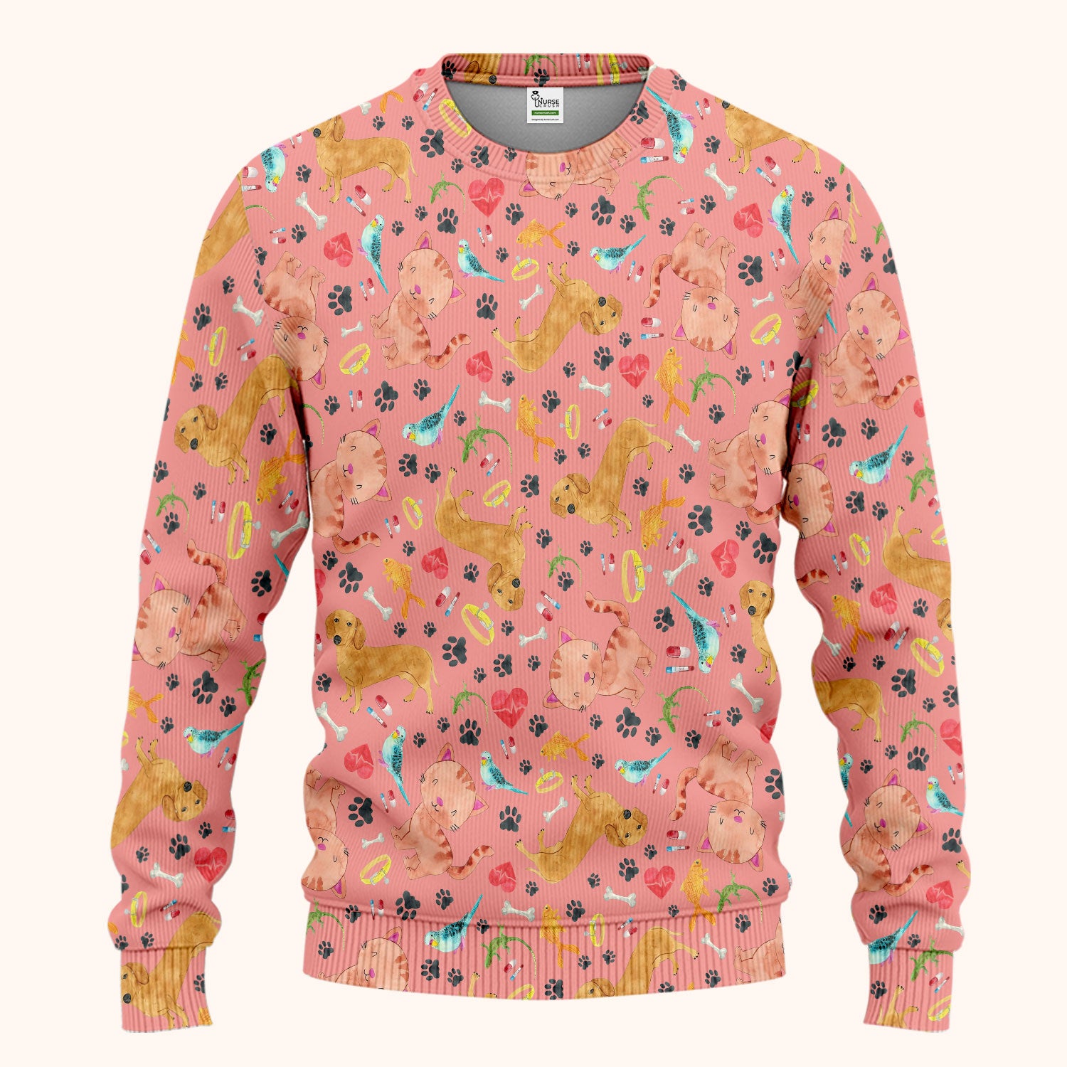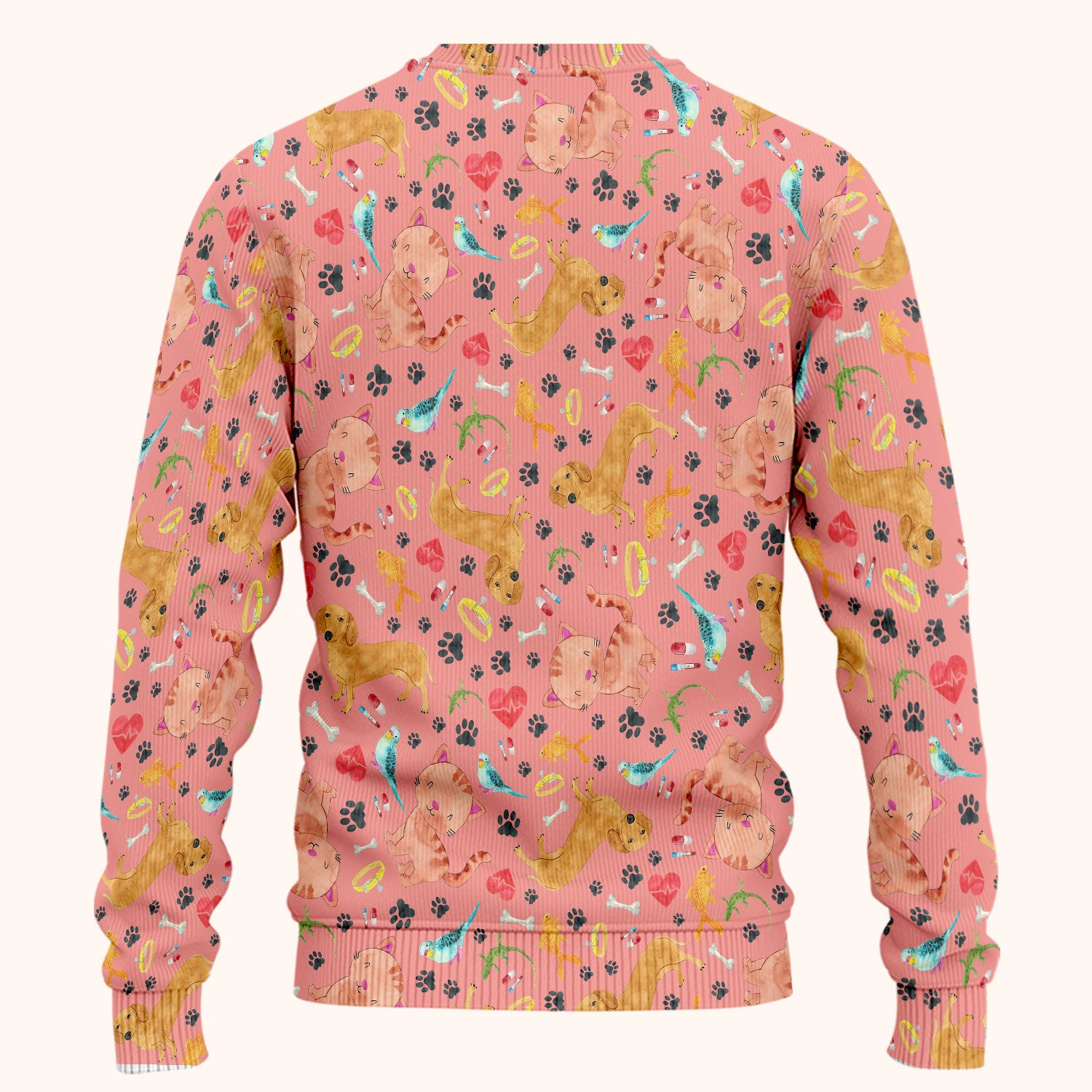 Cat Dog Veterinary Scrub Set - Cute Animal Paw Print Medical Pants and V Neck Top for Women RN CNA Vet Tech