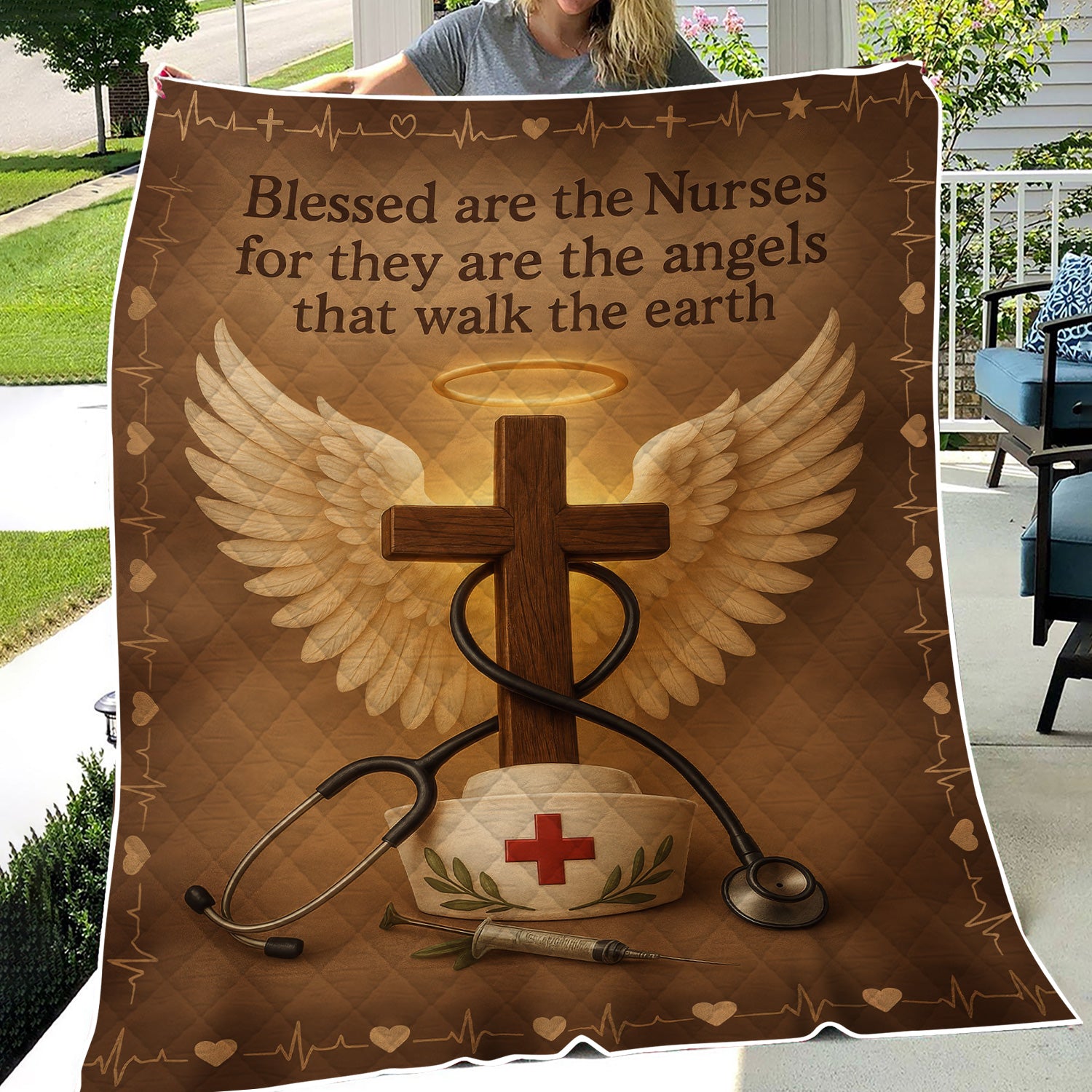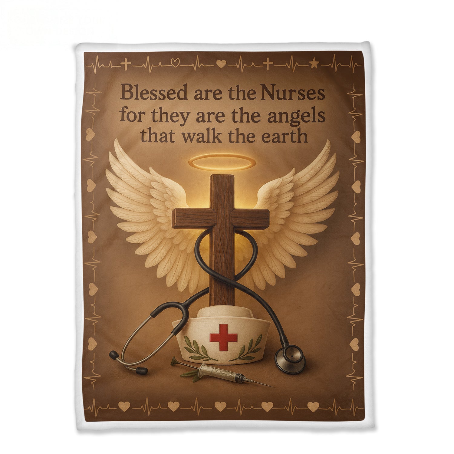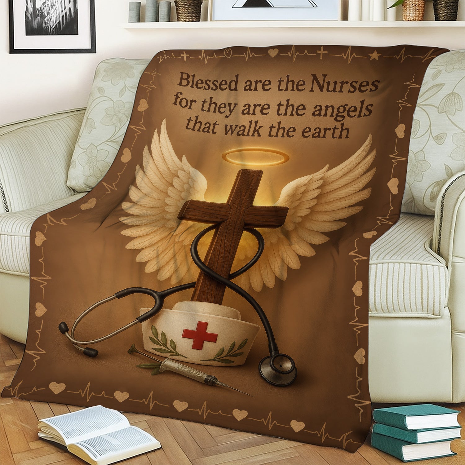 Christian Nurse Blanket Gift for Faithful RN - Blessed Are the Nurses Quote - Religious Throw for Christian Healthcare Workers