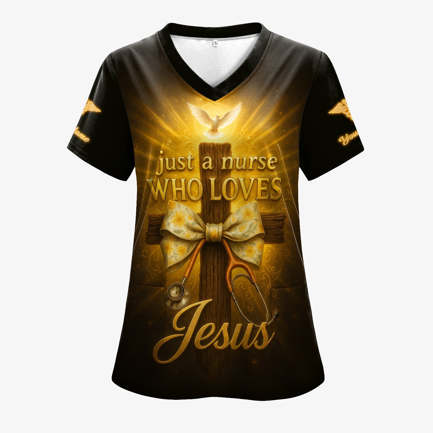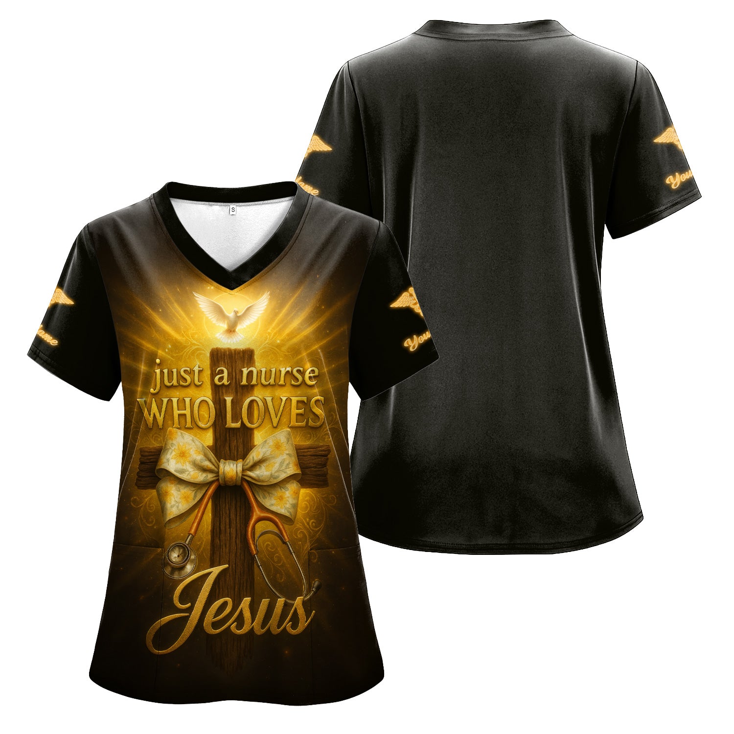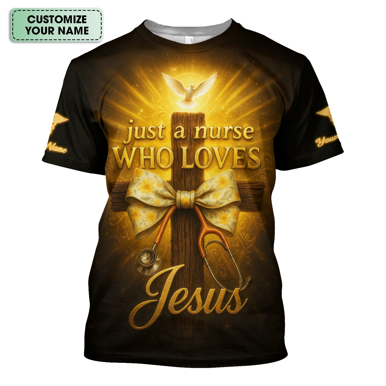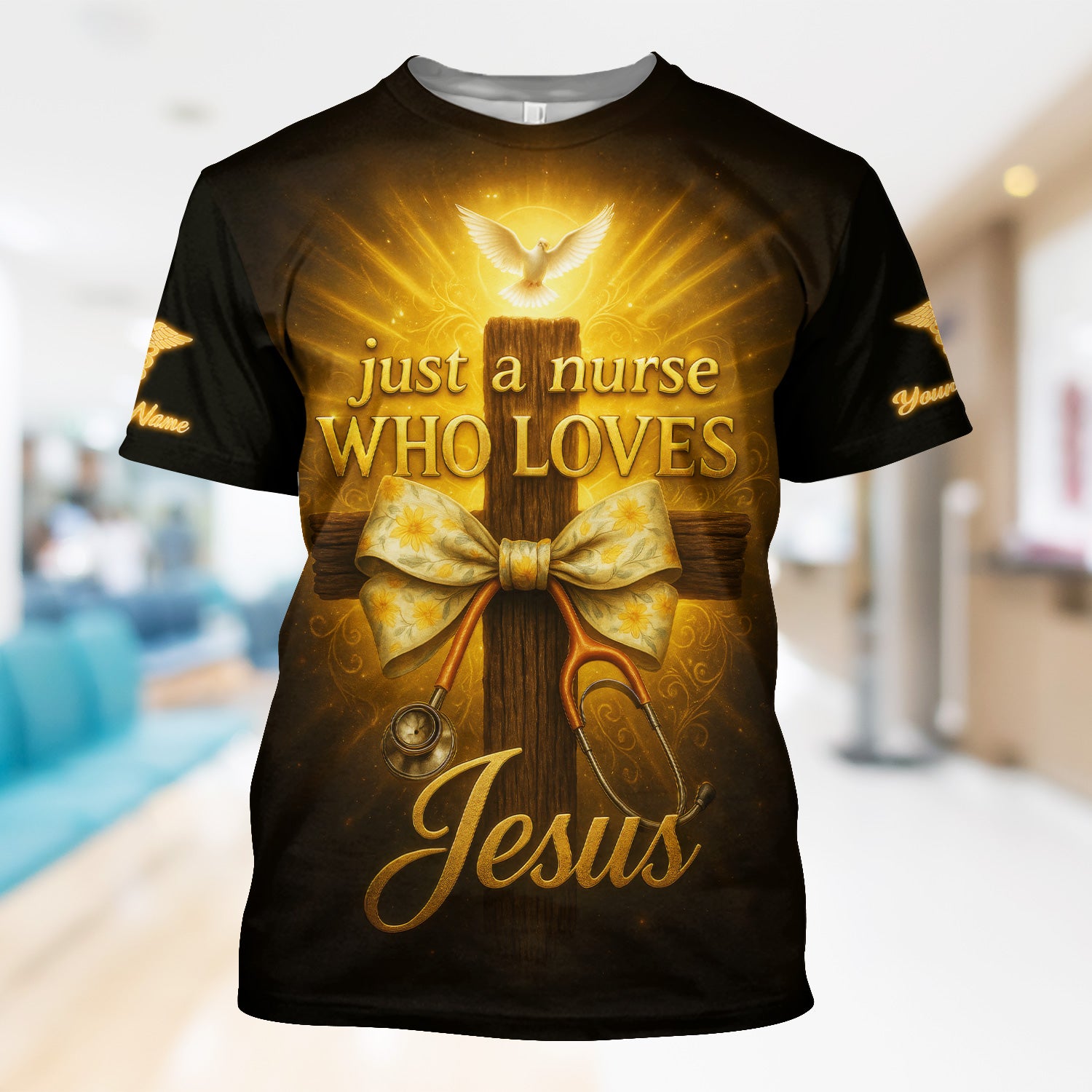 Christian Nurse Shirt Just a Nurse Who Loves Jesus - Faith Scrub Uniform Gift - Personalized Religious Tee for Women RN CNA