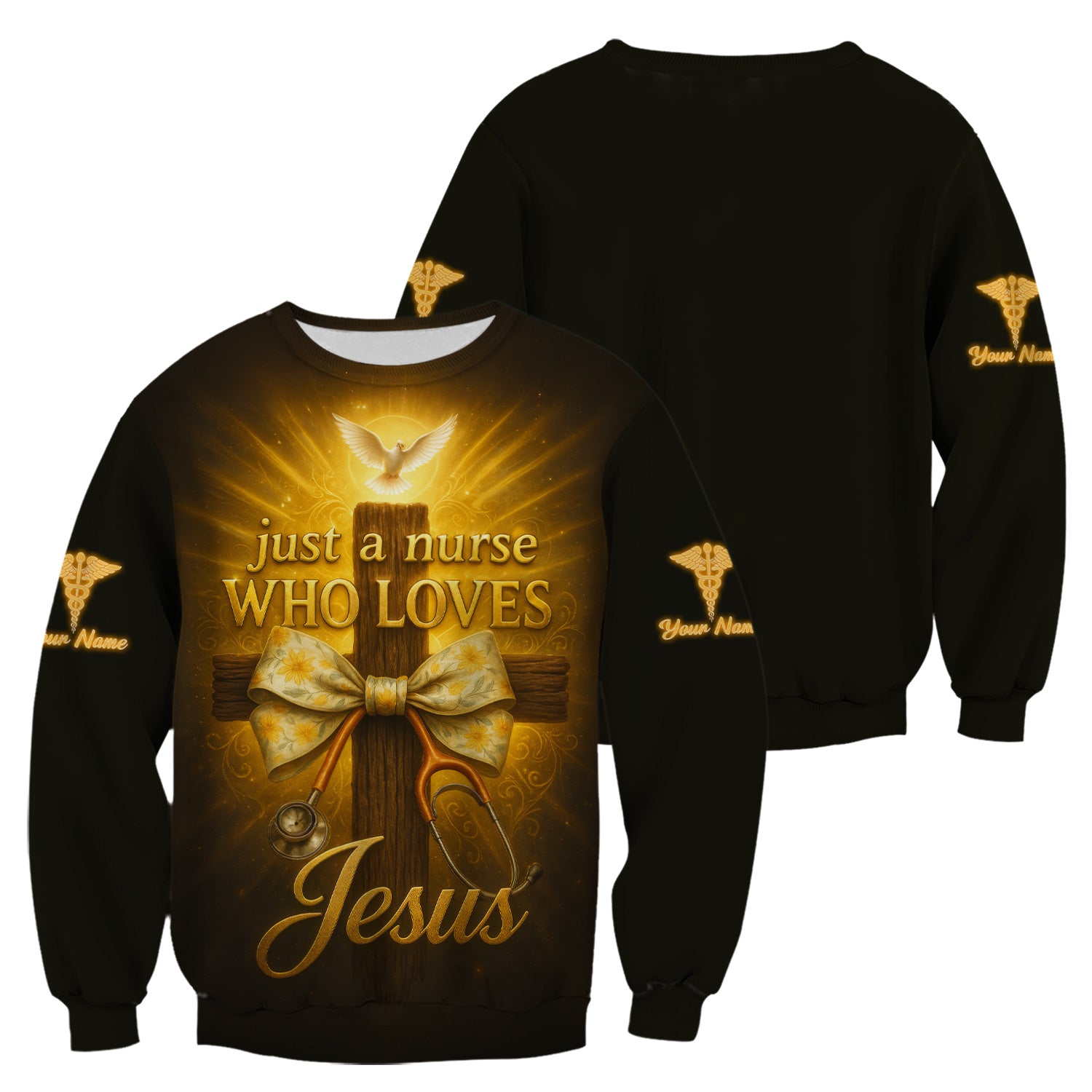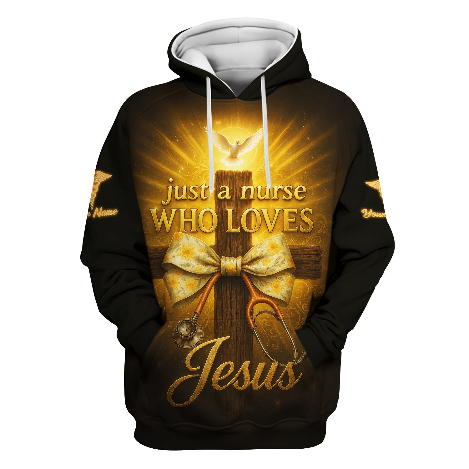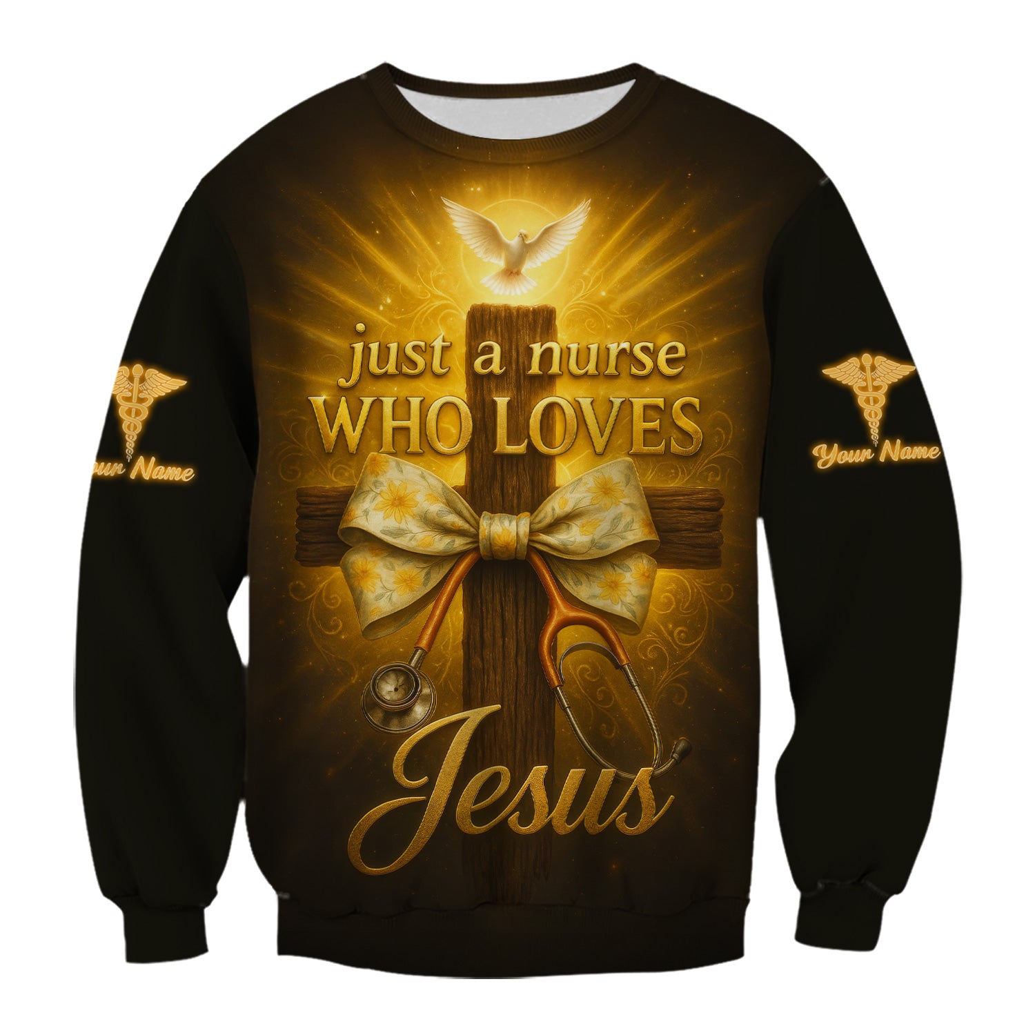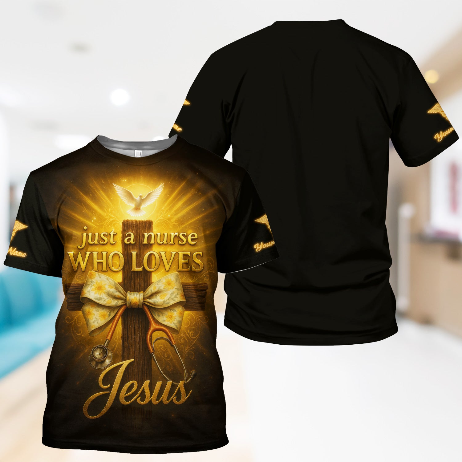Christian Nurse Shirt Just a Nurse Who Loves Jesus - Faith Scrub Uniform Gift - Personalized Religious Tee for Women RN CNA