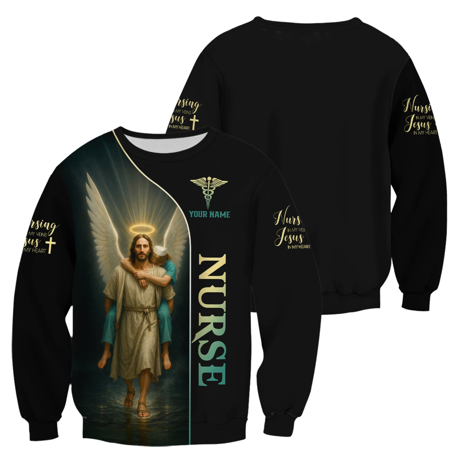 Christian Nurse T-Shirt - Personalized Jesus Angel Wings Graphic - Religious Gift for RN LPN Healthcare Workers