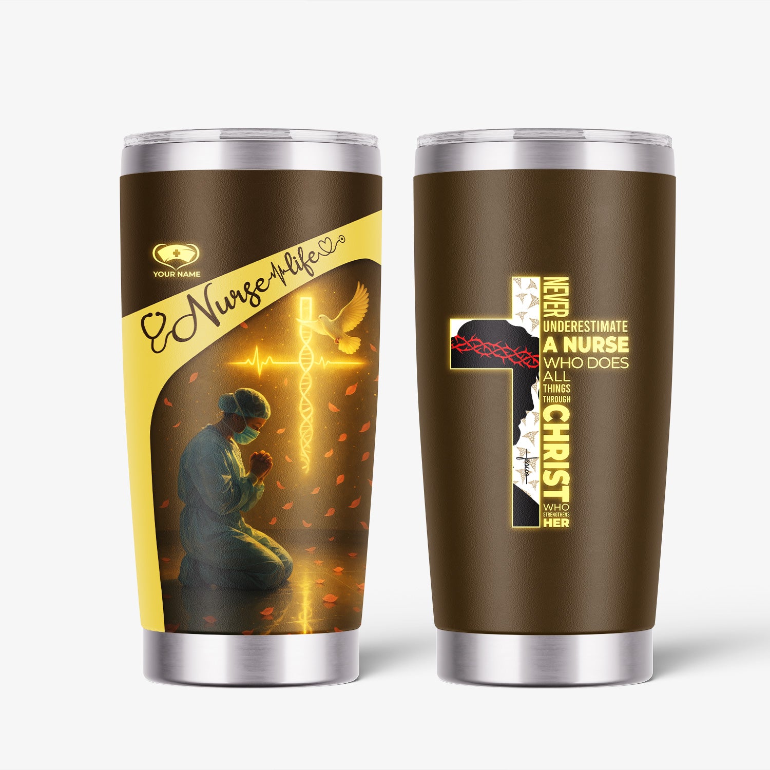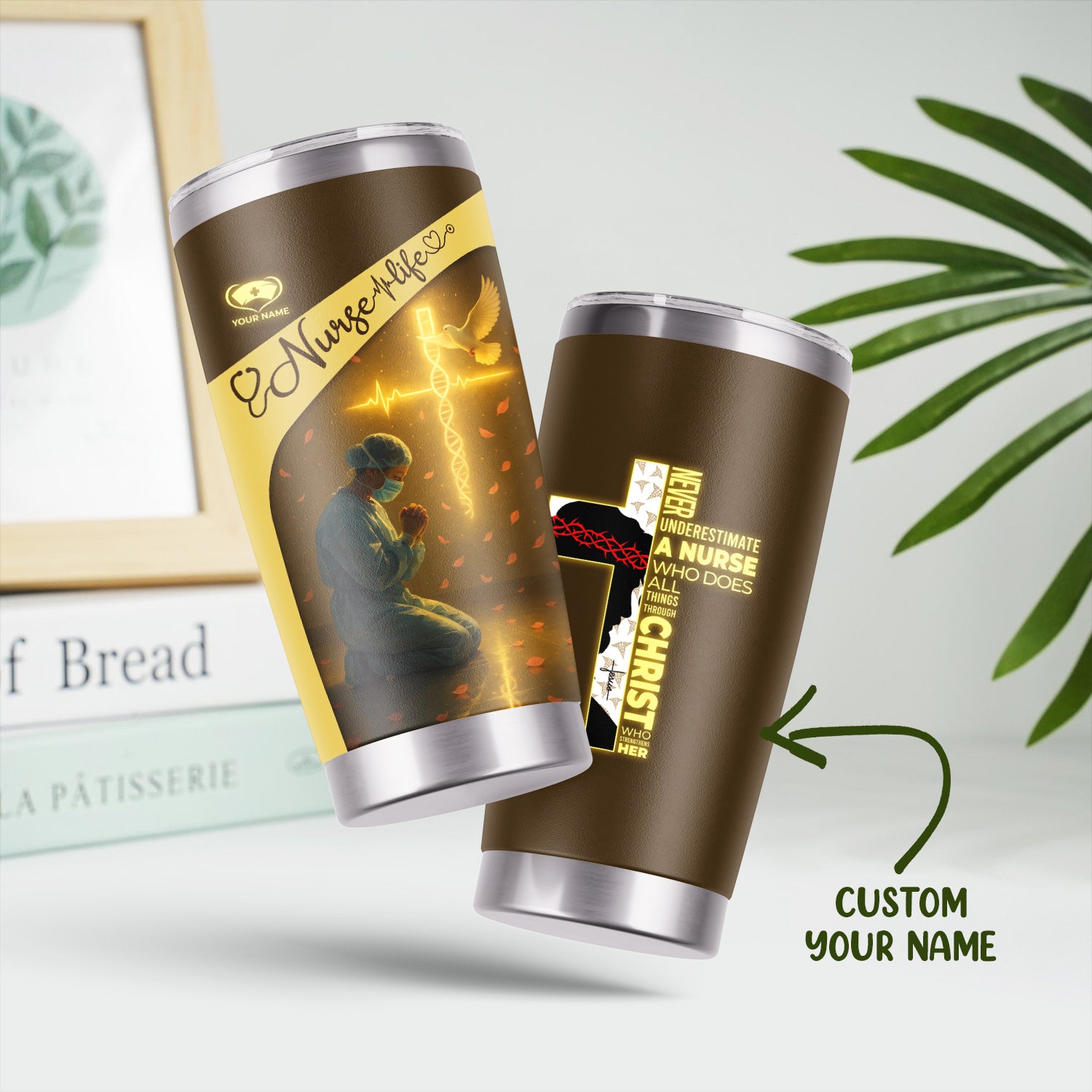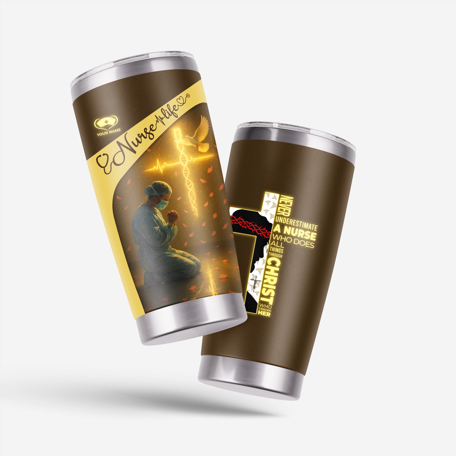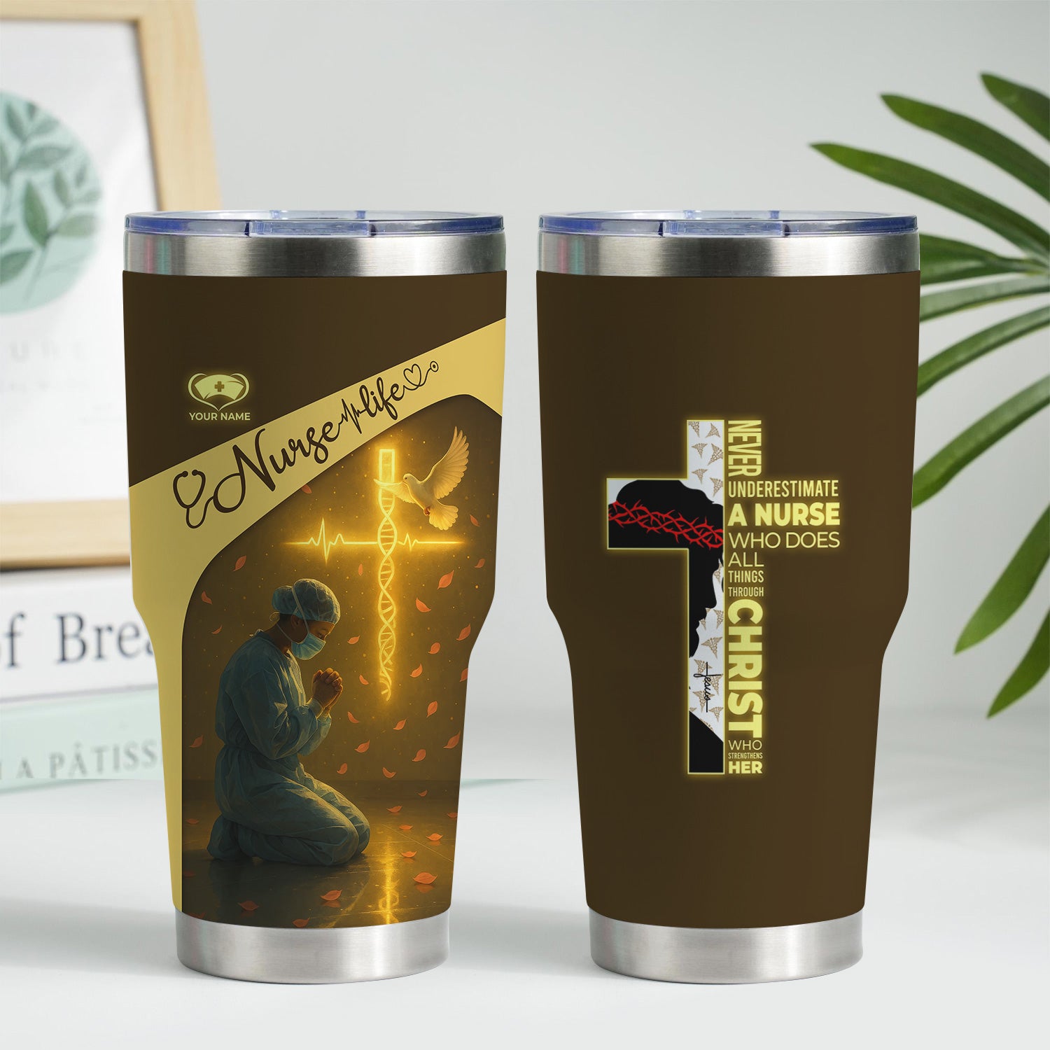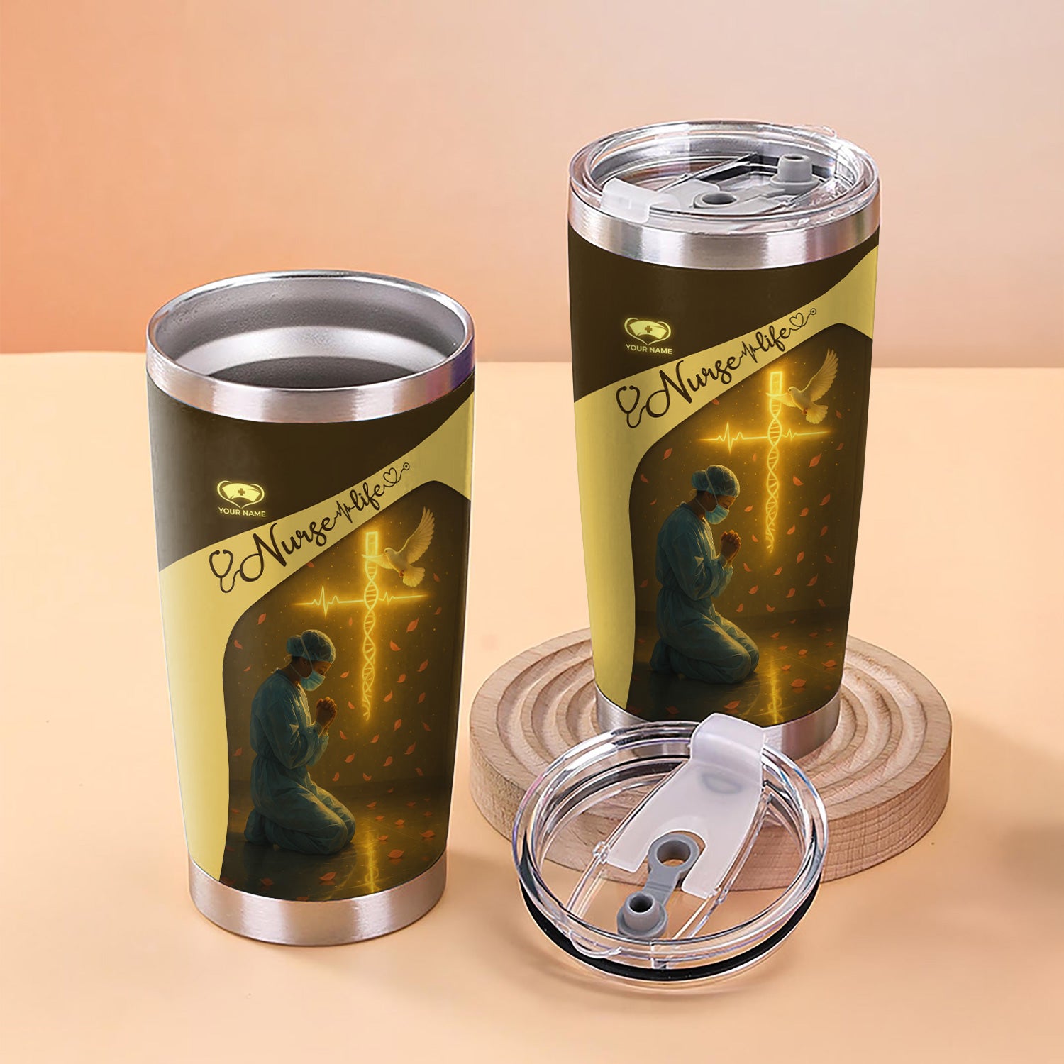 Christian Nurse Tumbler for RN LPN CNA - Personalized Prayer Design with Dove and Cross - Inspirational Gift for Women in Healthcare