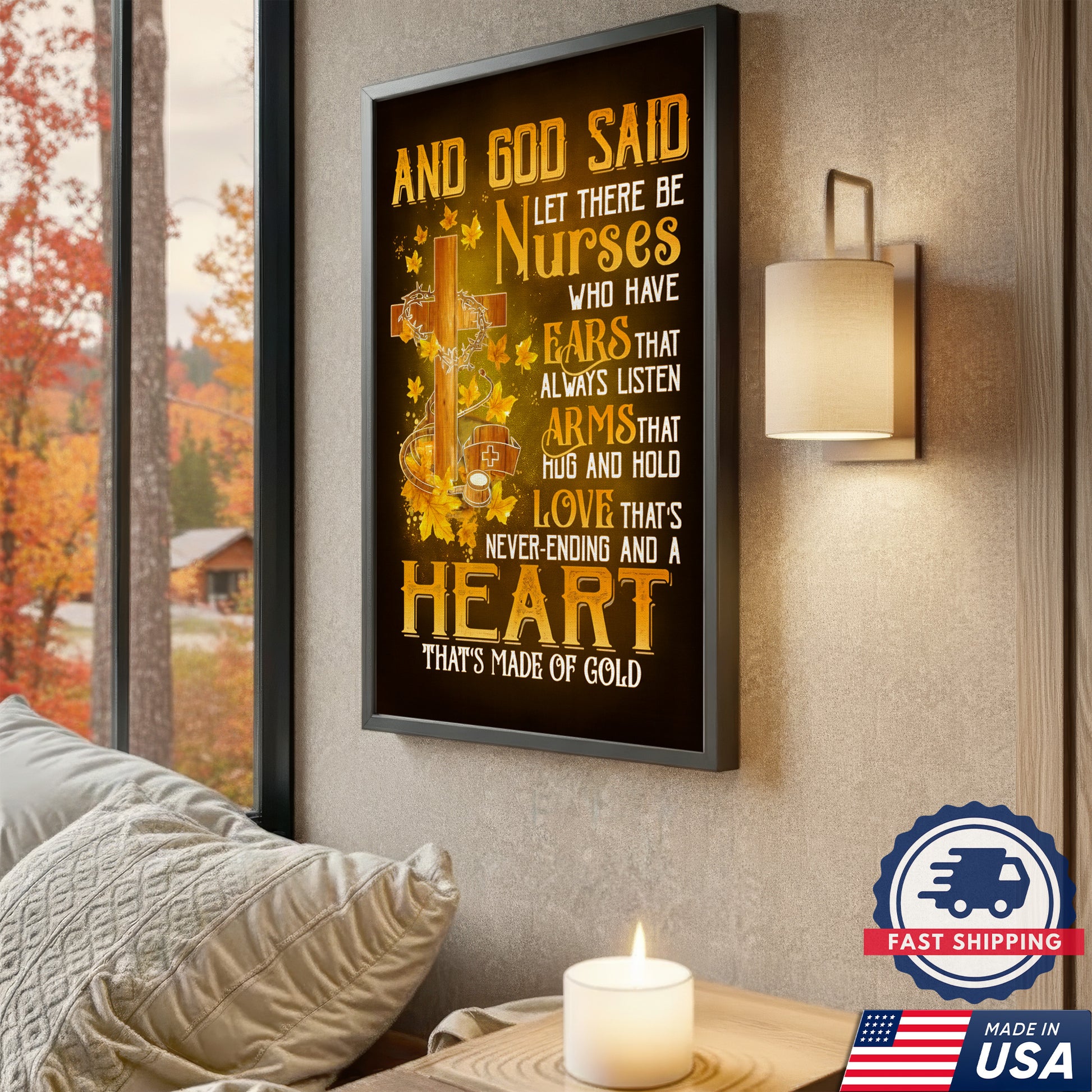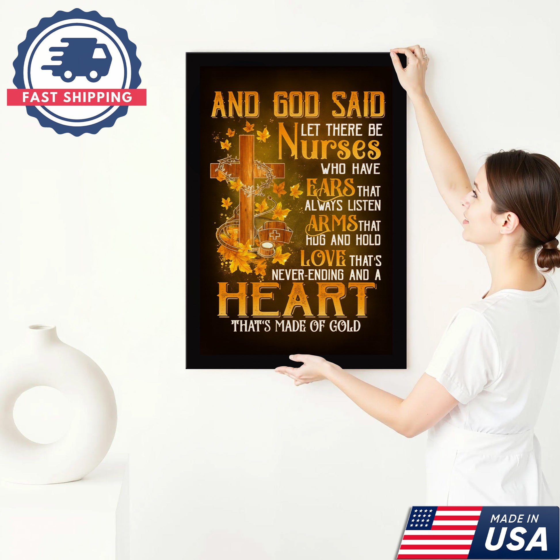 Christian Nurse Wall Art Canvas, And God Said Let There Be Nurses Quote, Gift for RN CNA LPN
