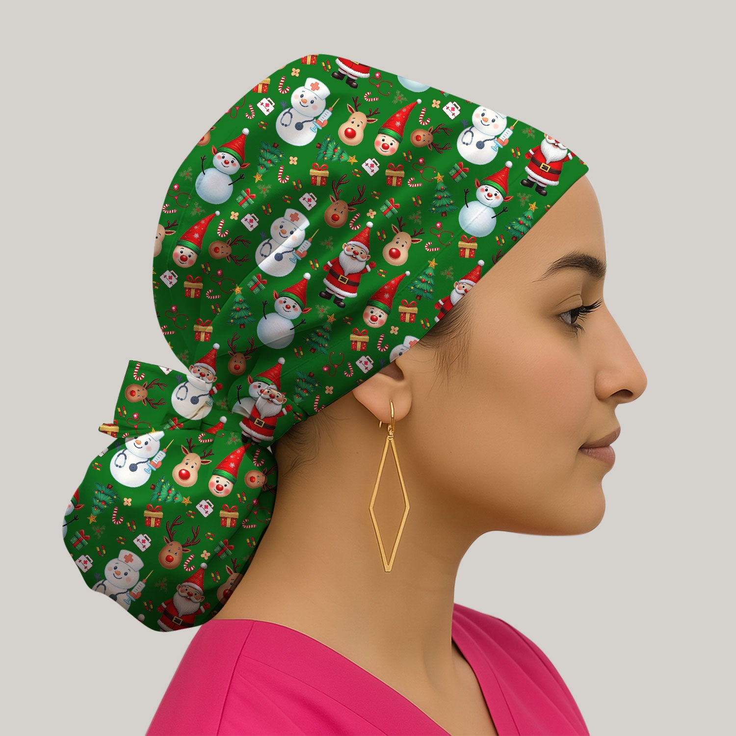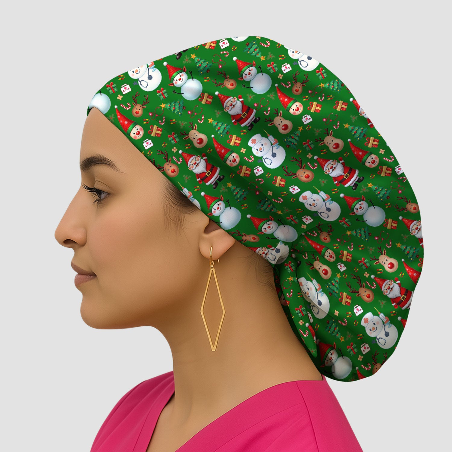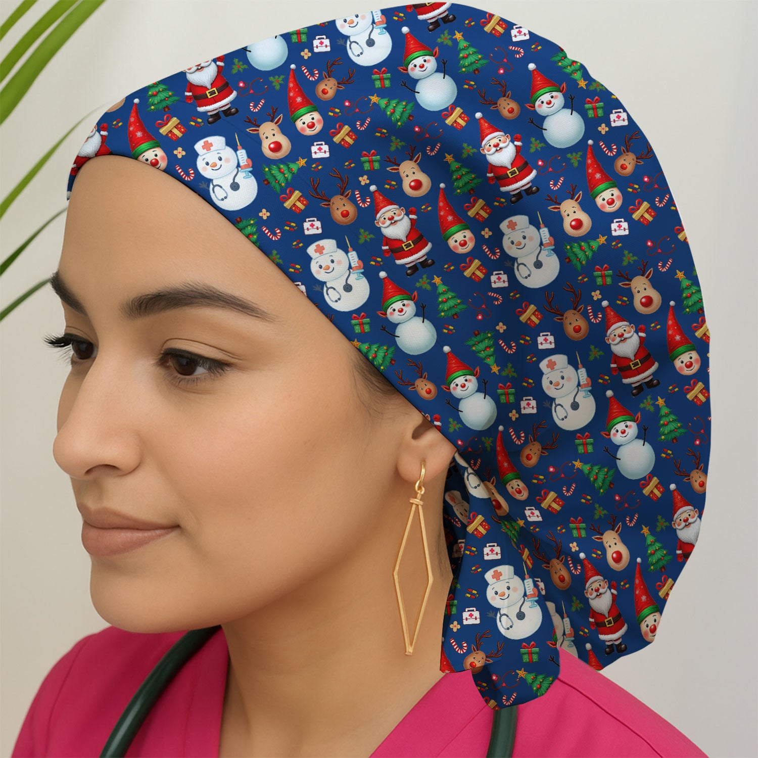 Christmas Bouffant Scrub Caps for Women - Cute Snowman Reindeer Santa Surgical Caps for Doctors - Breathable Fabrics Caps Uniform