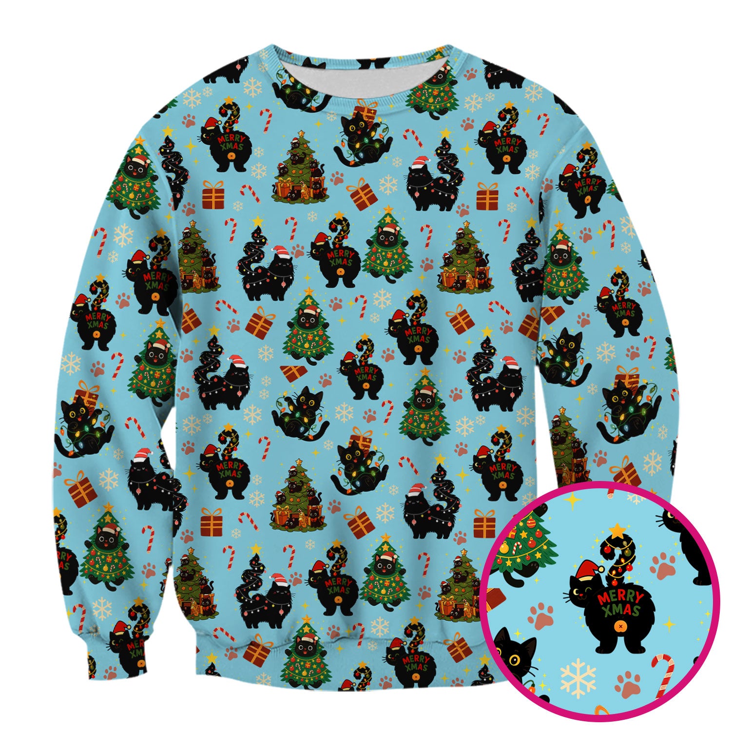 Christmas Cat Nurse Scrub Top - Funny Black Cat Print Medical Shirt for Women & Men - Cute Holiday Scrubs Gift for RN CNA Doctor