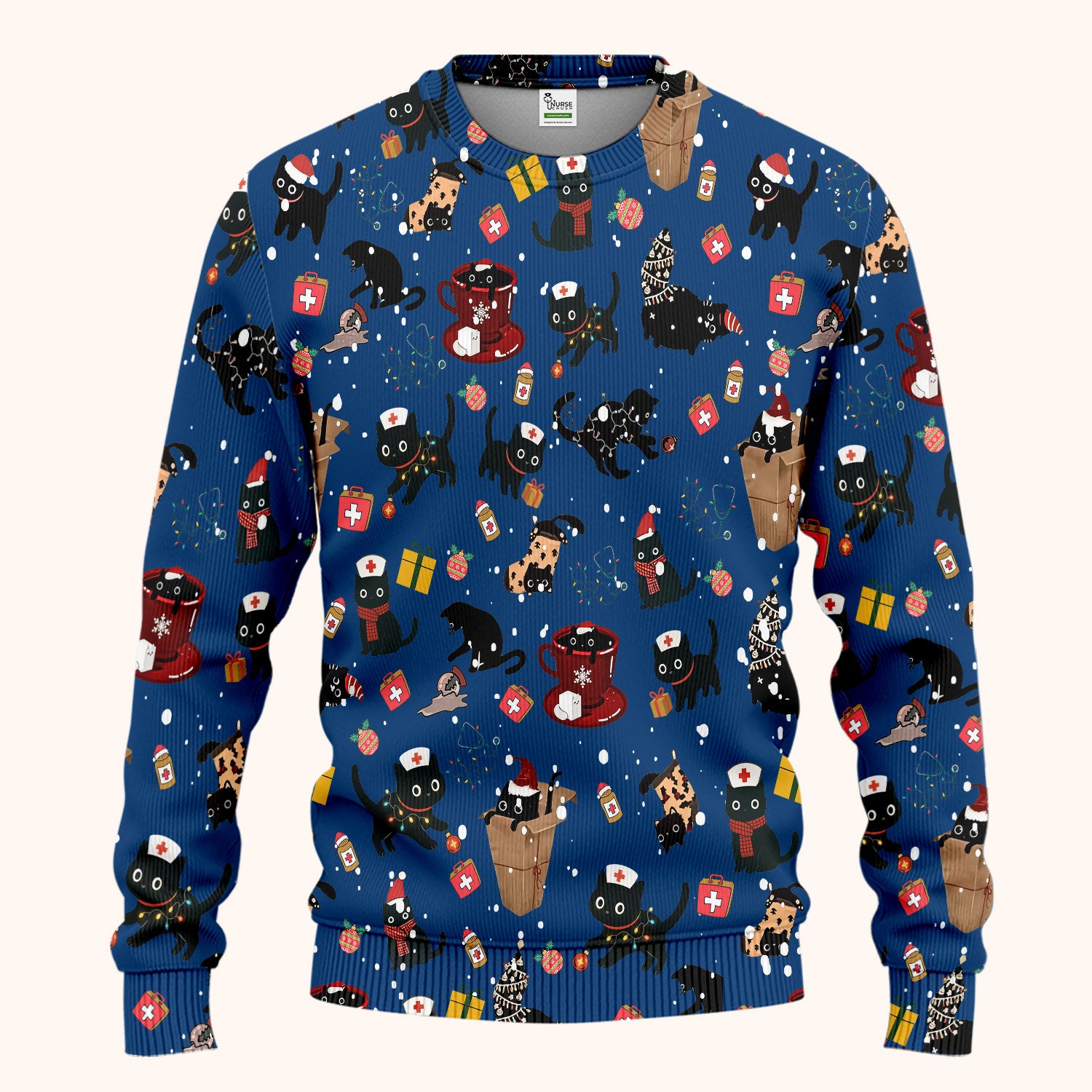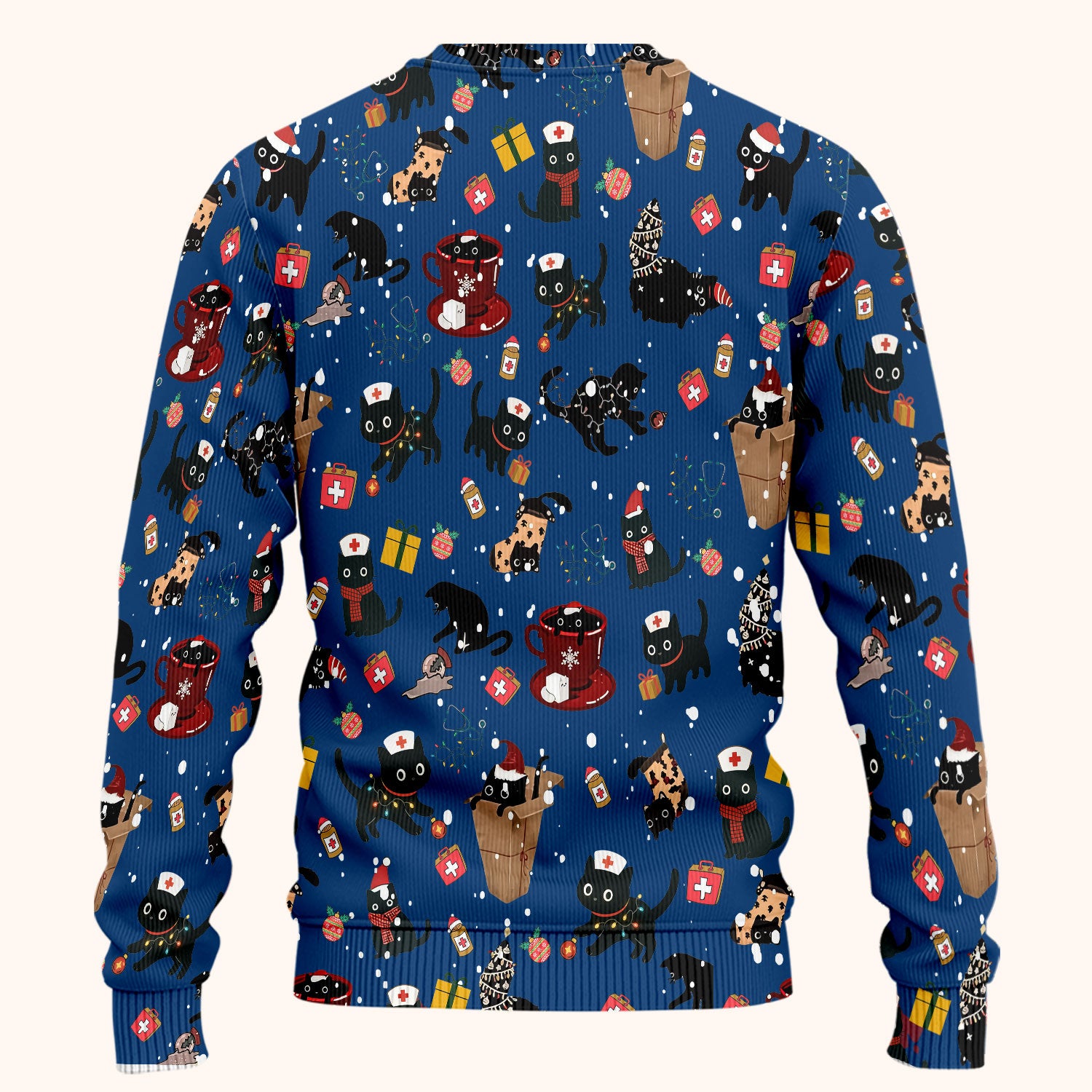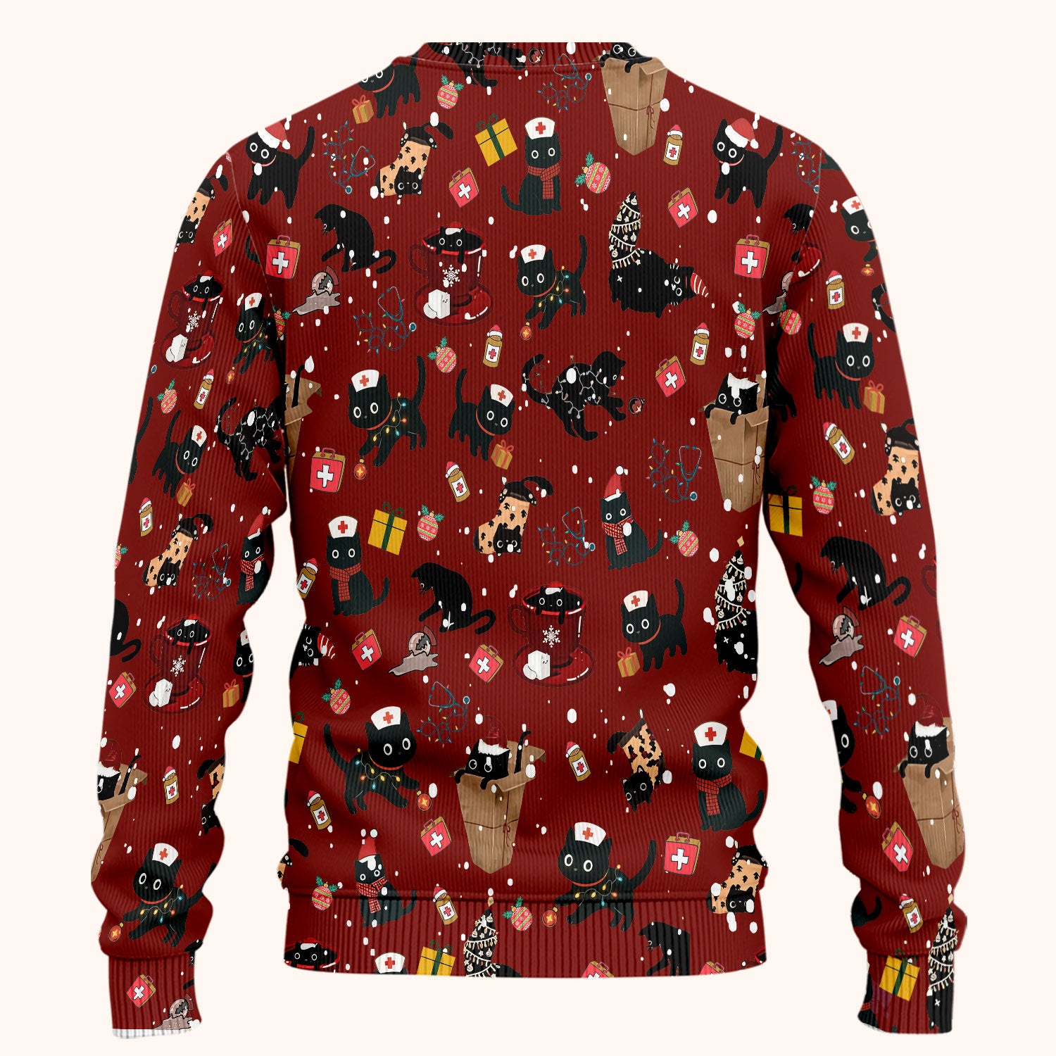 Christmas Cat Scrub Set for Nurse - Funny Black Cats Scrubs Pants and V Neck Top - Cute Holiday Medical Uniform for Women