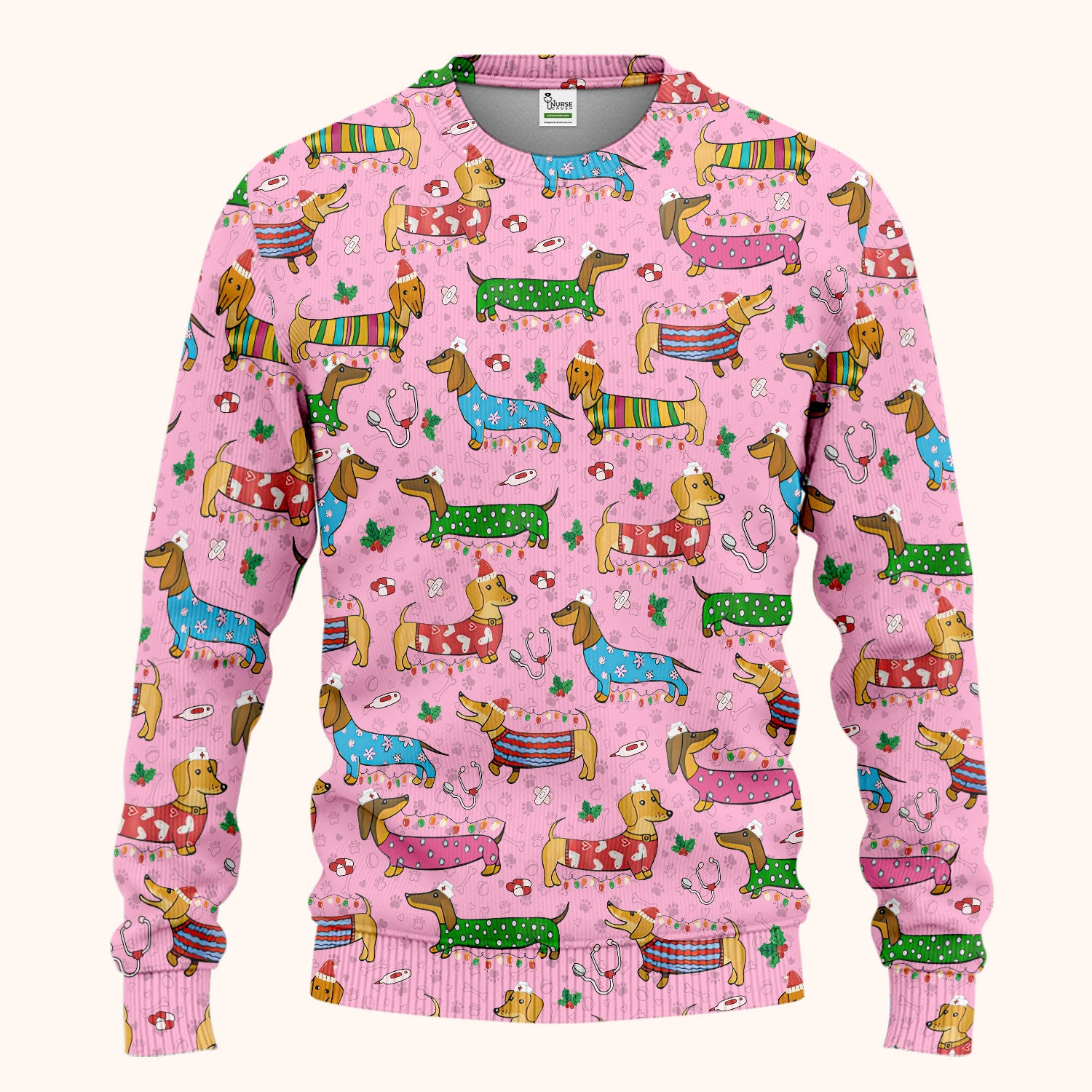 Christmas Dachshund Scrub Set for Nurses - Cute Wiener Dog in Holiday Outfit - Funny Medical Uniform Gift for Women RN LPN CNA