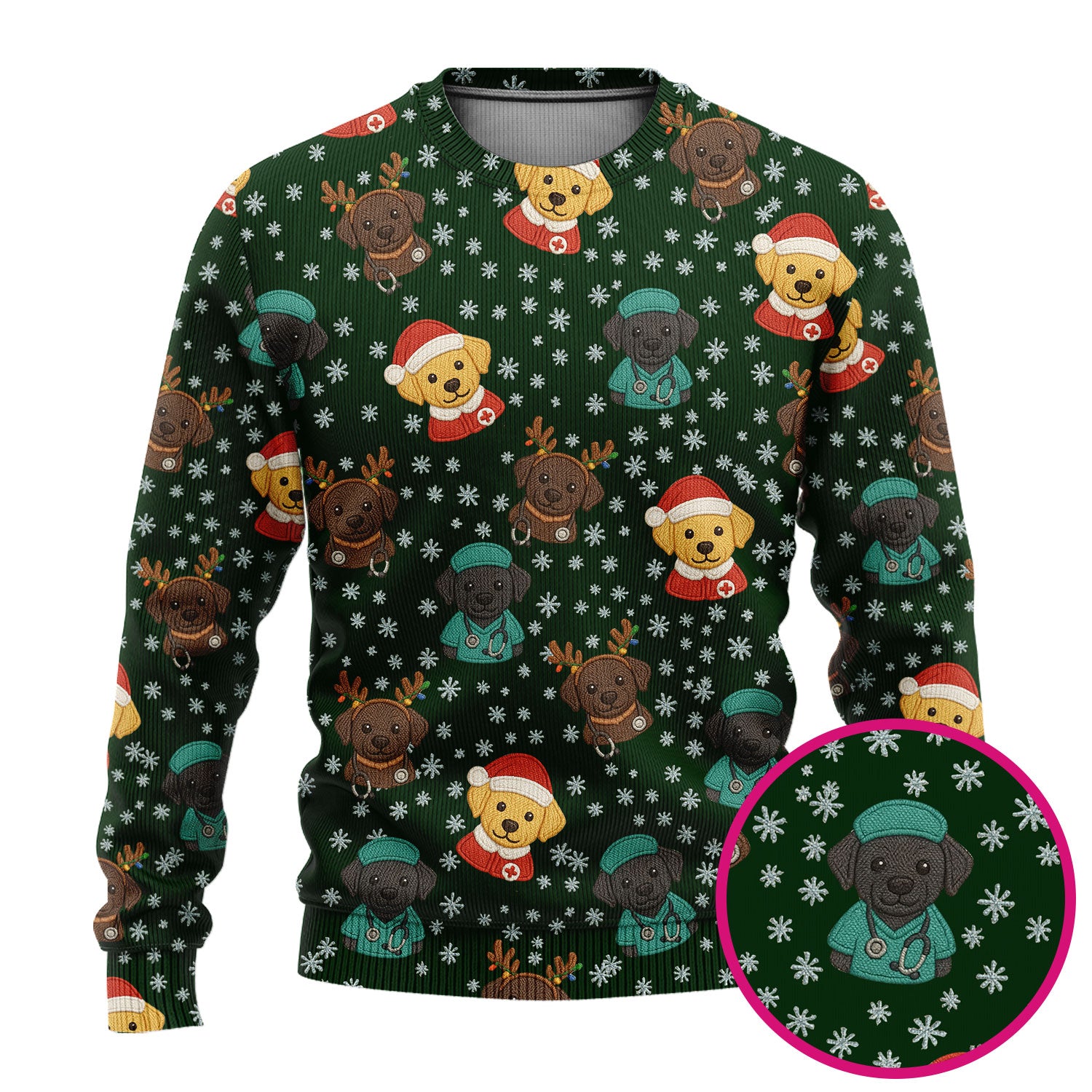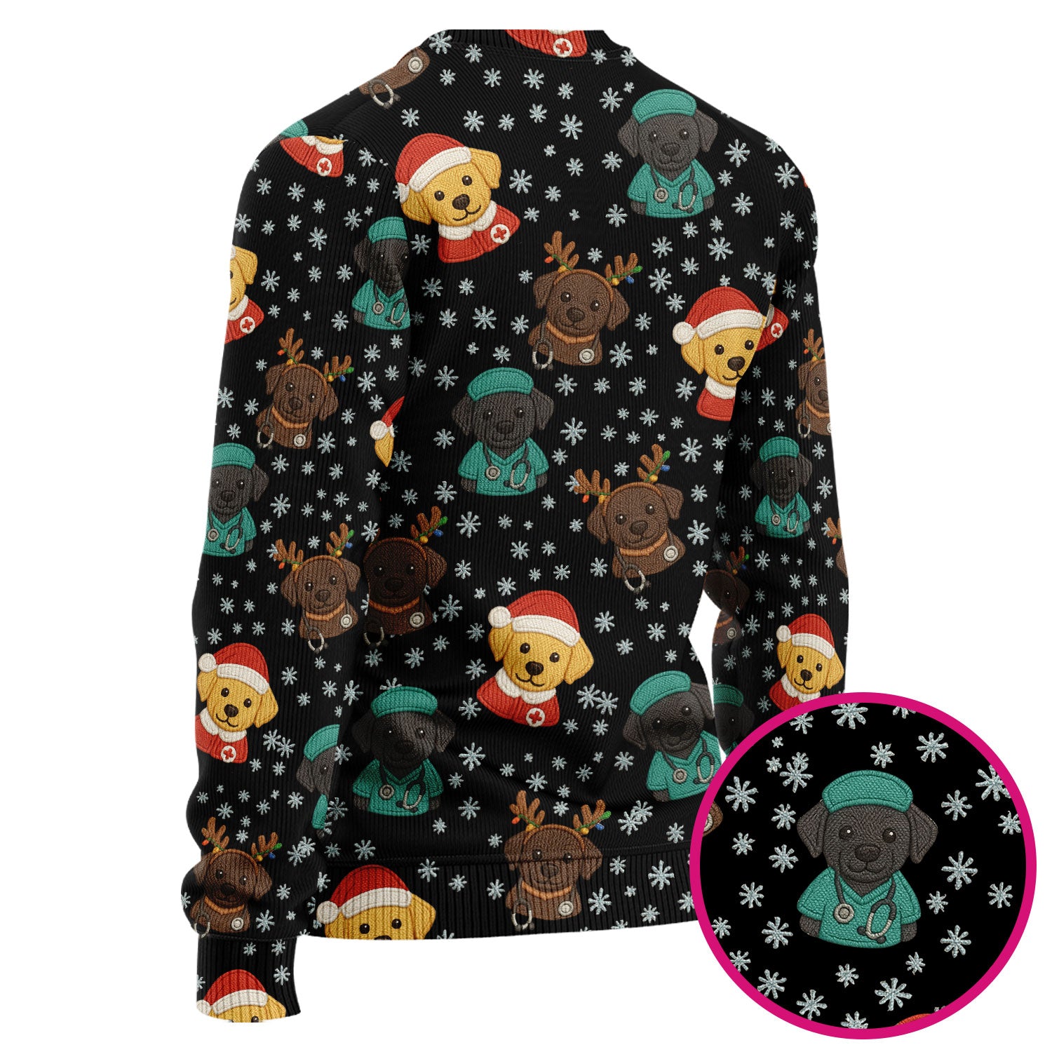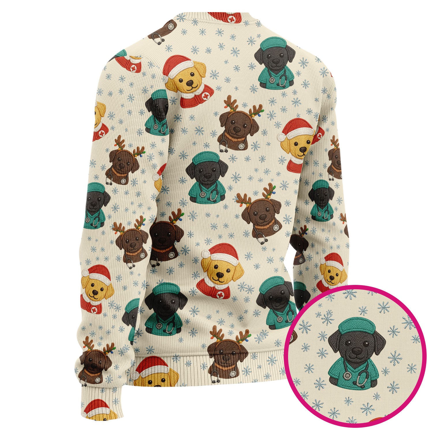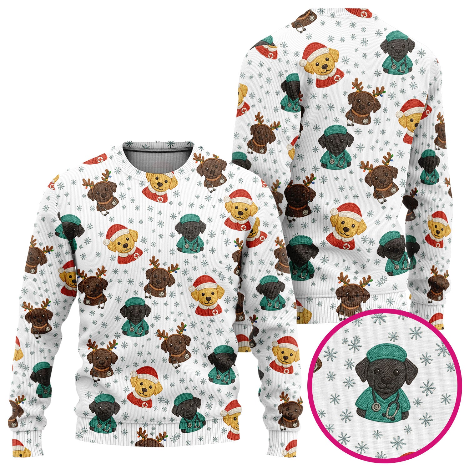Christmas Dog Pattern Ugly Sweater, Cute Puppy Nurse Sweater, Holiday Nursing Uniform