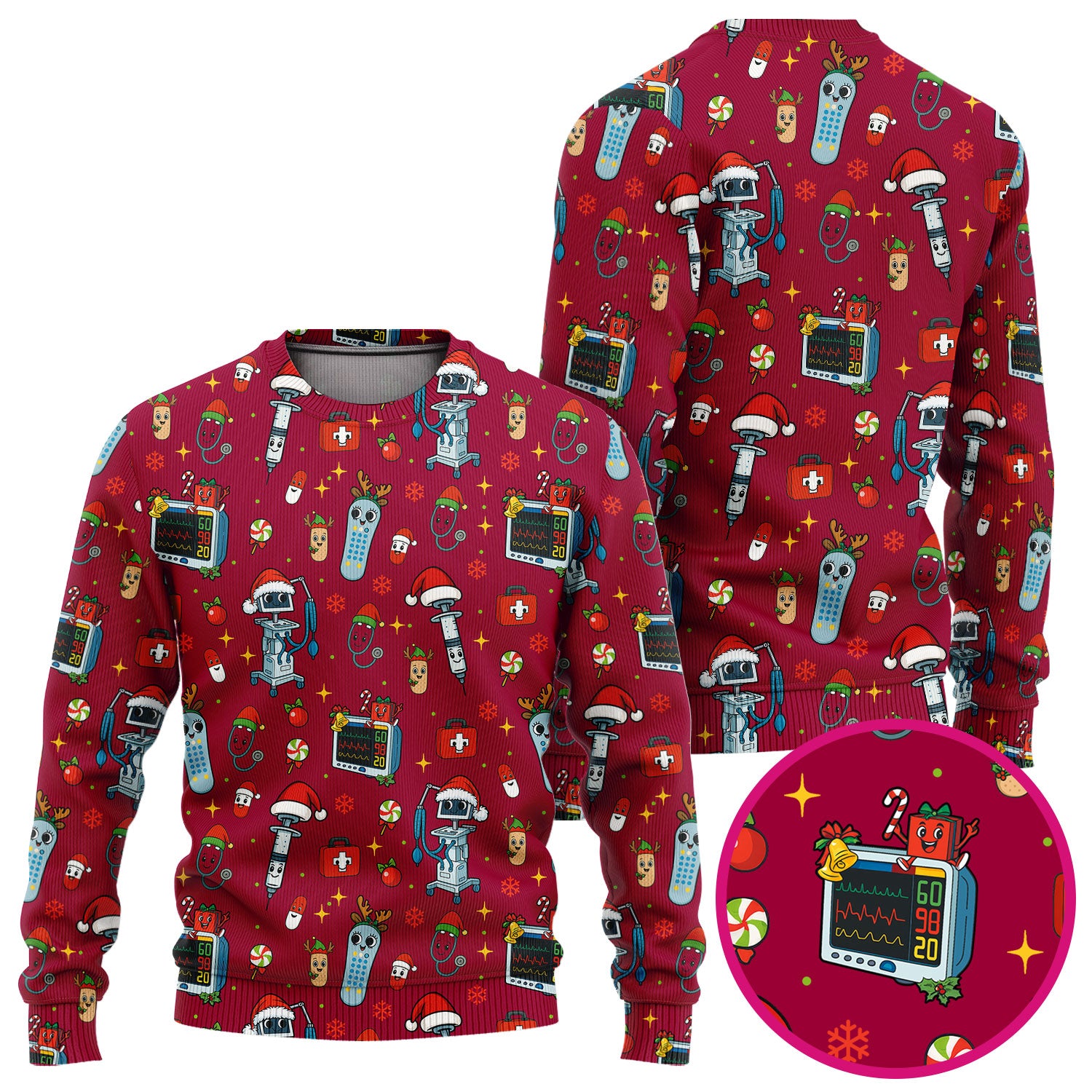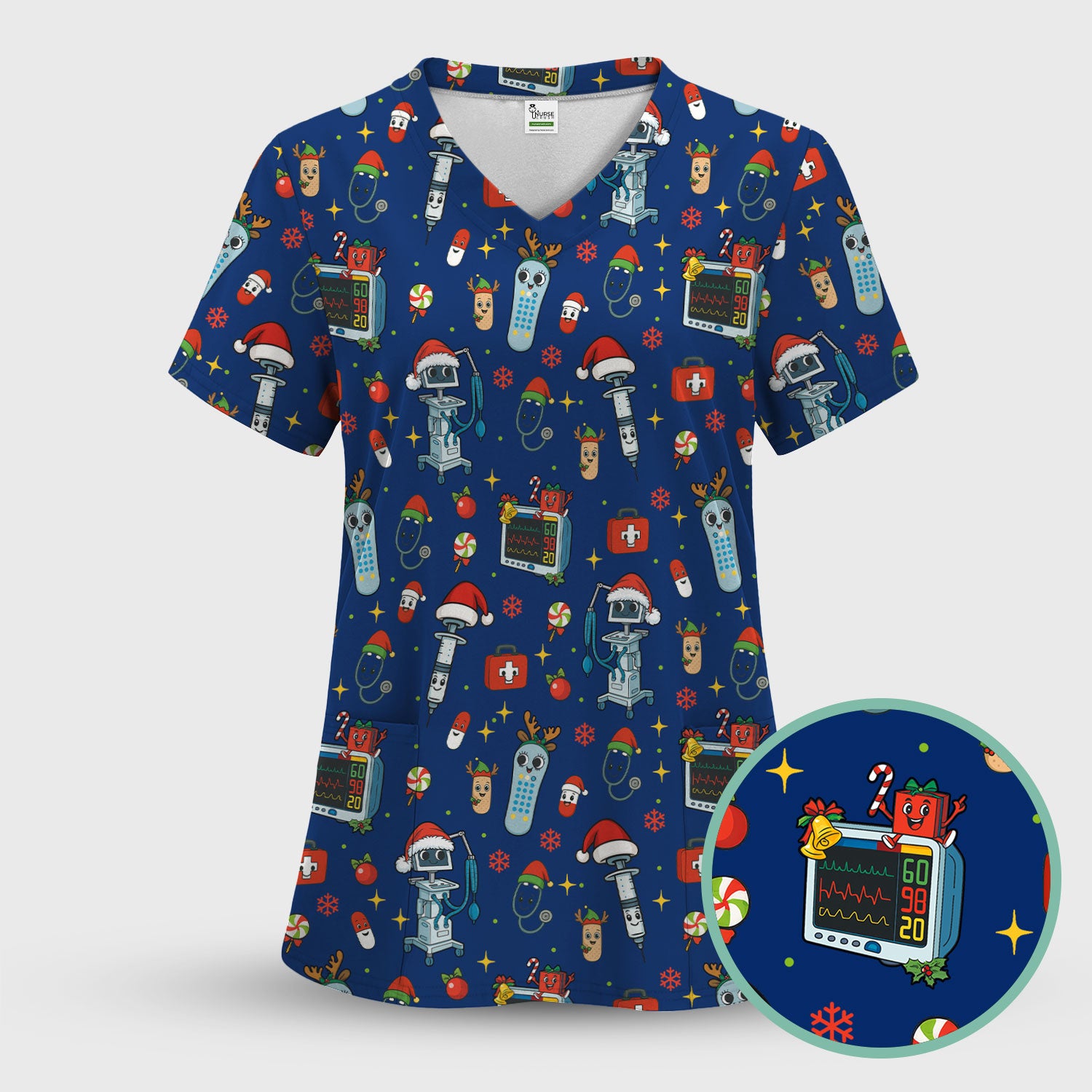 Christmas Nurse Scrub Set - Funny Robot and Reindeer Pattern Medical Scrubs - Cute Holiday Matching Set for Women Nurses