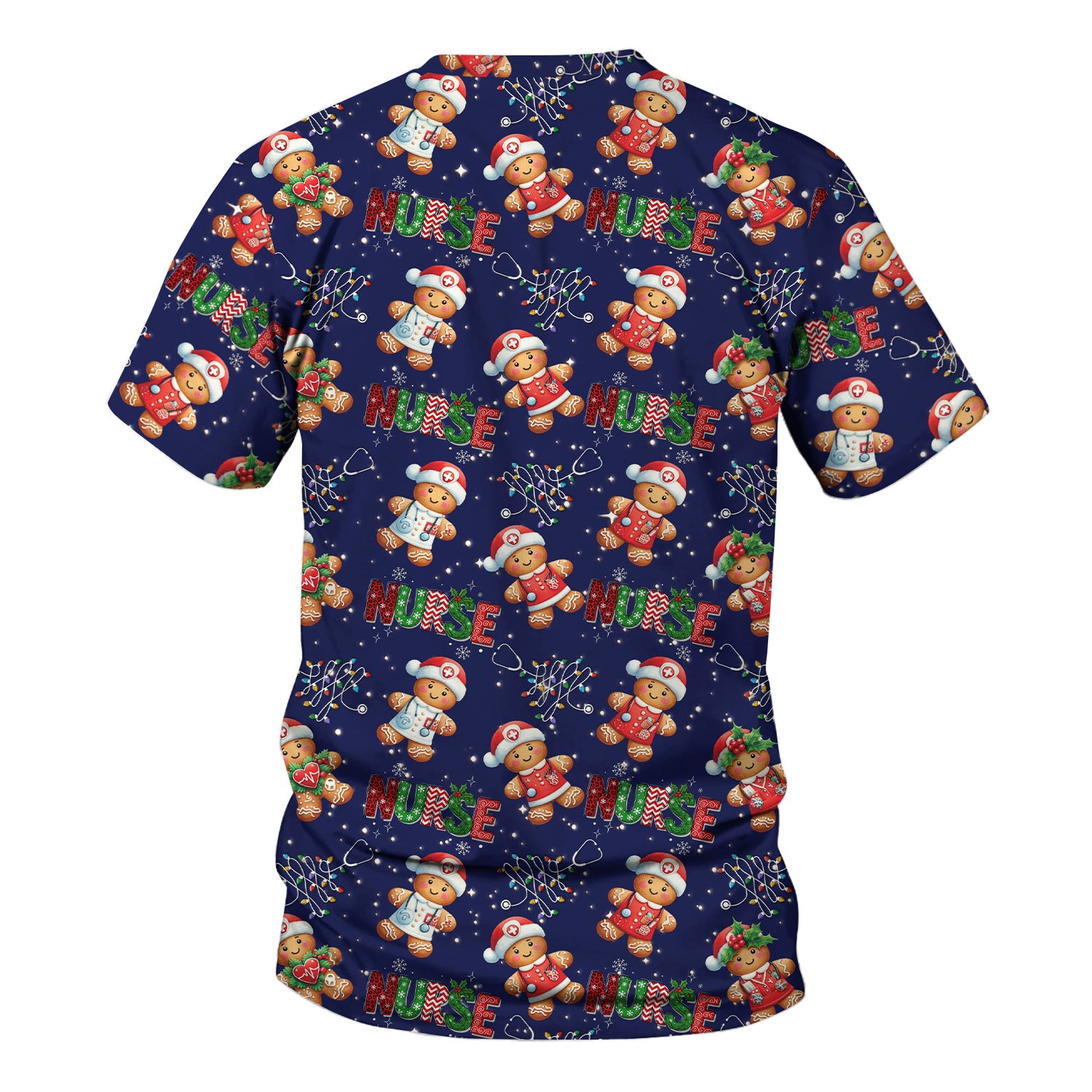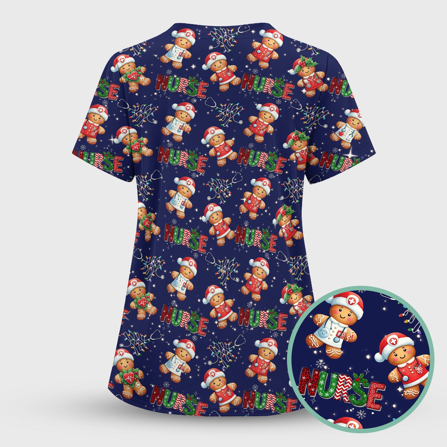 Christmas Nurse Scrub Top - Funny Gingerbread Holiday Medical Uniform - Gift for Nurse RN CNA LPN
