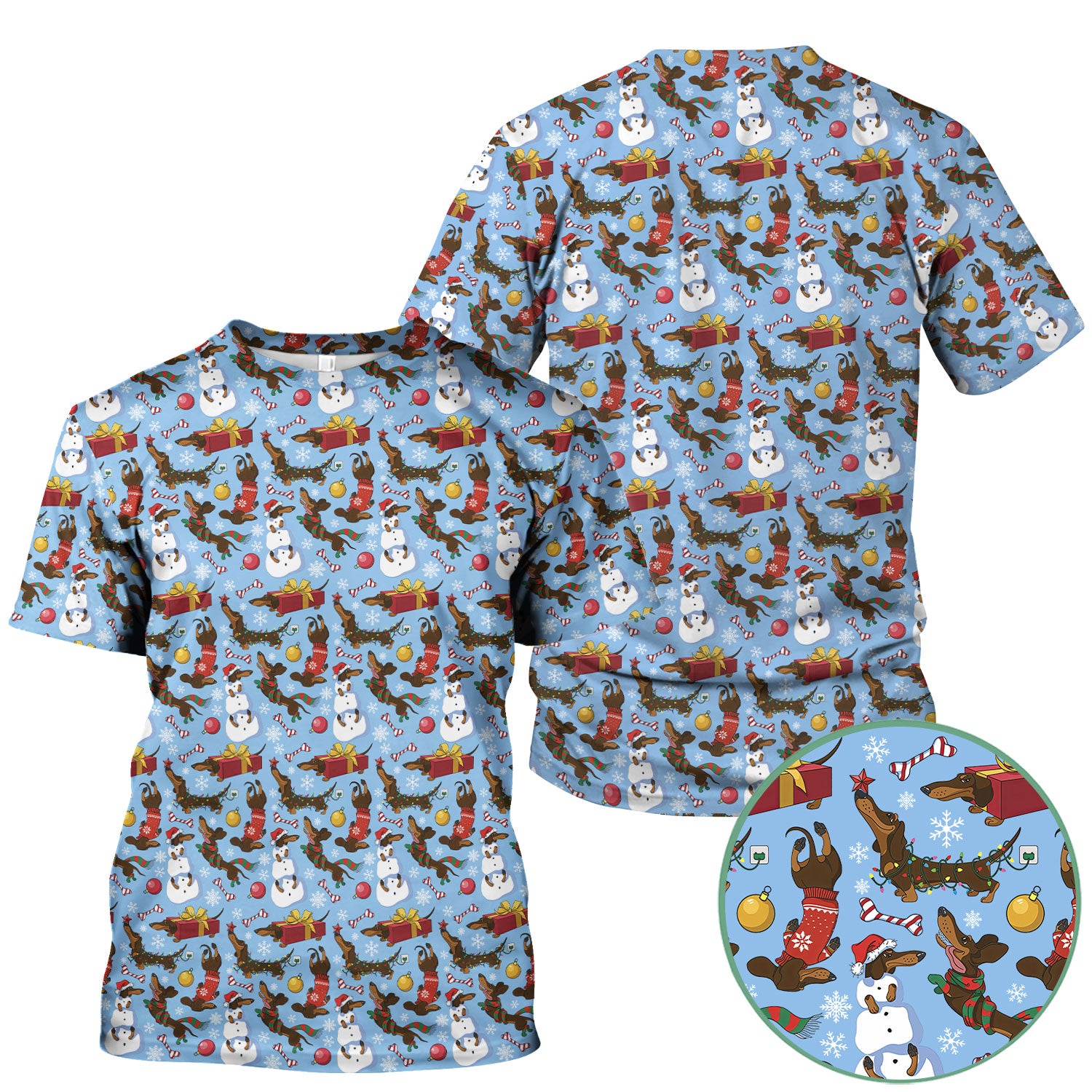 Christmas Nurse Scrubs for Women - Dachshund Dog & Snowman Print - Custom Multi Color Nursing Shirt Holiday Gift