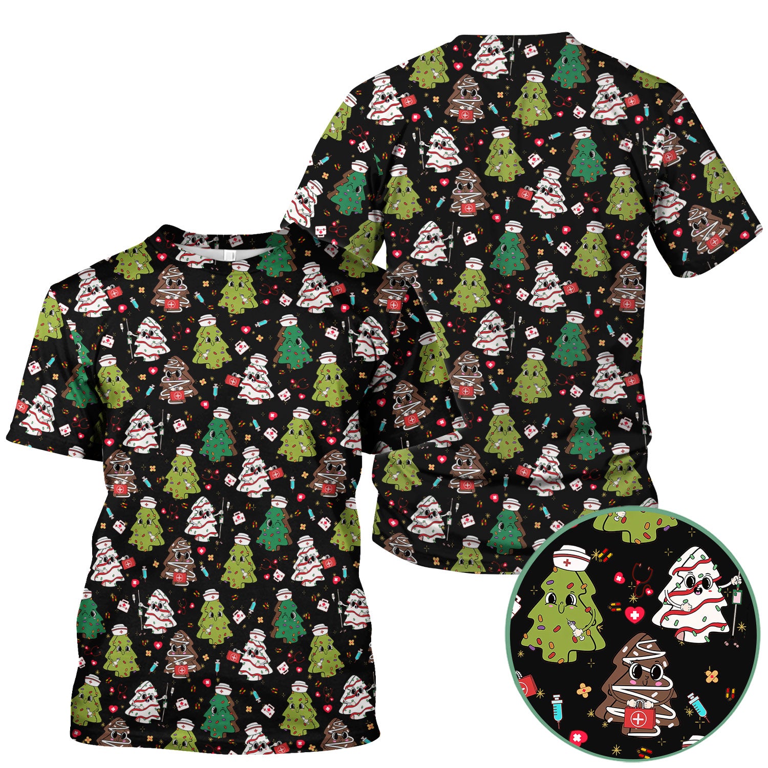 Christmas Nursing Scrub Top for Women - Festive Tree Medical Shirt - Cute Holiday RN CNA LPN Gift