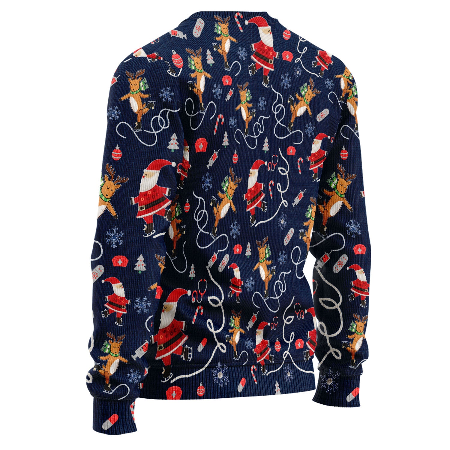Christmas Reindeer Santa Nurse Ugly Sweater, Cute Holiday Medical Uniform Sweater for Women