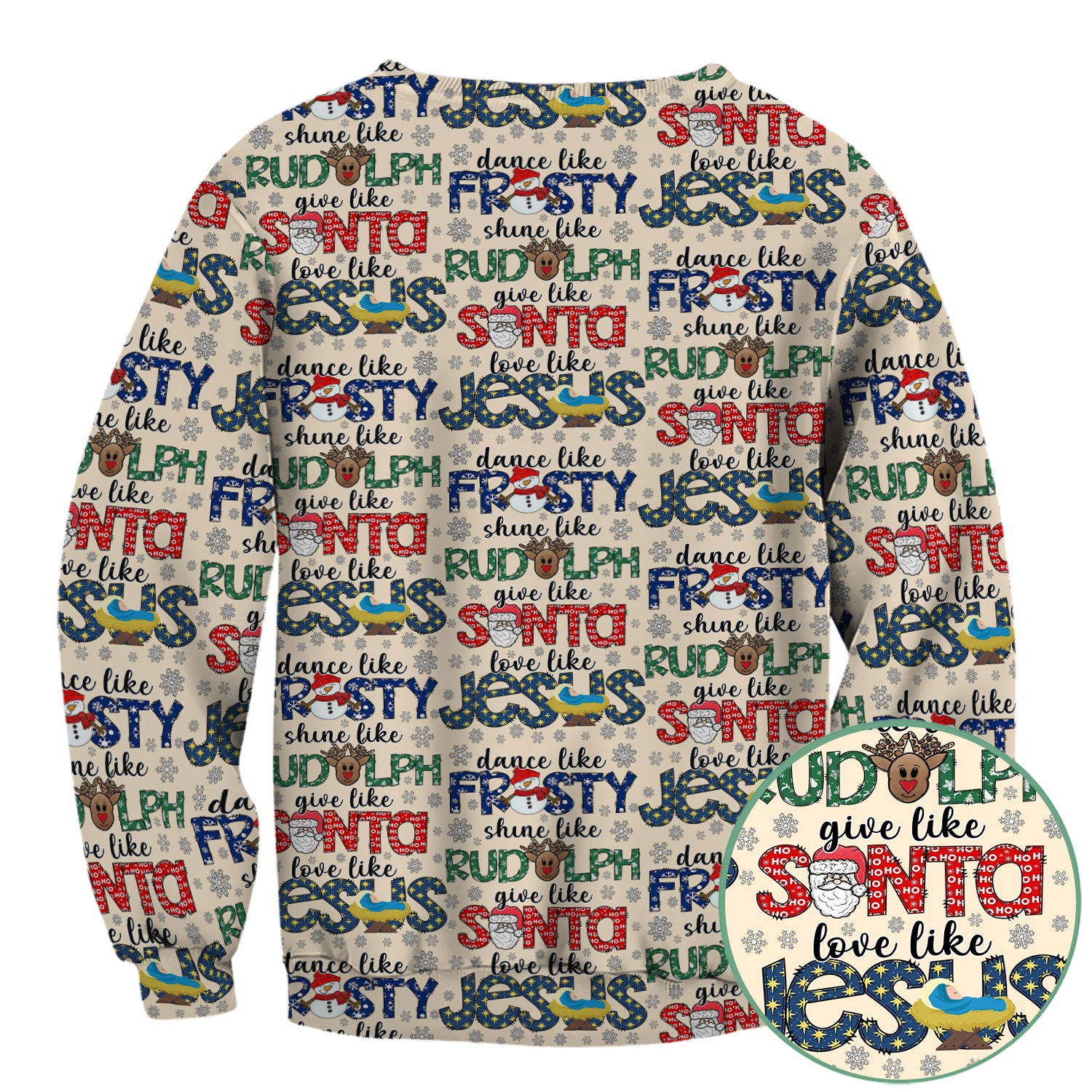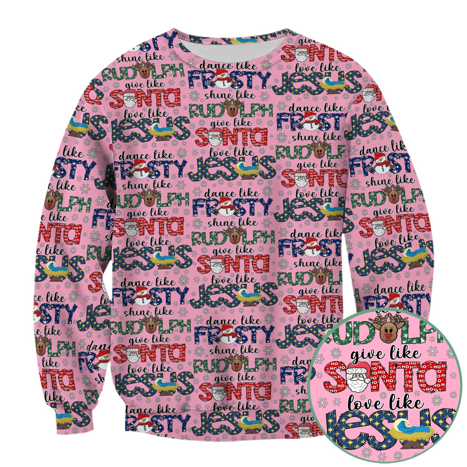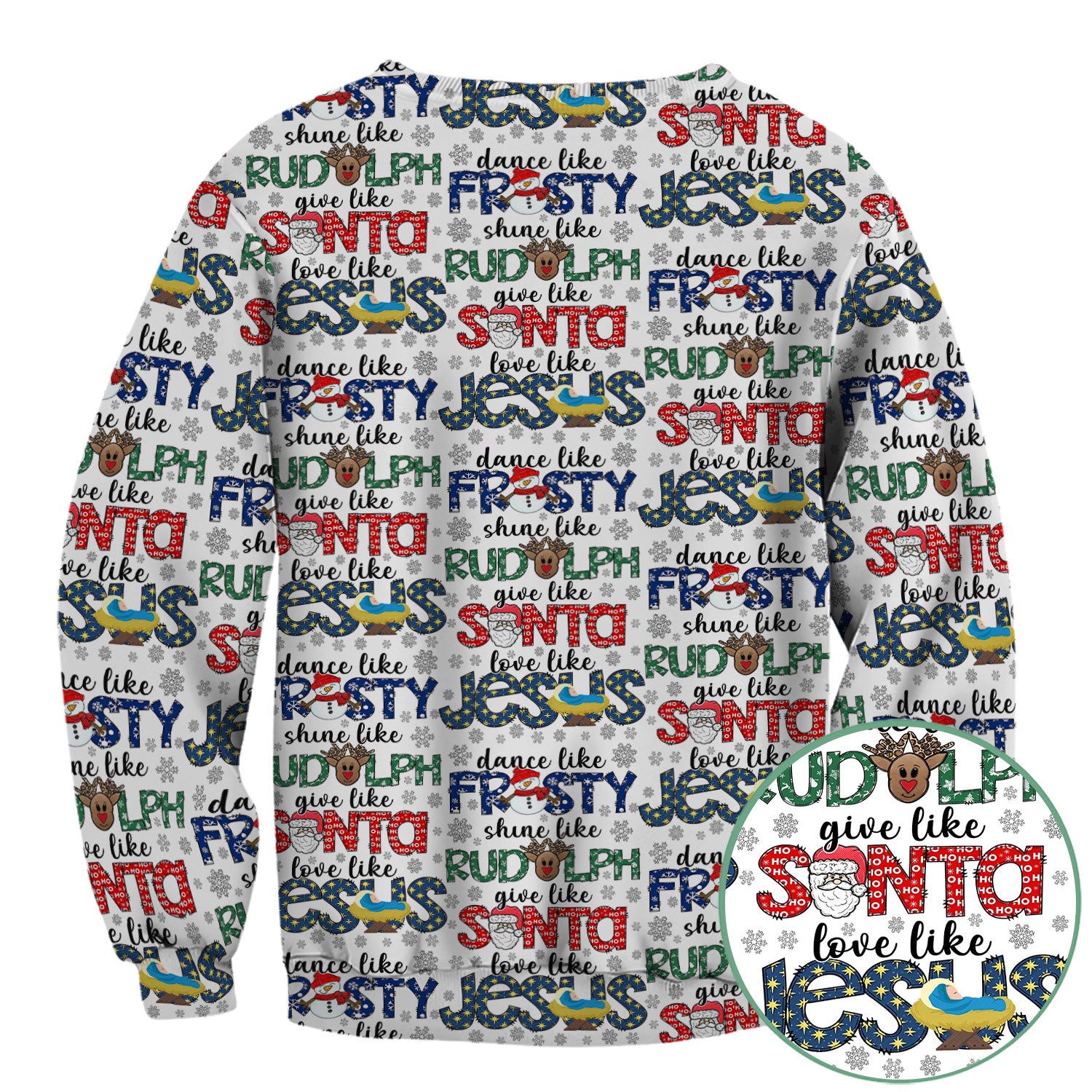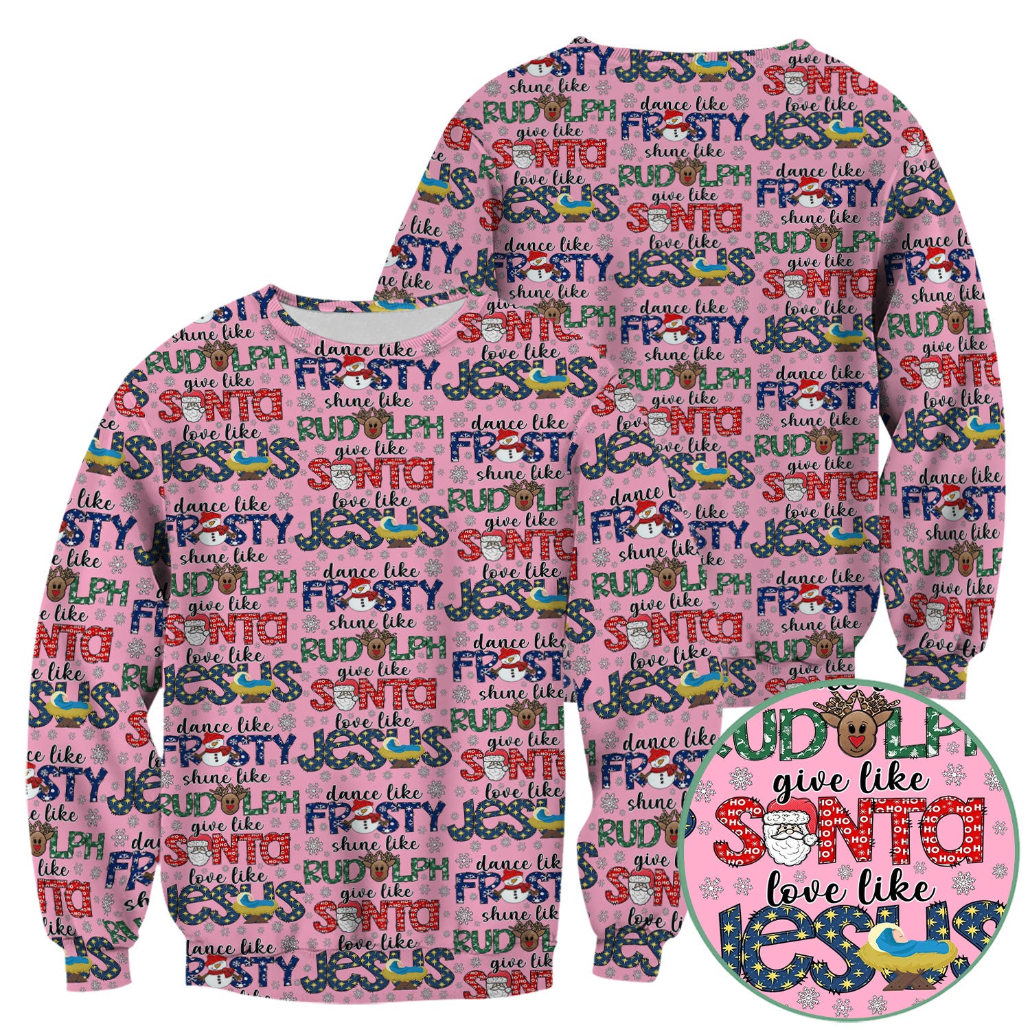 Christmas Rudolph Nurse Scrub Top for Women - Dance Like Frosty Shine Like Rudolph Give Like Santa Love Like Jesus - Holiday Med Shirt