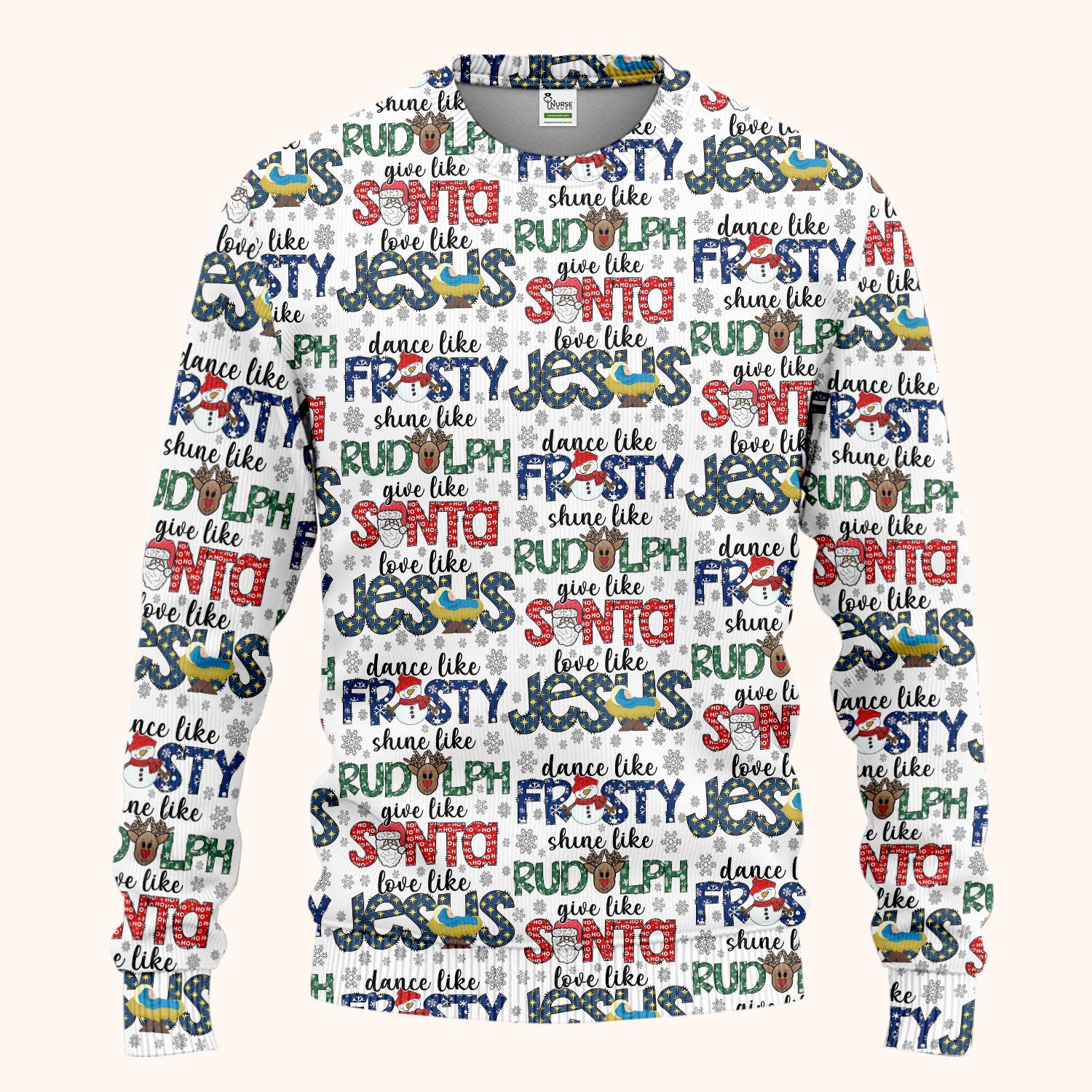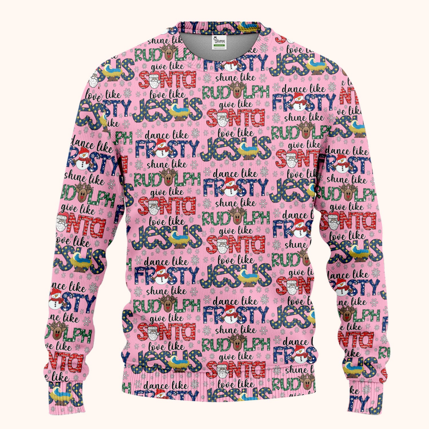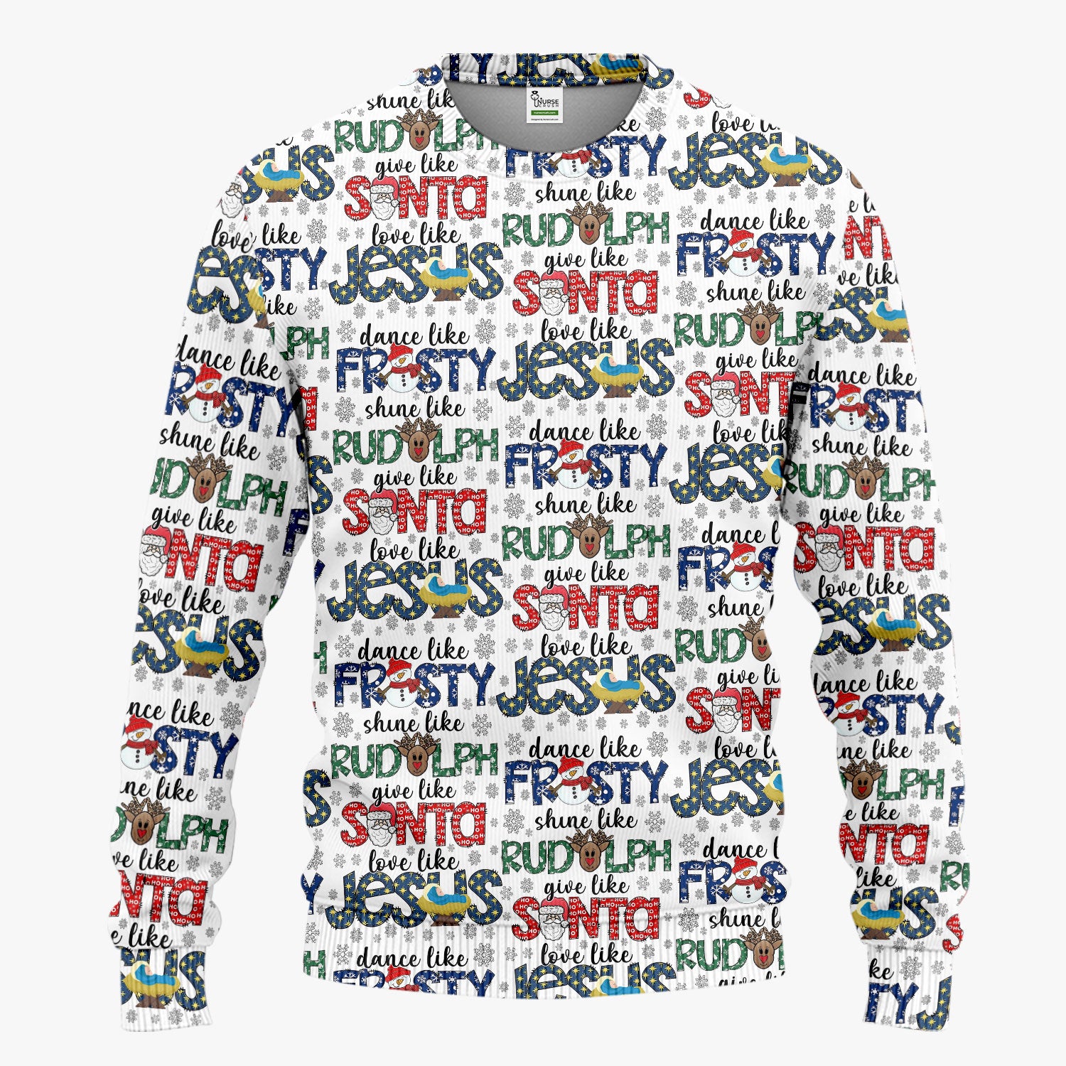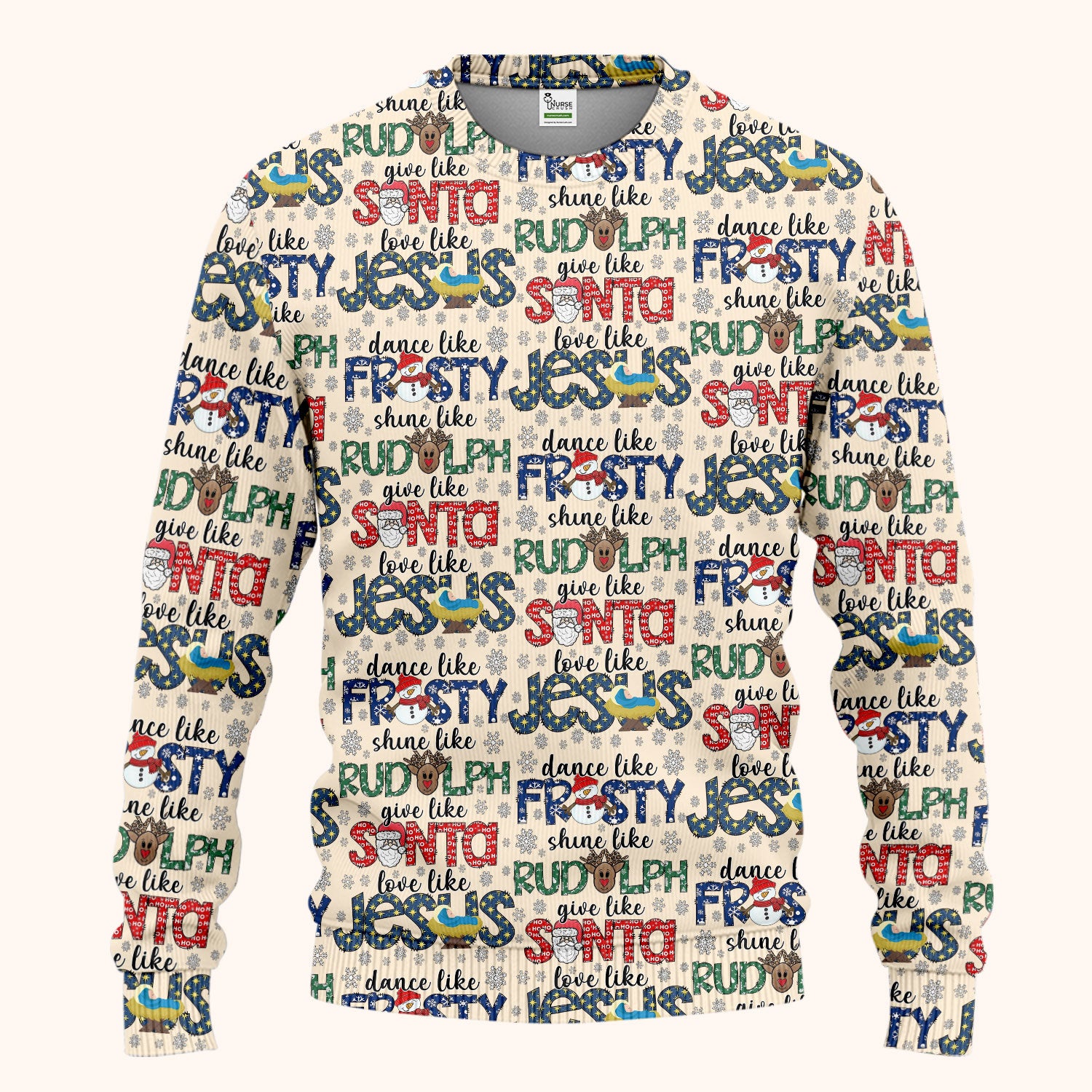 Christmas Rudolph Women's Scrub Sets - Dance Like Frosty Shine Like Rudolph Give Like Santa Love Like Jesus - Holiday Med Uniform