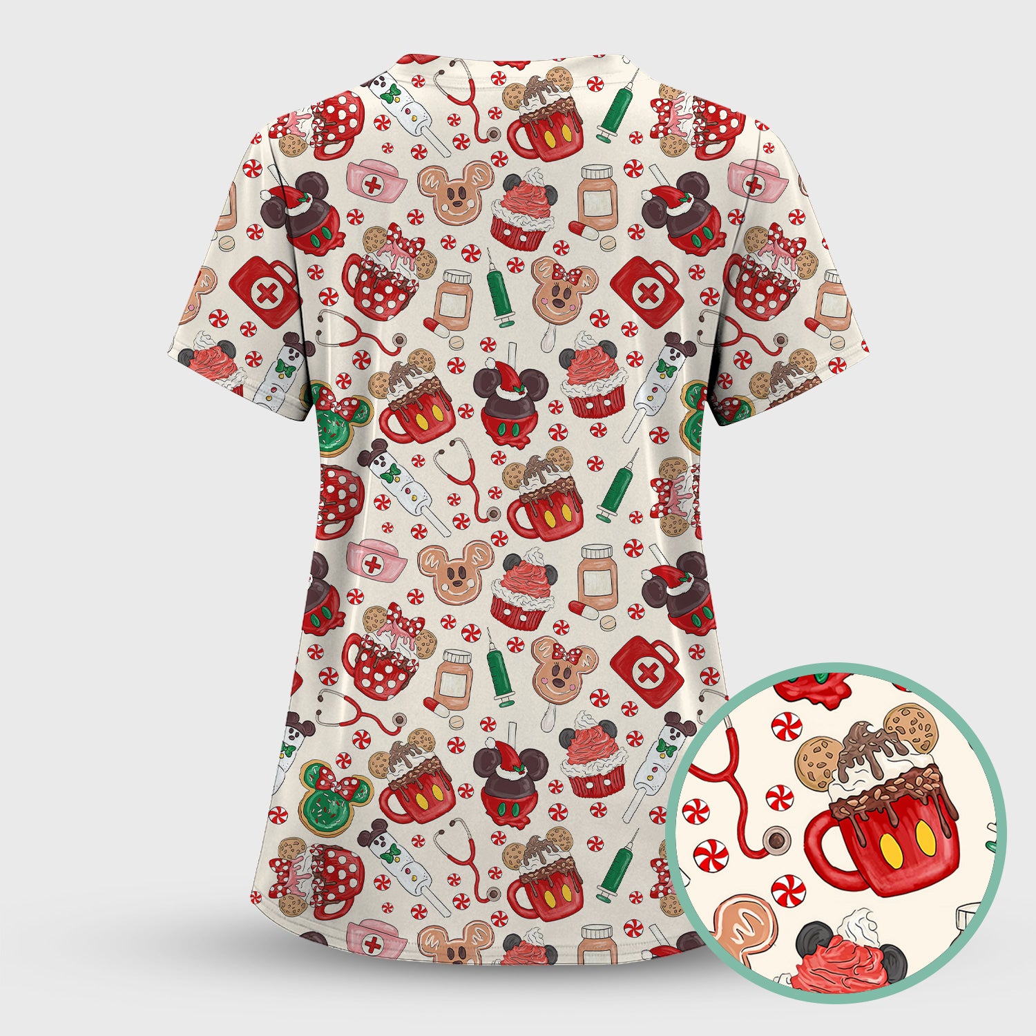 Christmas Scrub Top for Nurses - Cute Gingerbread Cupcake Candy Medical Shirt - Xmas Holiday Uniform for Women RN CNA LPN