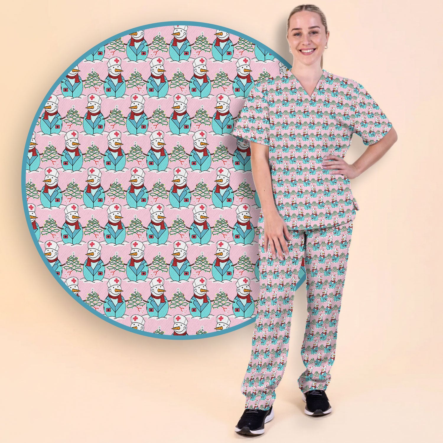 Christmas Snowman Nurse Scrub Pants - Holiday Med Uniform for Women - Comfortable Nursing Scrub Sets - Snowman Ugly Sweater Gift