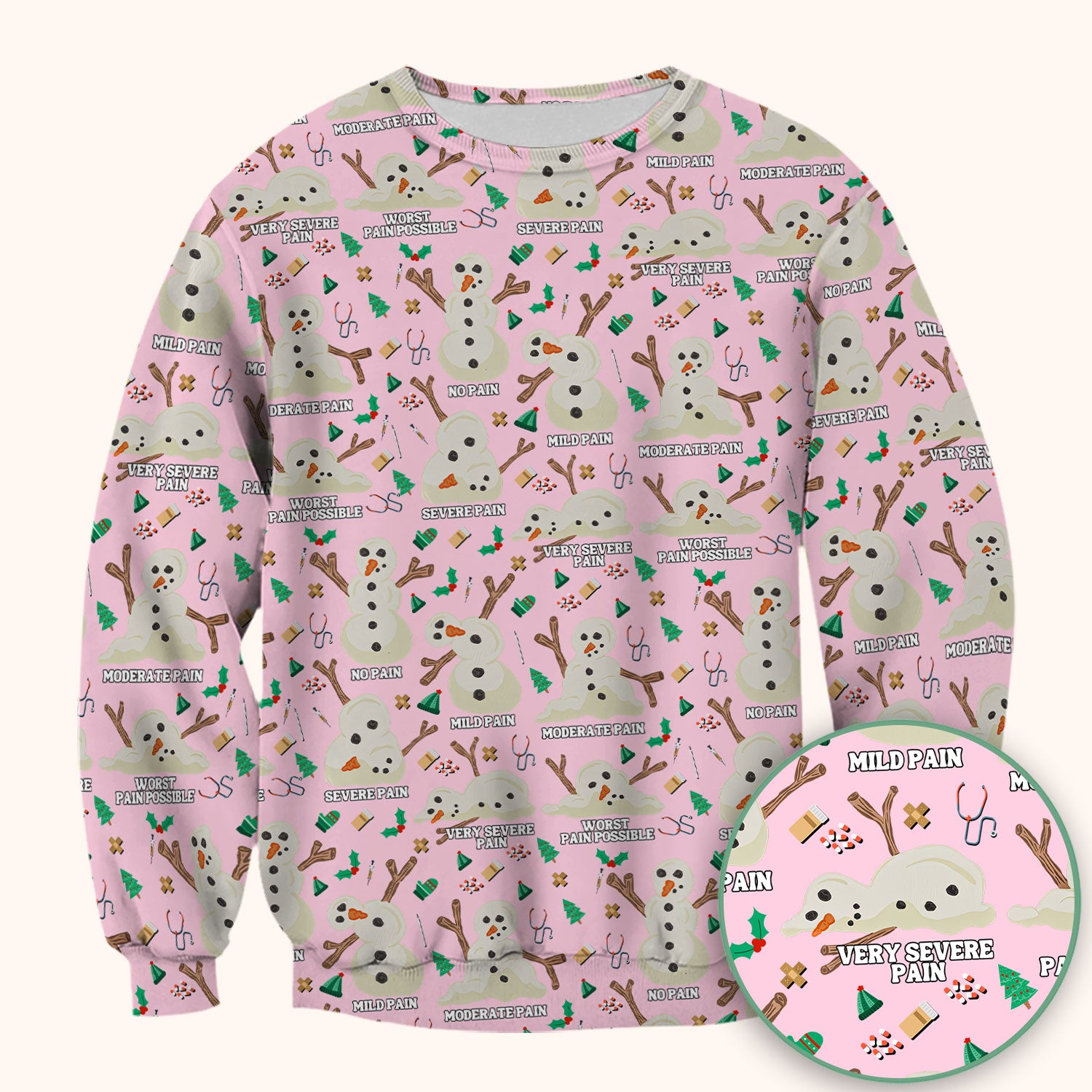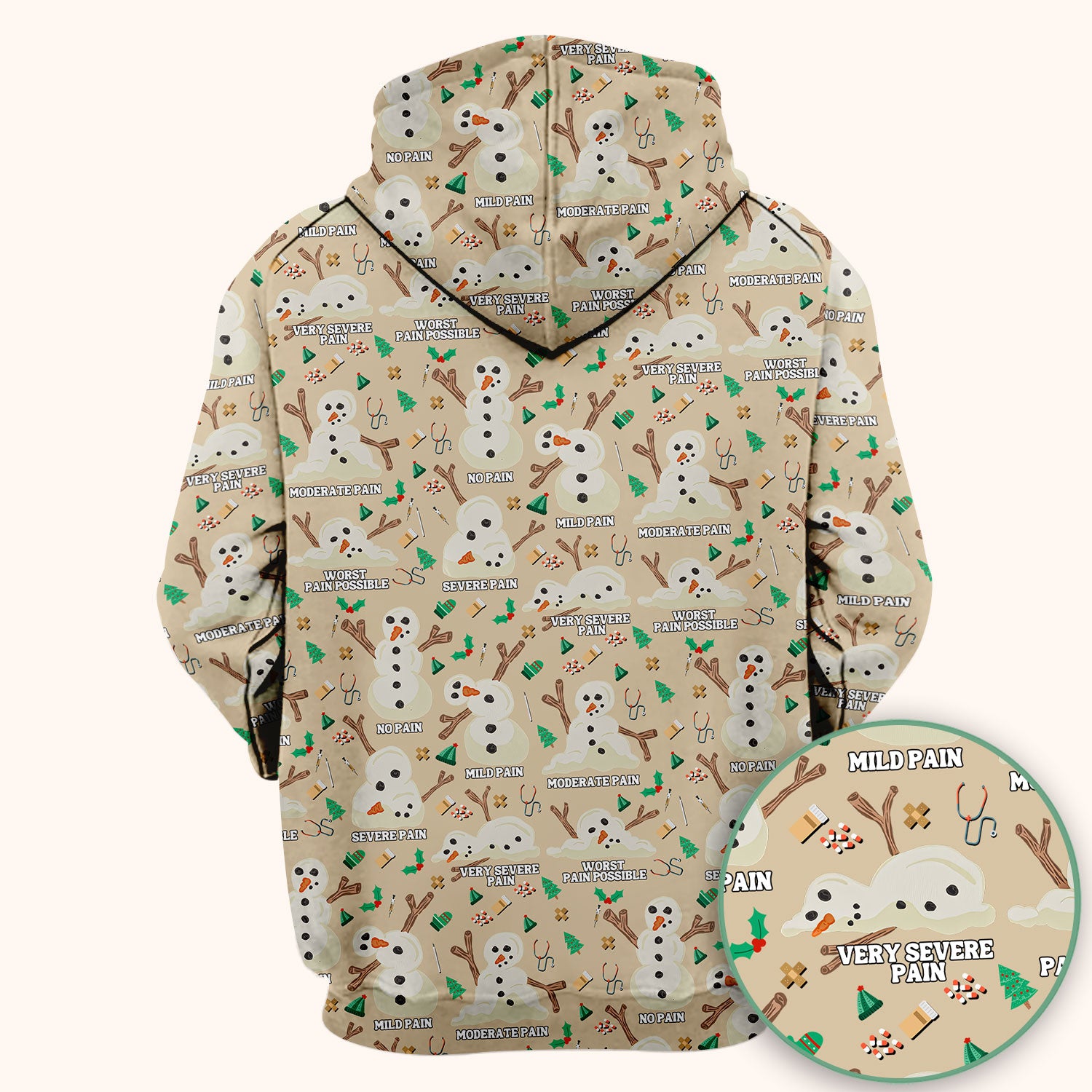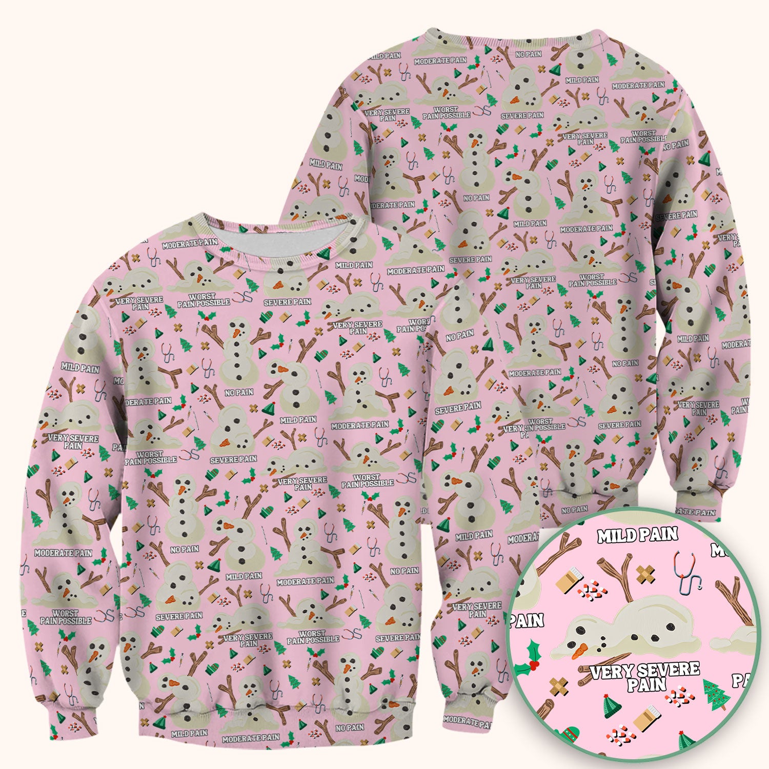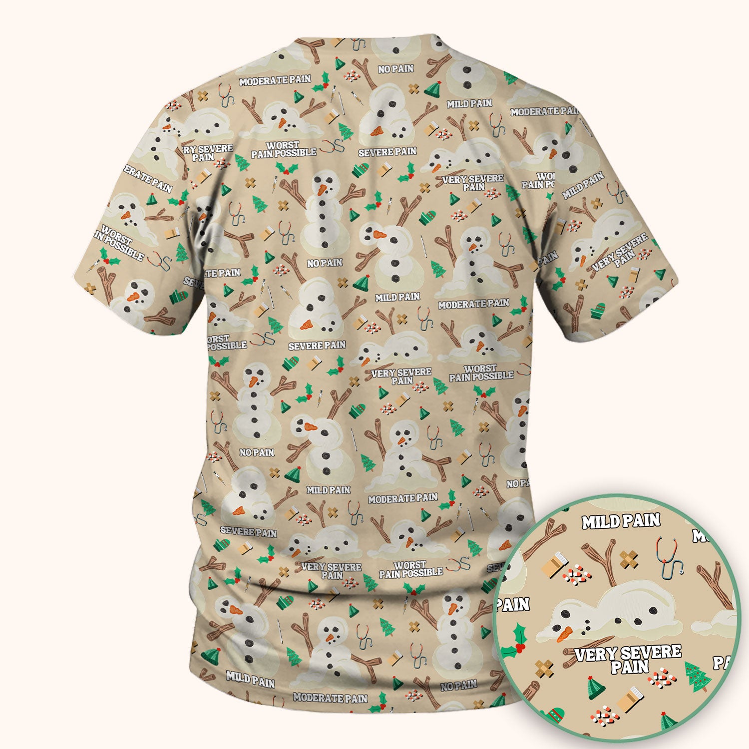Christmas Snowman Nurse Scrub Top for Women - Funny Pain Scale Medical Shirt - Cute Holiday Nursing Uniform Gift for RN LPN CNA