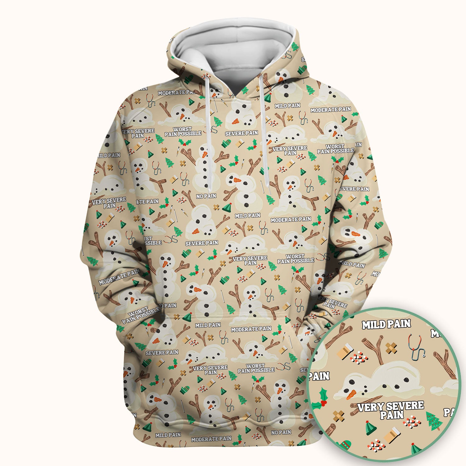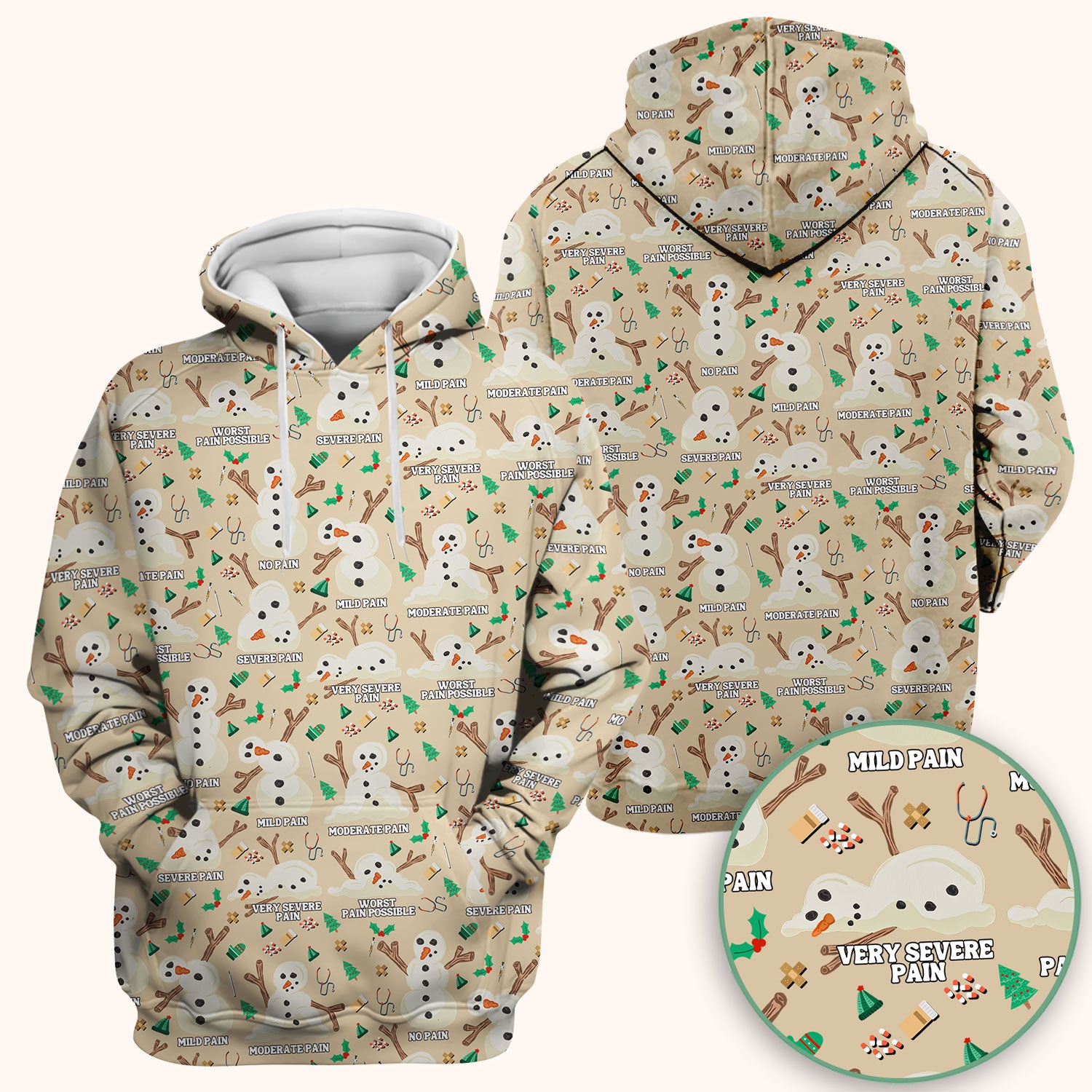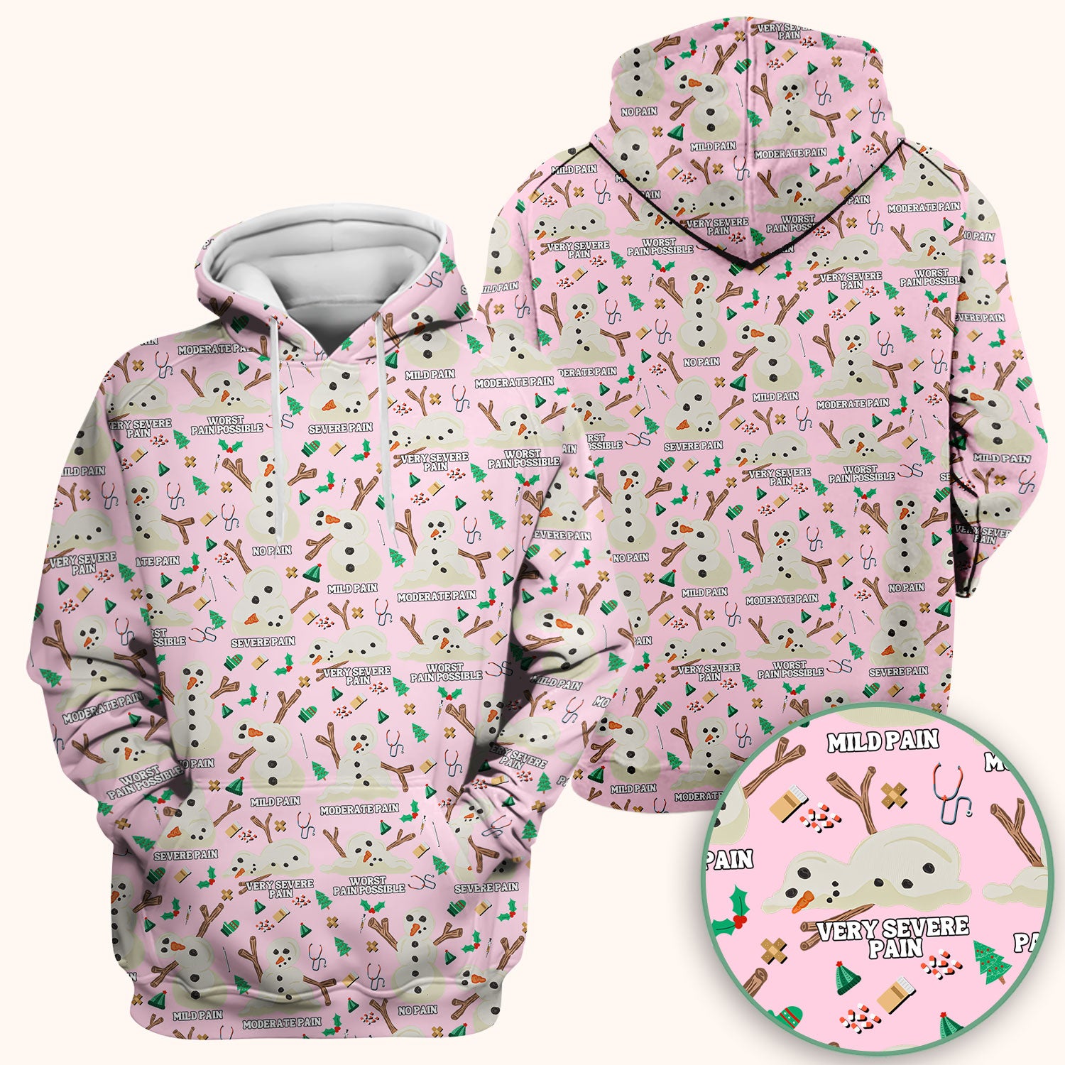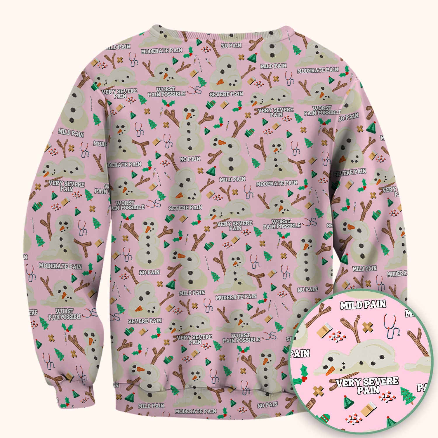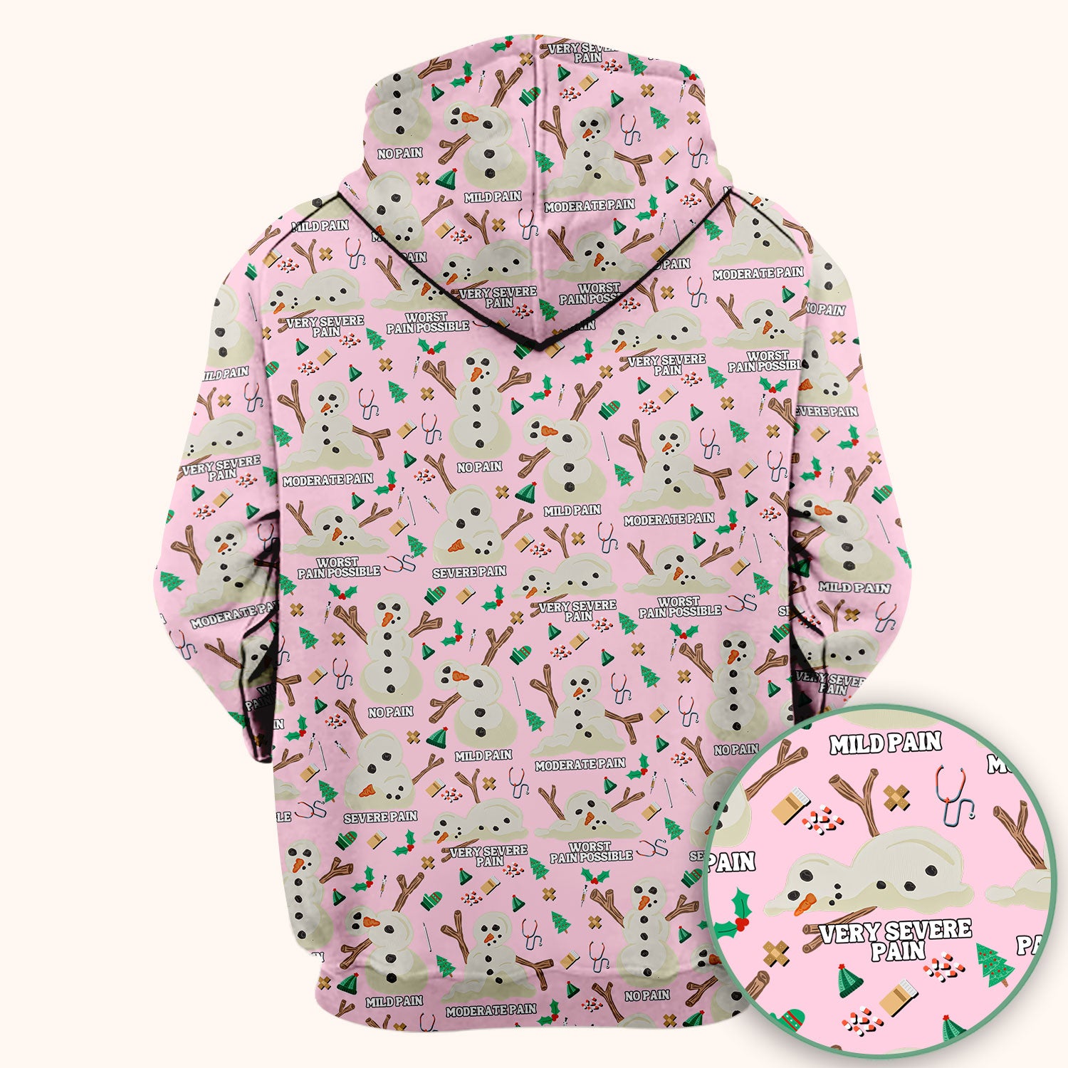 Christmas Snowman Nurse Scrub Top for Women - Funny Pain Scale Medical Shirt - Cute Holiday Nursing Uniform Gift for RN LPN CNA