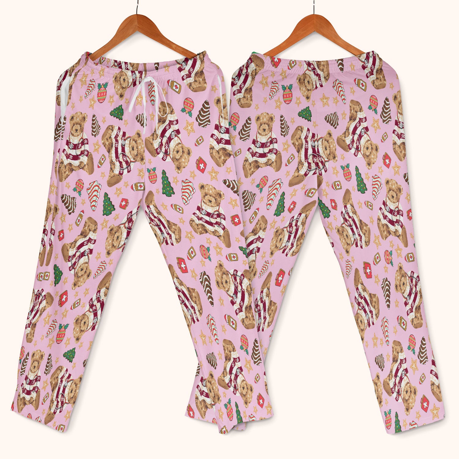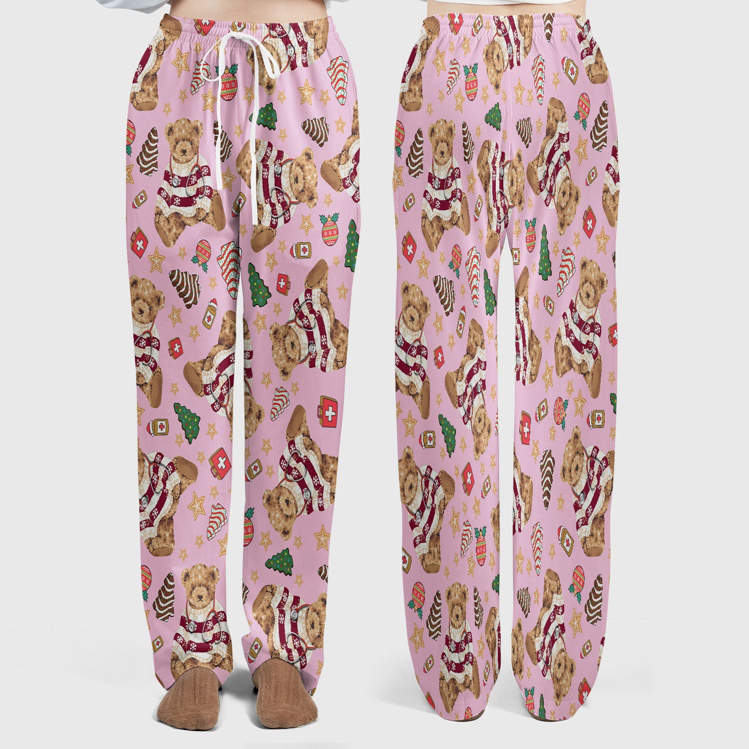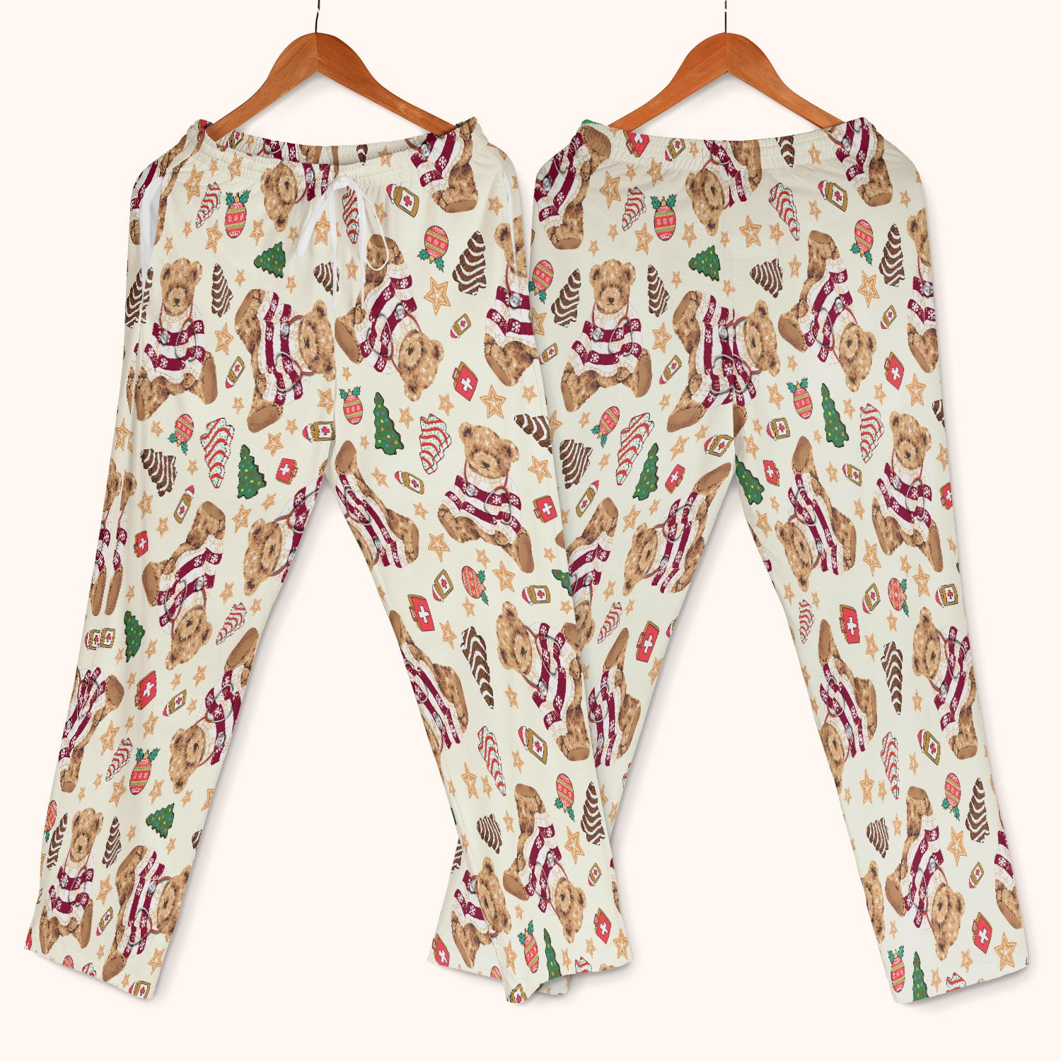 Christmas Teddy Bear Scrub Set for Nurses - Cozy Holiday Pattern with Cute Bear and Medical Icons Scrubs Pants and V Neck Top