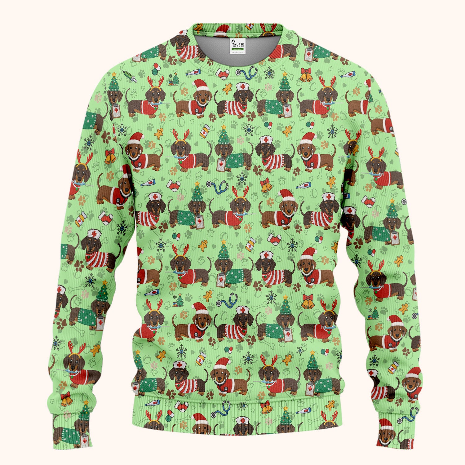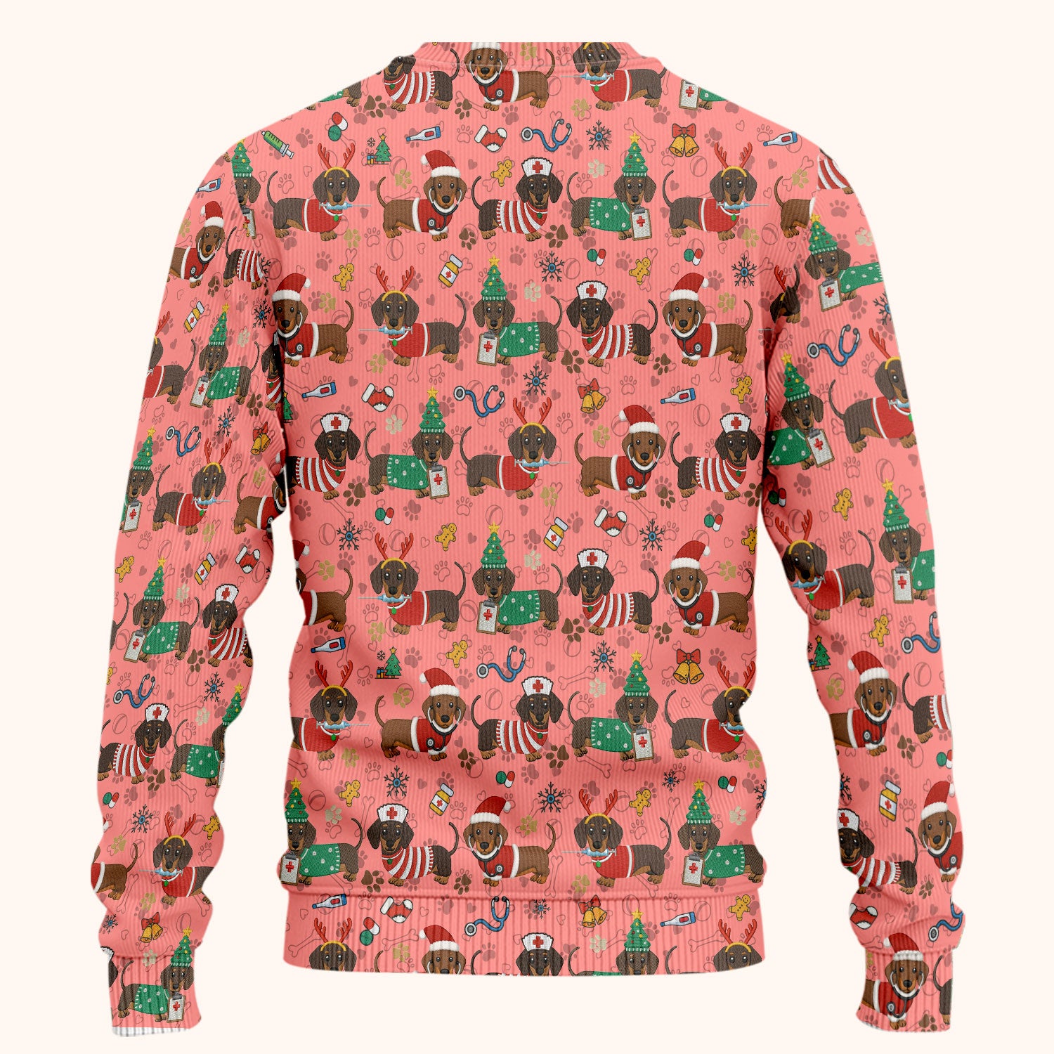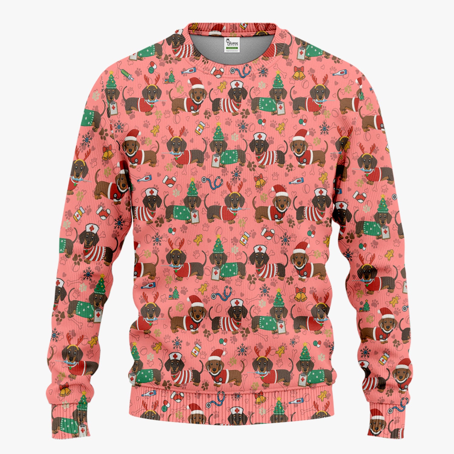 Christmas Wiener Dog Scrub Sets for Nurses - Cute Dachshund Scrubs Pants and V Neck Top - Fun Holiday Gift for Women RN CNA LPN