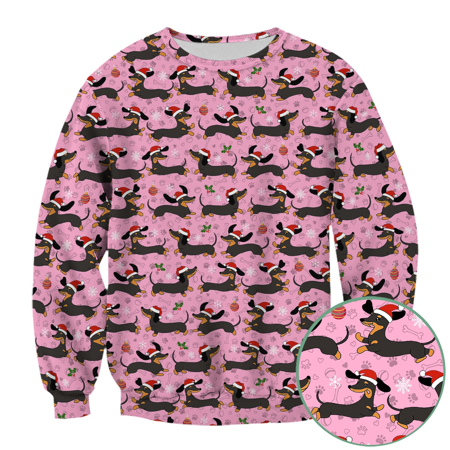 Christmas Wiener Dog Scrub Top - Cute Dachshund in Santa Hat - Funny Holiday Nurse Shirt for Women RN LPN CNA Medical Gift